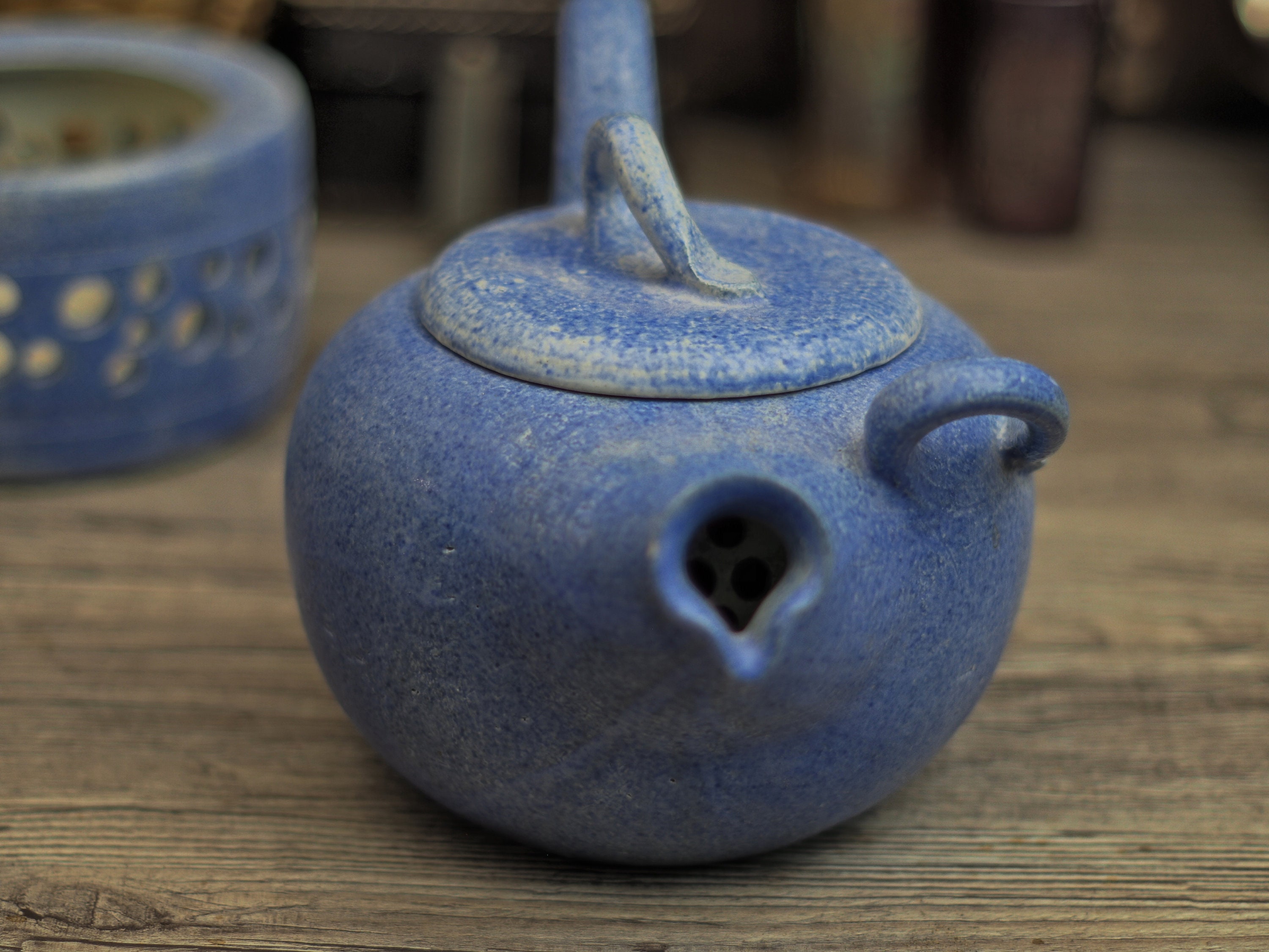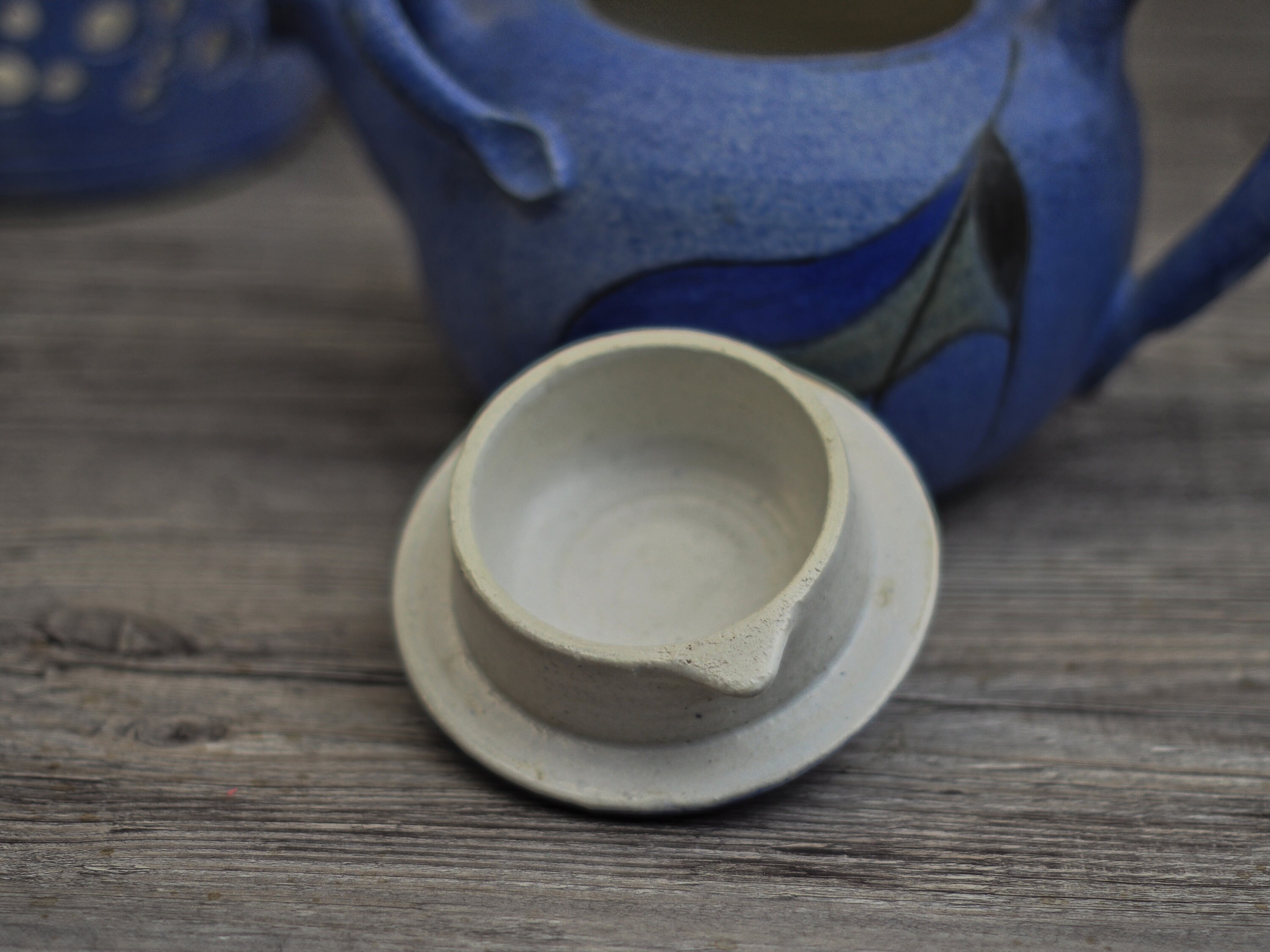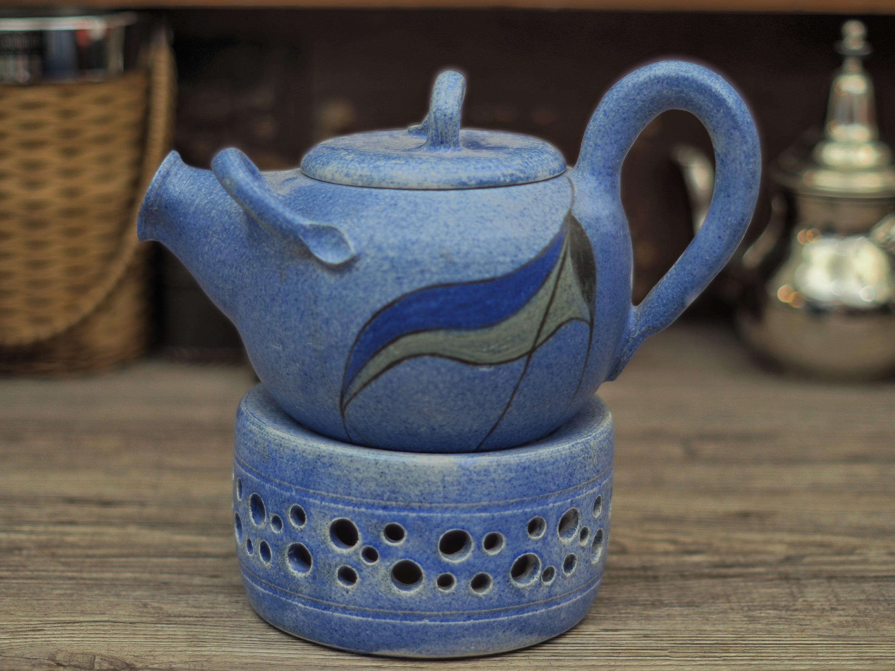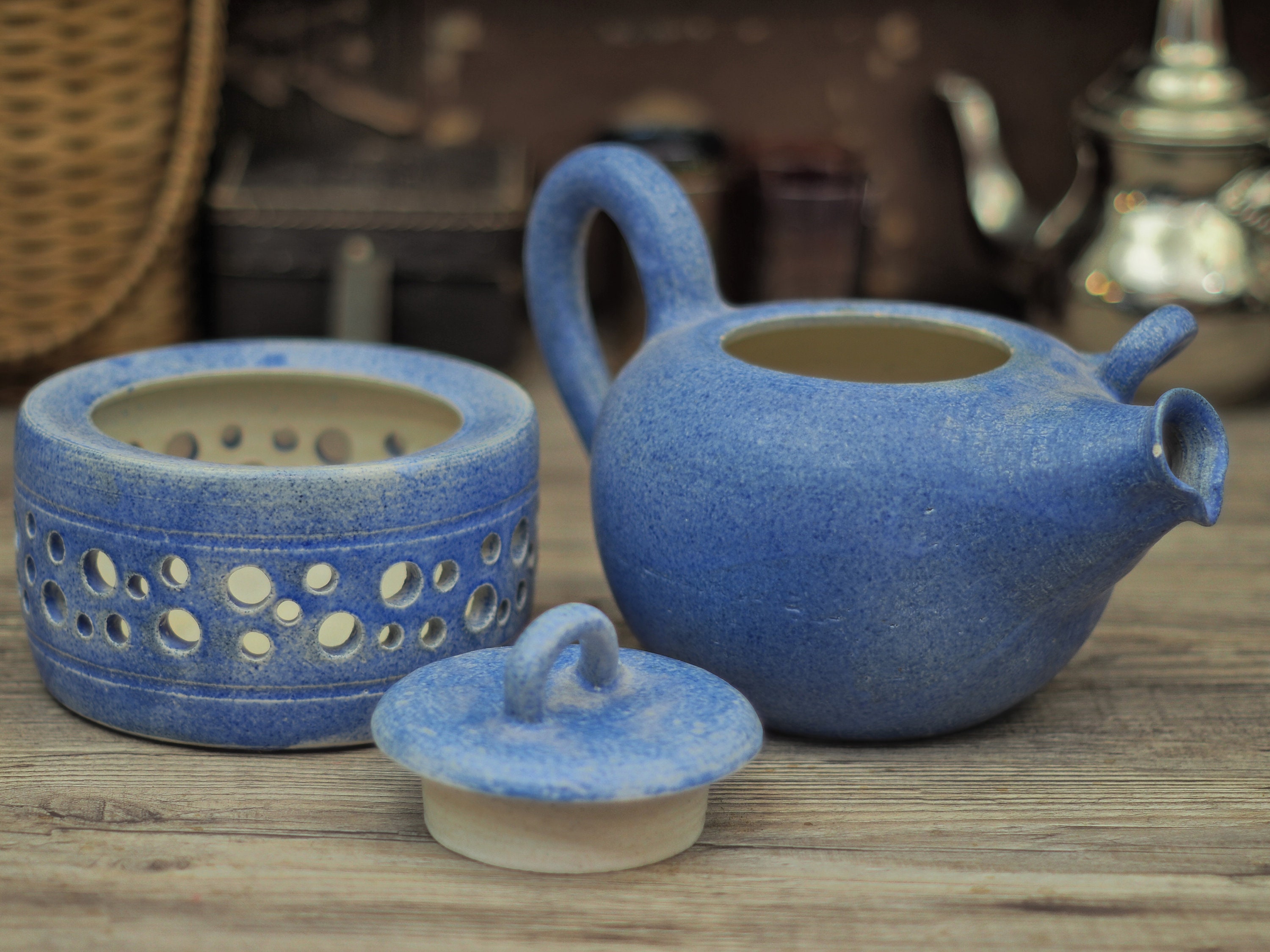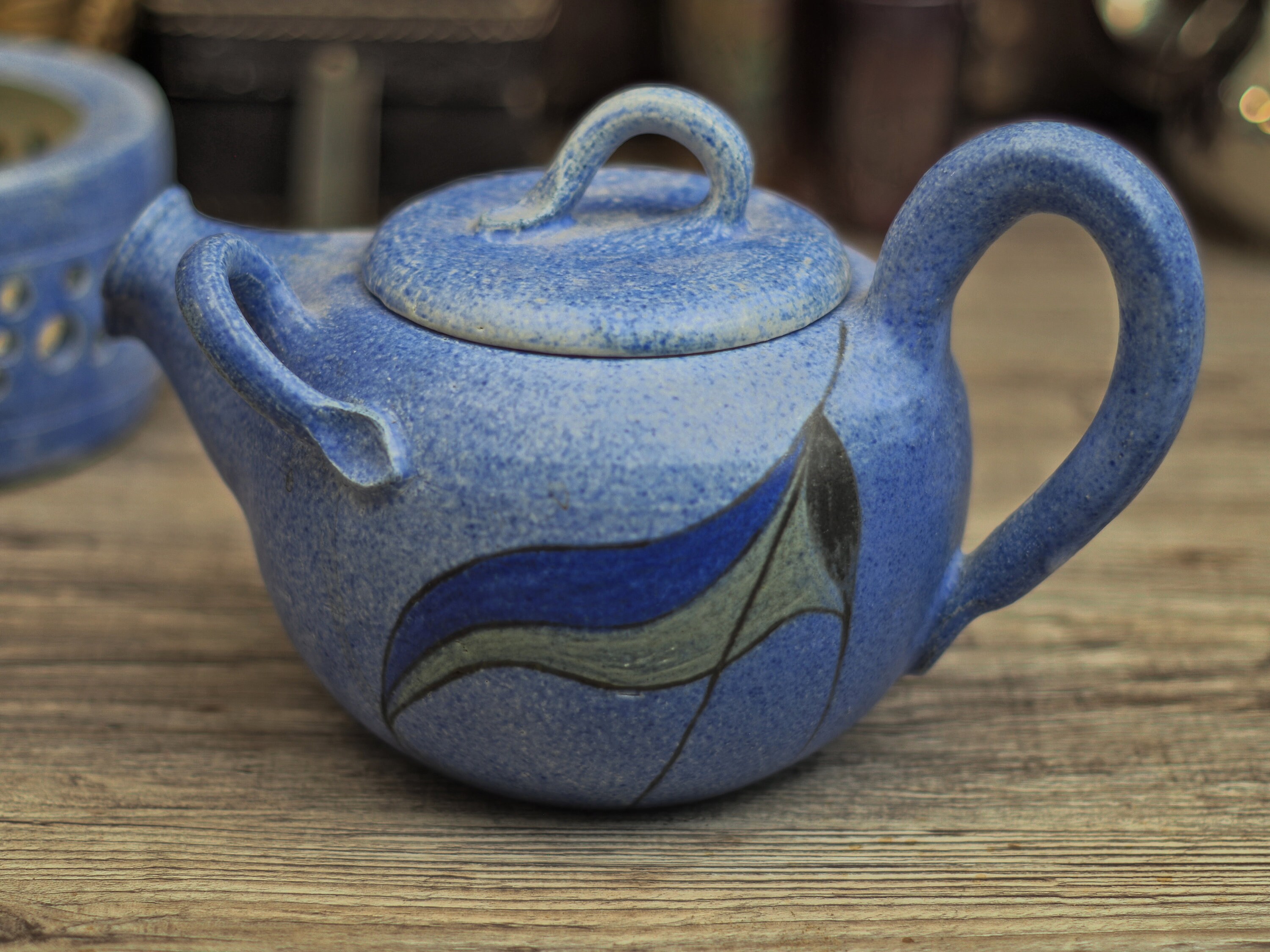 Diese handgemachte dänische Teekanne aus Steinzeug (vermuten wir), überzeugt durch ihre schöne, maritime Optik.