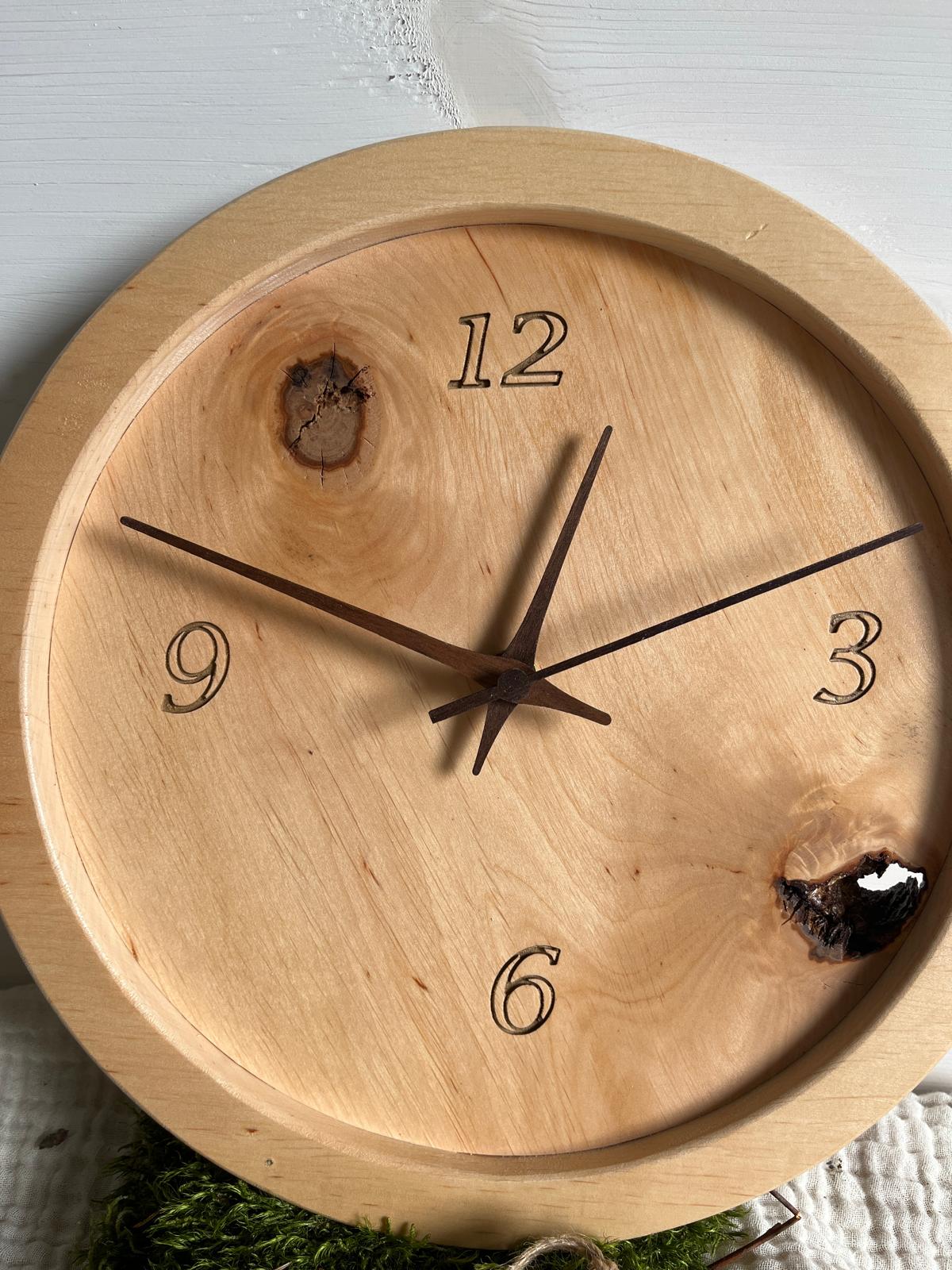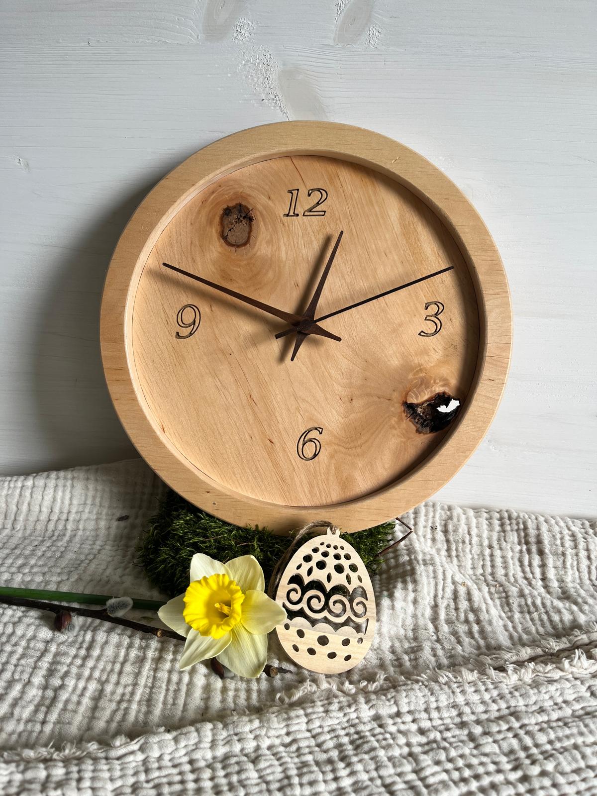 Handgefertigte Wanduhr 3 aus Erlenholz Ø 28, 2 cm dick.