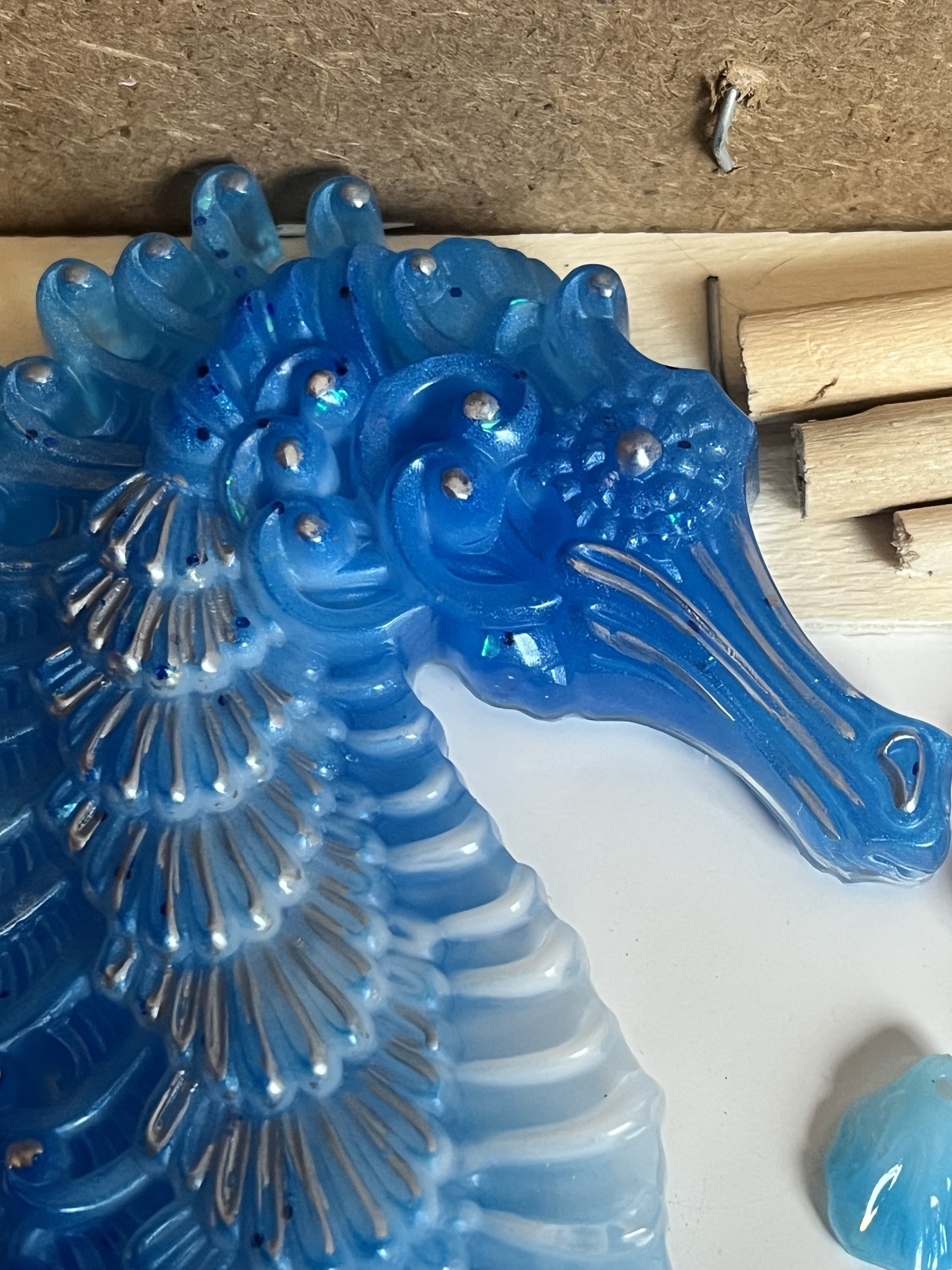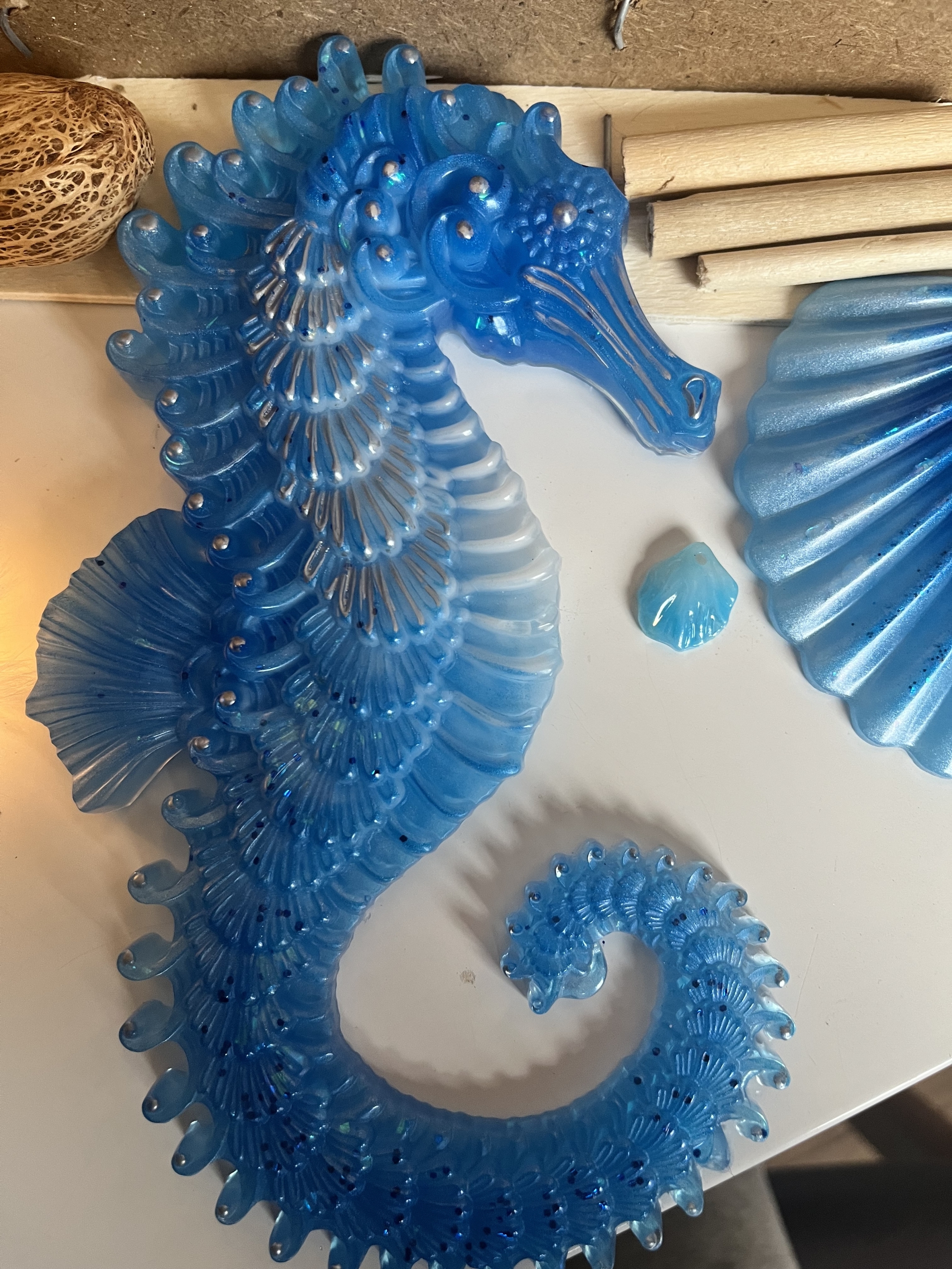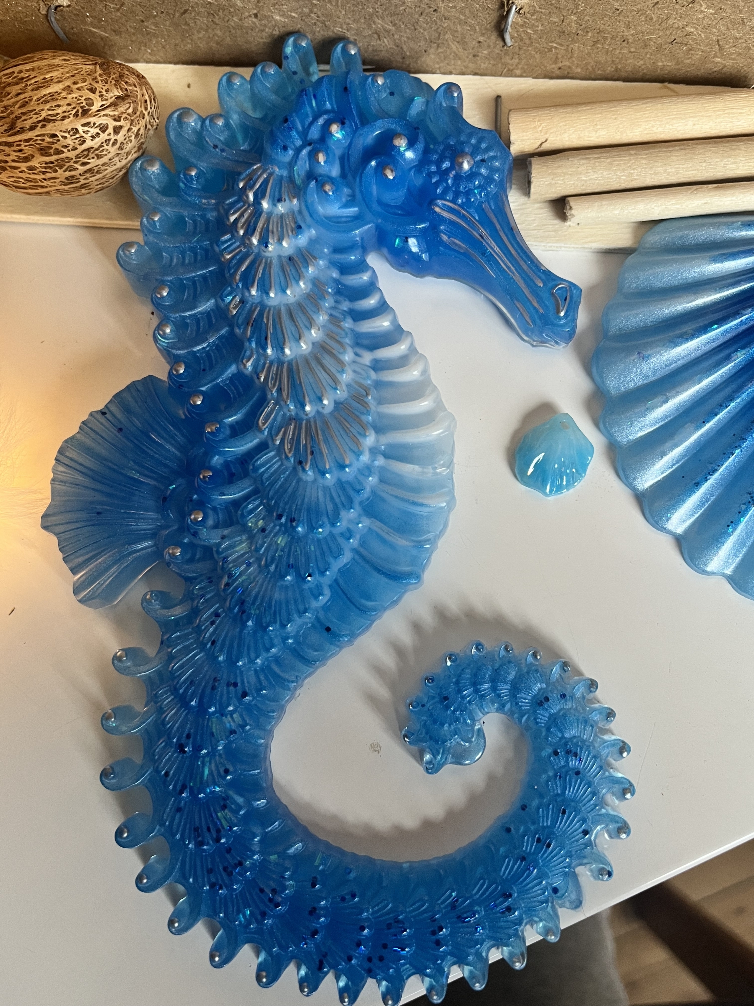 Dieses einzigartige Seepferdchen aus Epoxidharz bringt maritimen Zauber in dein Zuhause.