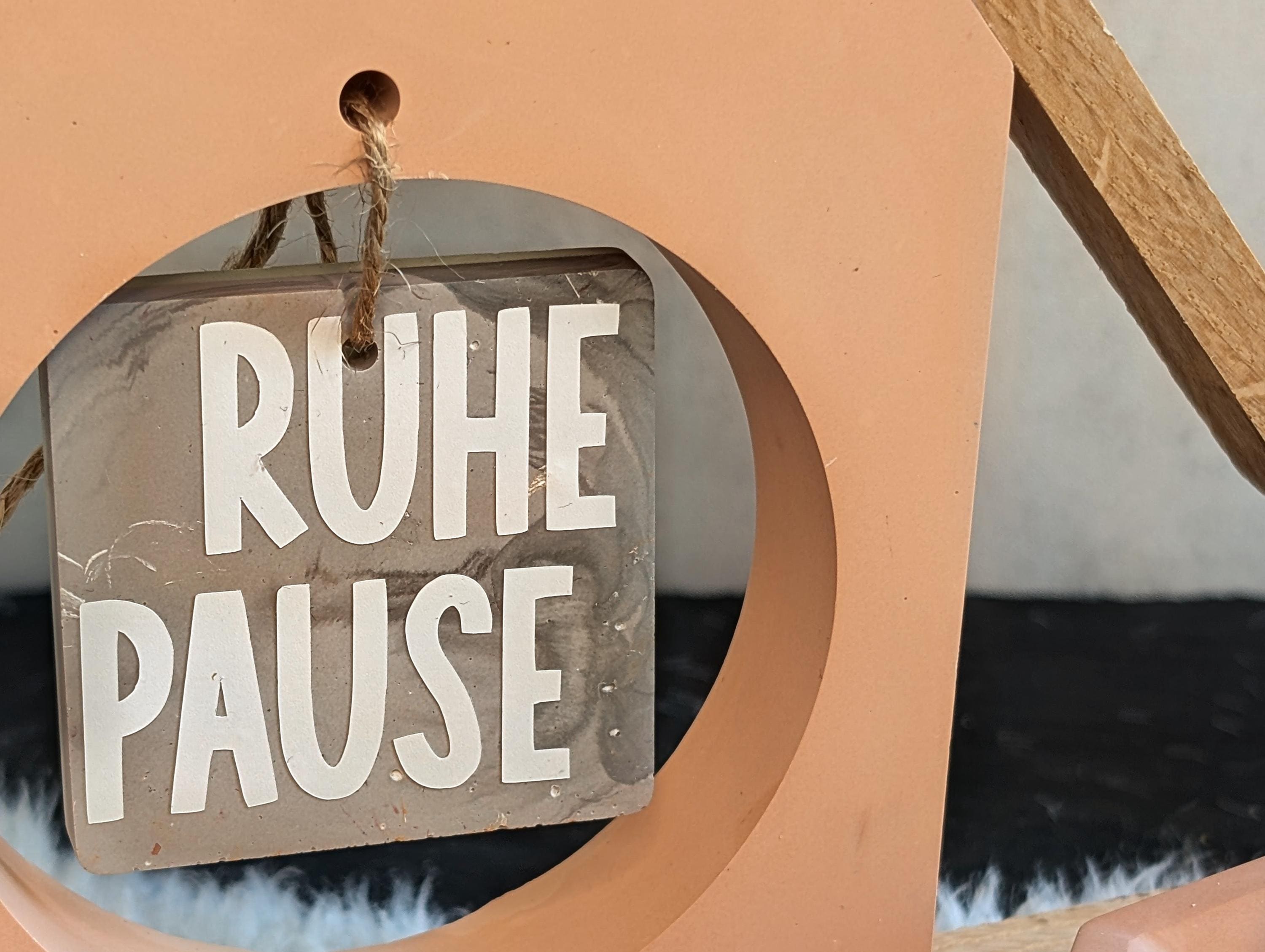 Aufhängeschild mit Schriftzug „Ruhepause", "Stabilität" oder "Relax"