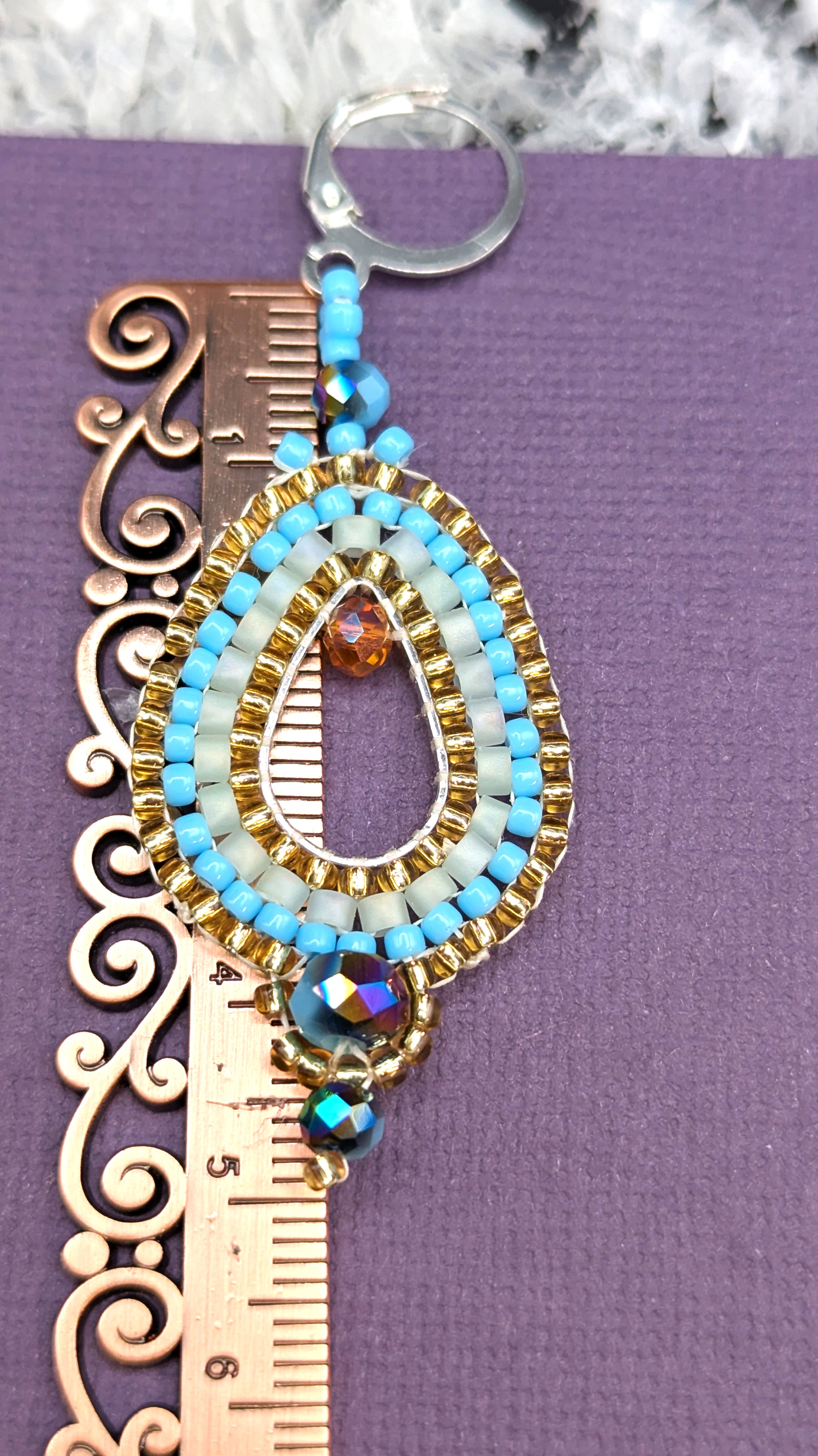 Handgefädelte Ohrringe, aus hochwertigen Glasperlen in der Farbe Blau.
