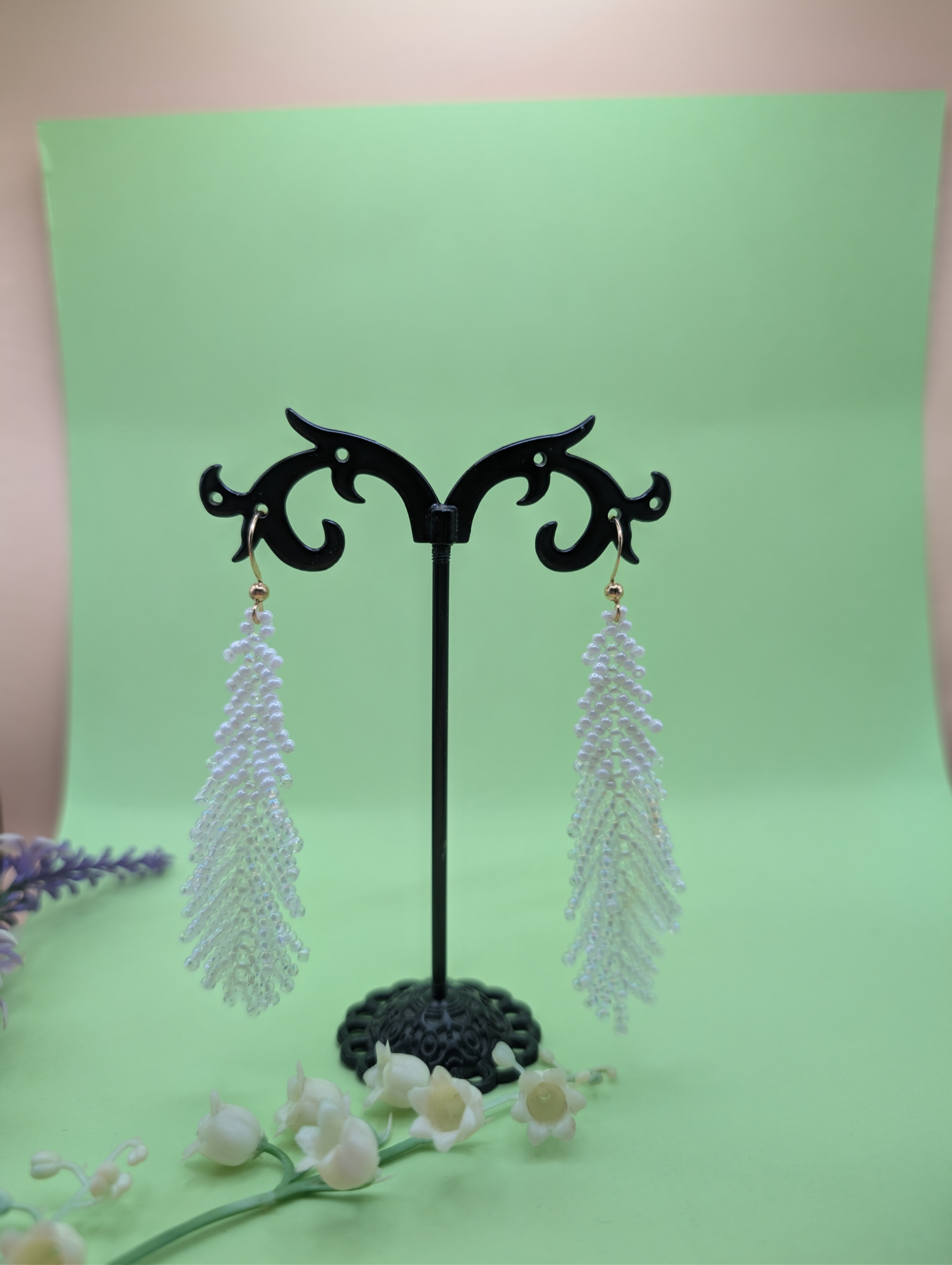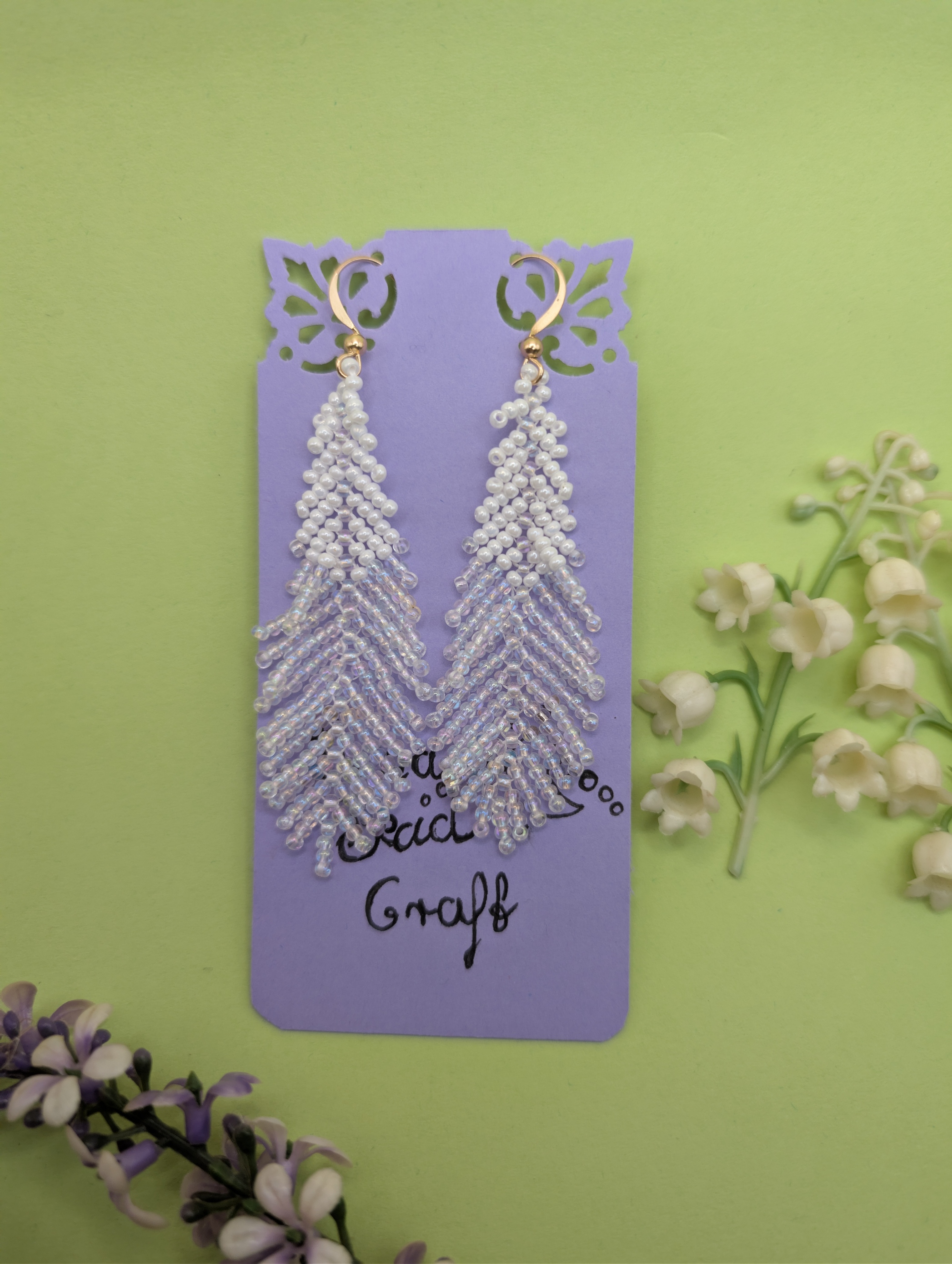 Diese handgemachten Fransenohrringe aus Toho Glasperlen sind ein echter Blickfang. Die feinen Perlen wurden sorgfältig von Hand zu langen, beweglichen Fransen verarbeitet.