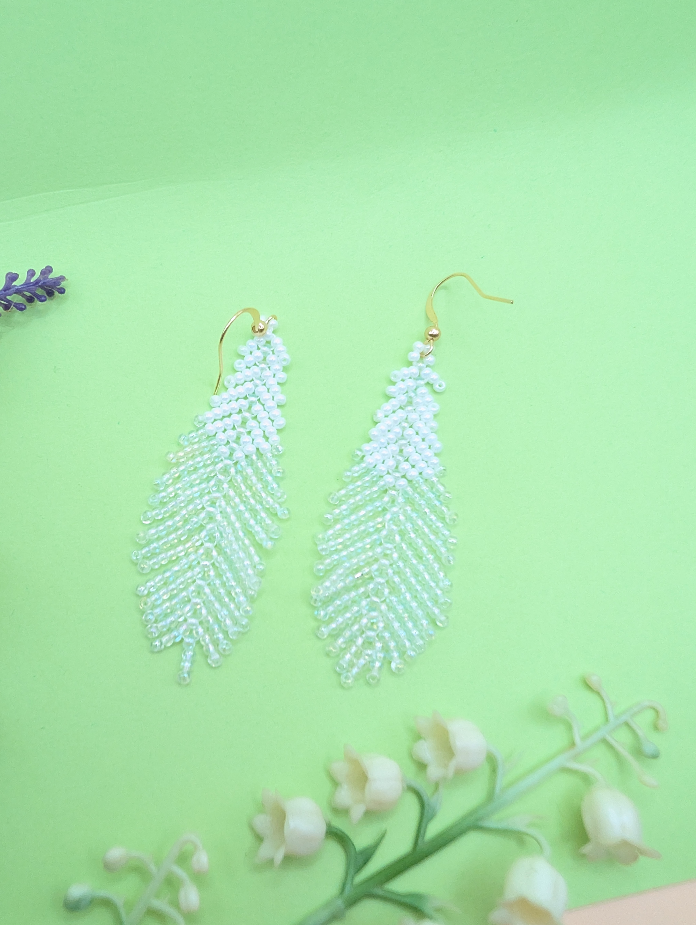 Der schöne Farbverlauf von Weiß,Rainbow mit kleinen goldfarbenen Akzenten verleiht den Ohrringen einen modernen und gleichzeitig boho-inspirierten Look.
