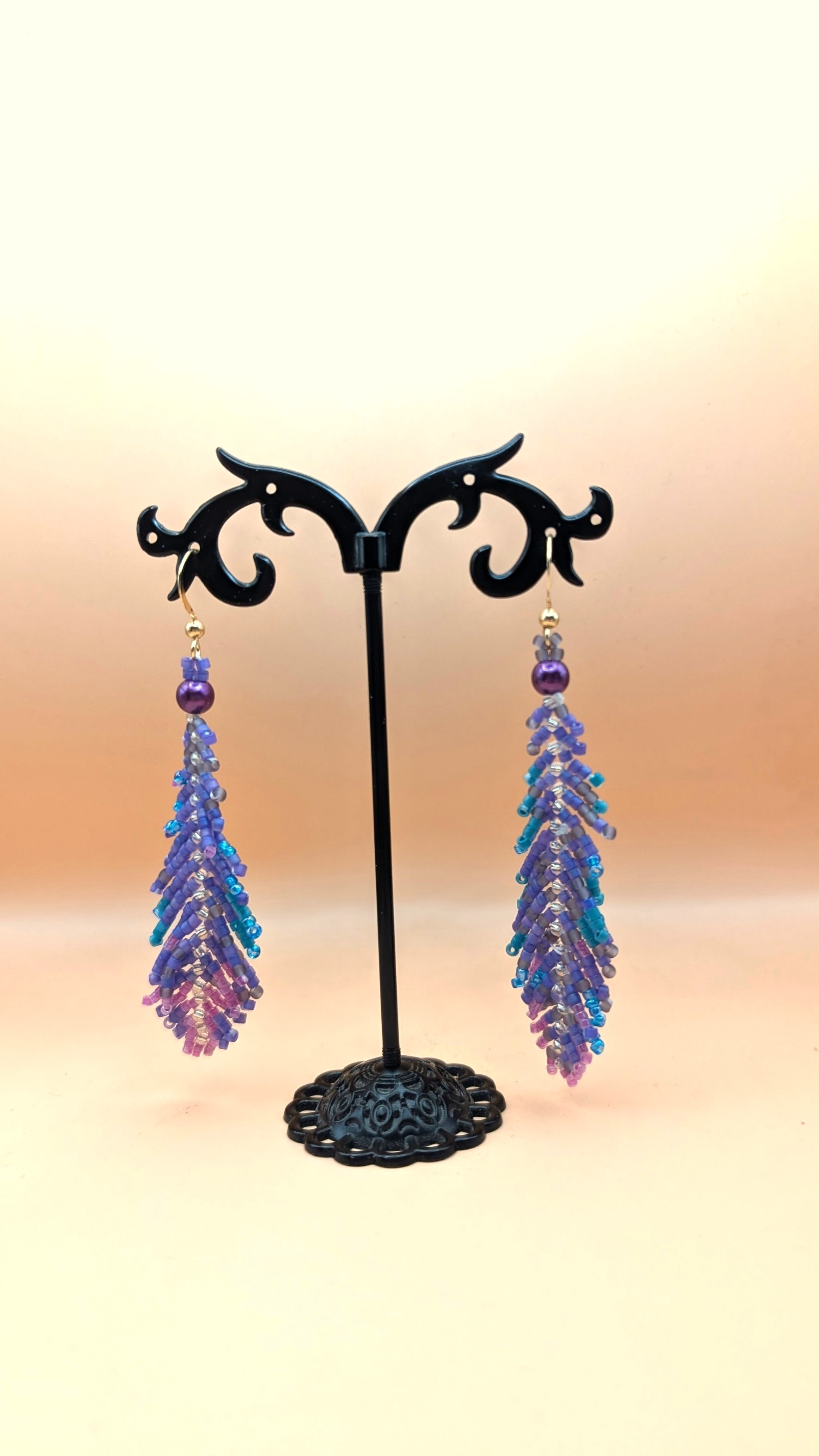 Die filigranen Glasperlen sind in einem wunderschönen Blatt-/Fächerdesign angeordnet und werden von einer schlichten Perle abgerundet. Durch ihr leichtes Gewicht sind sie sehr angenehm zu tragen und verleihen jedem Outfit eine elegante, boho-inspirierte Note.