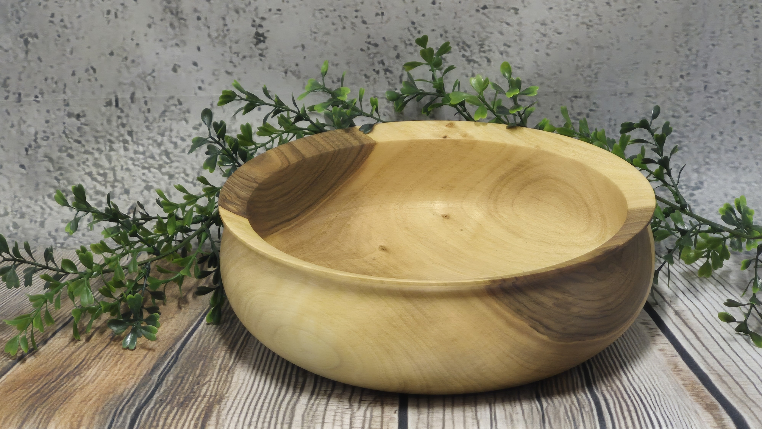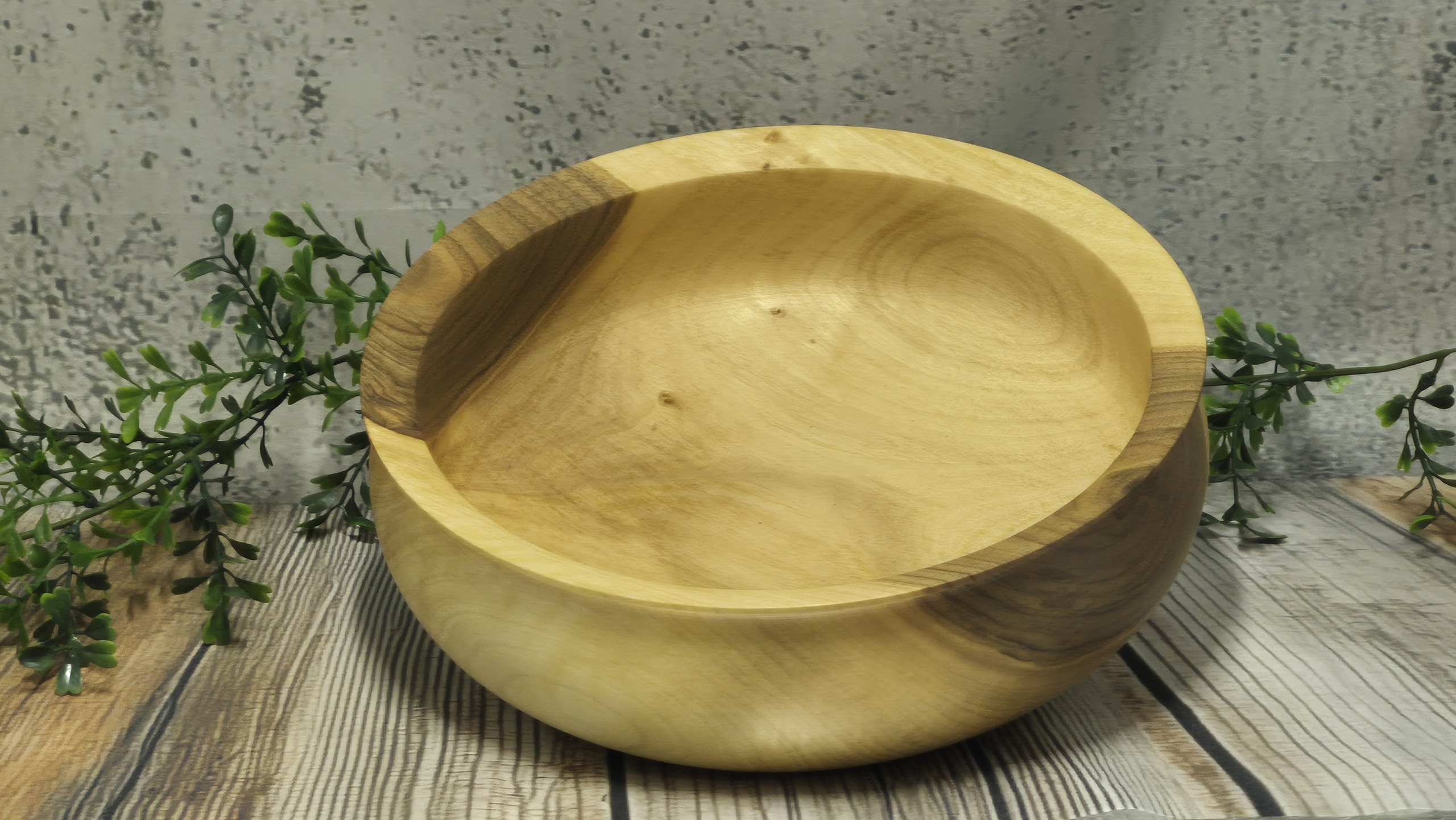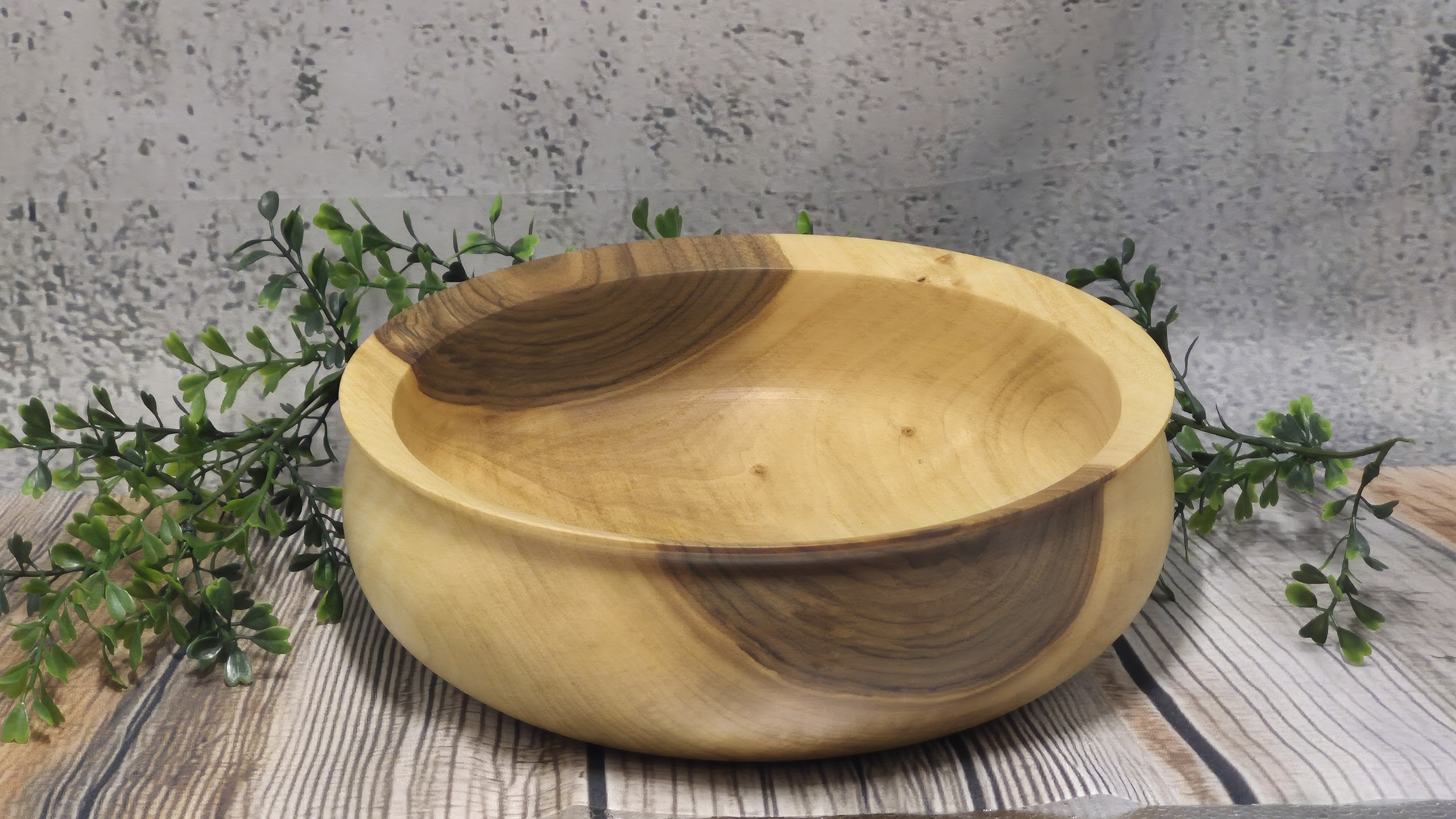 Die Schale besitzt durch die Oberflächenbehandlung mit Leinöl-Firnis eine glatte und mattierte Optik.