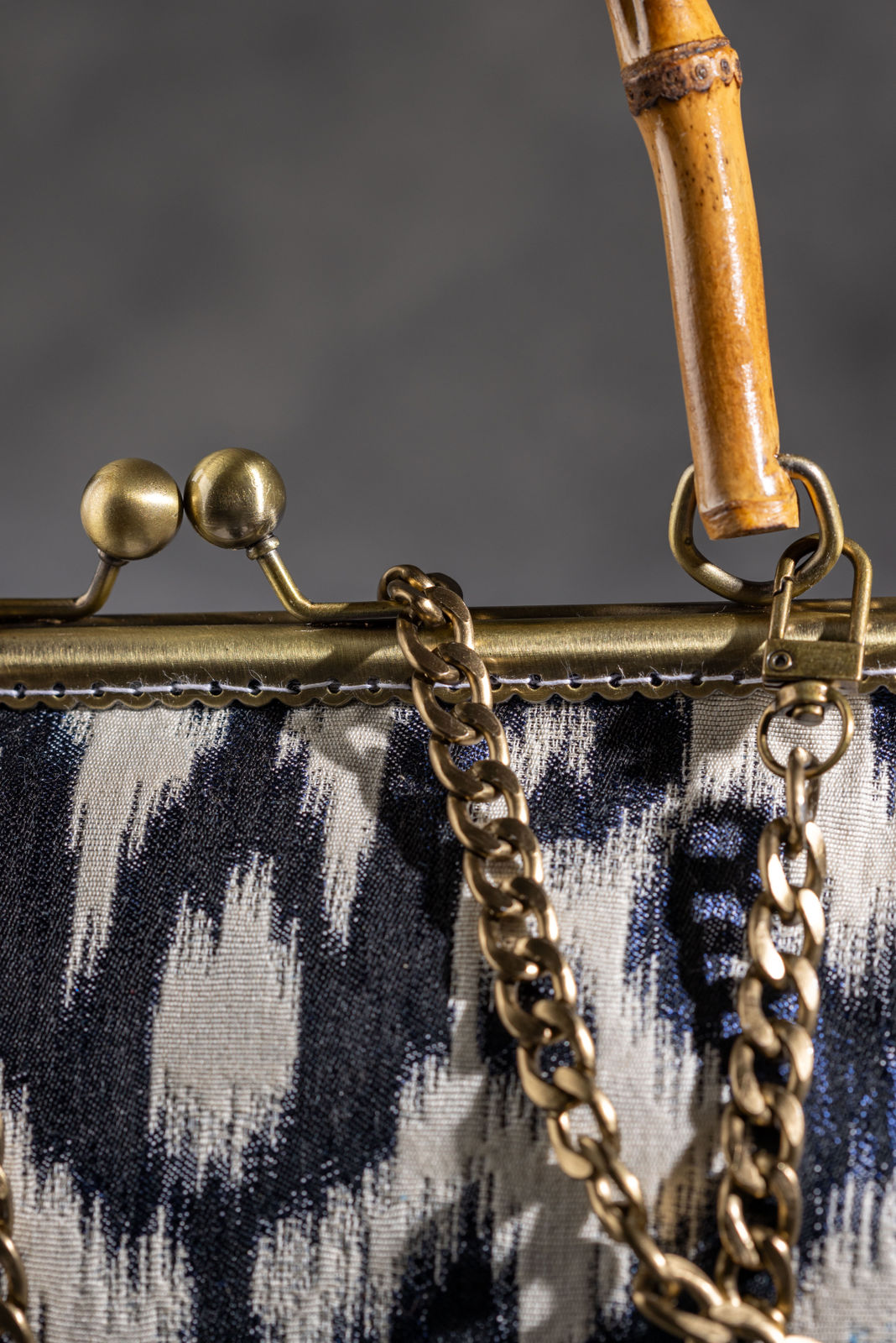 Unikat | Jacquard Tasche mit Bambusgriff & Metallkette | Handmade