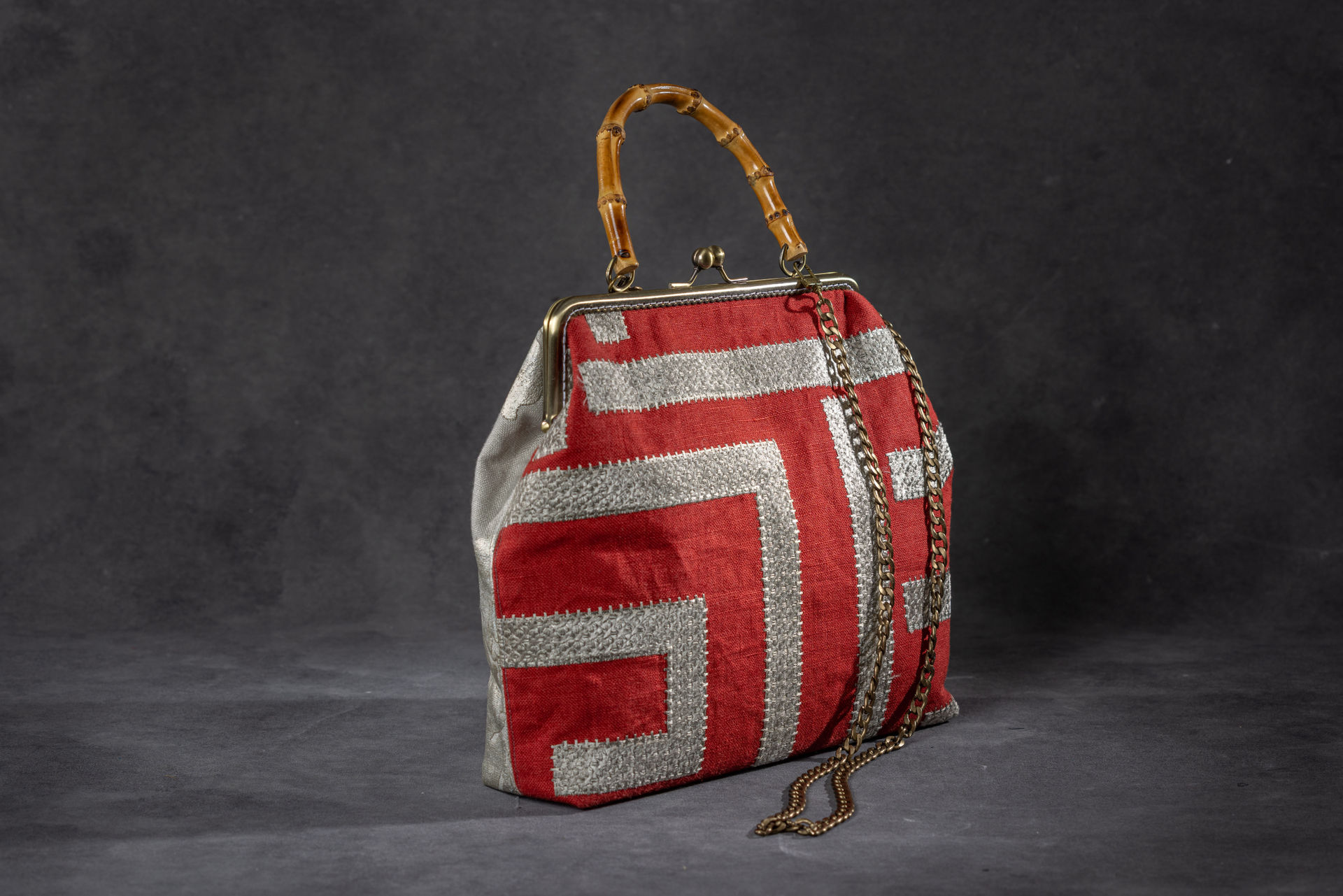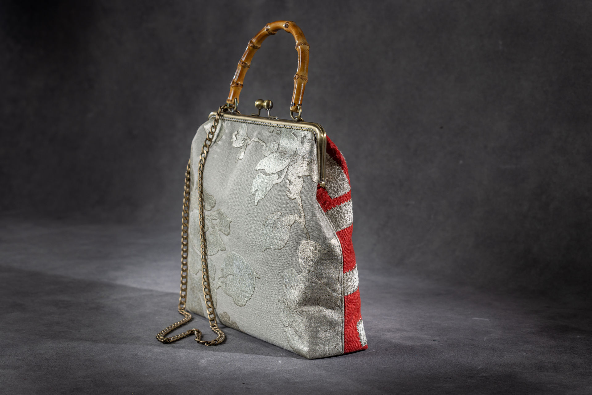 Unikat | Tasche mit Bambusgriff & Metallkette | Handmade