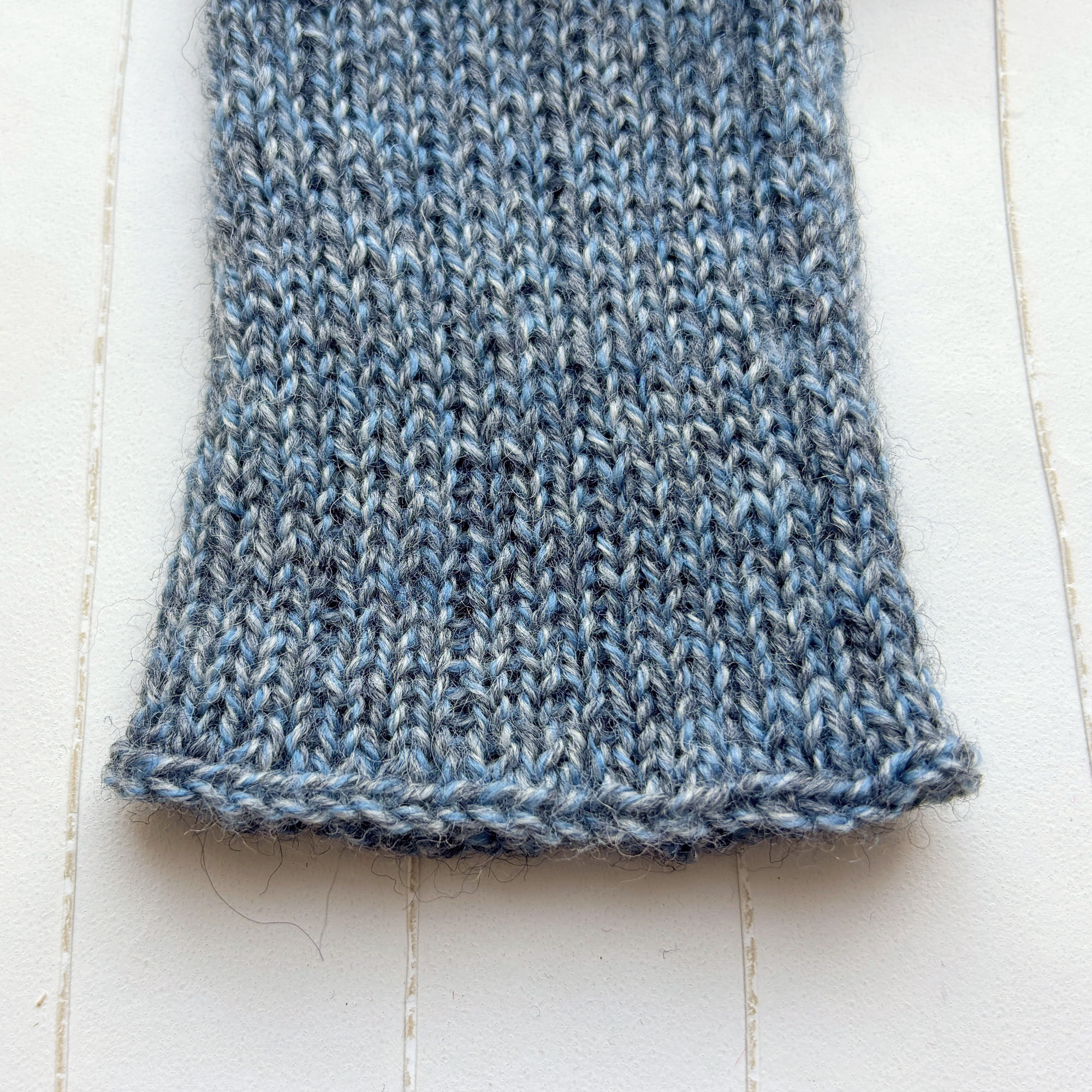 Schmale Armstulpen ohne Daumenloch, handgestrickt in flachen Rippen