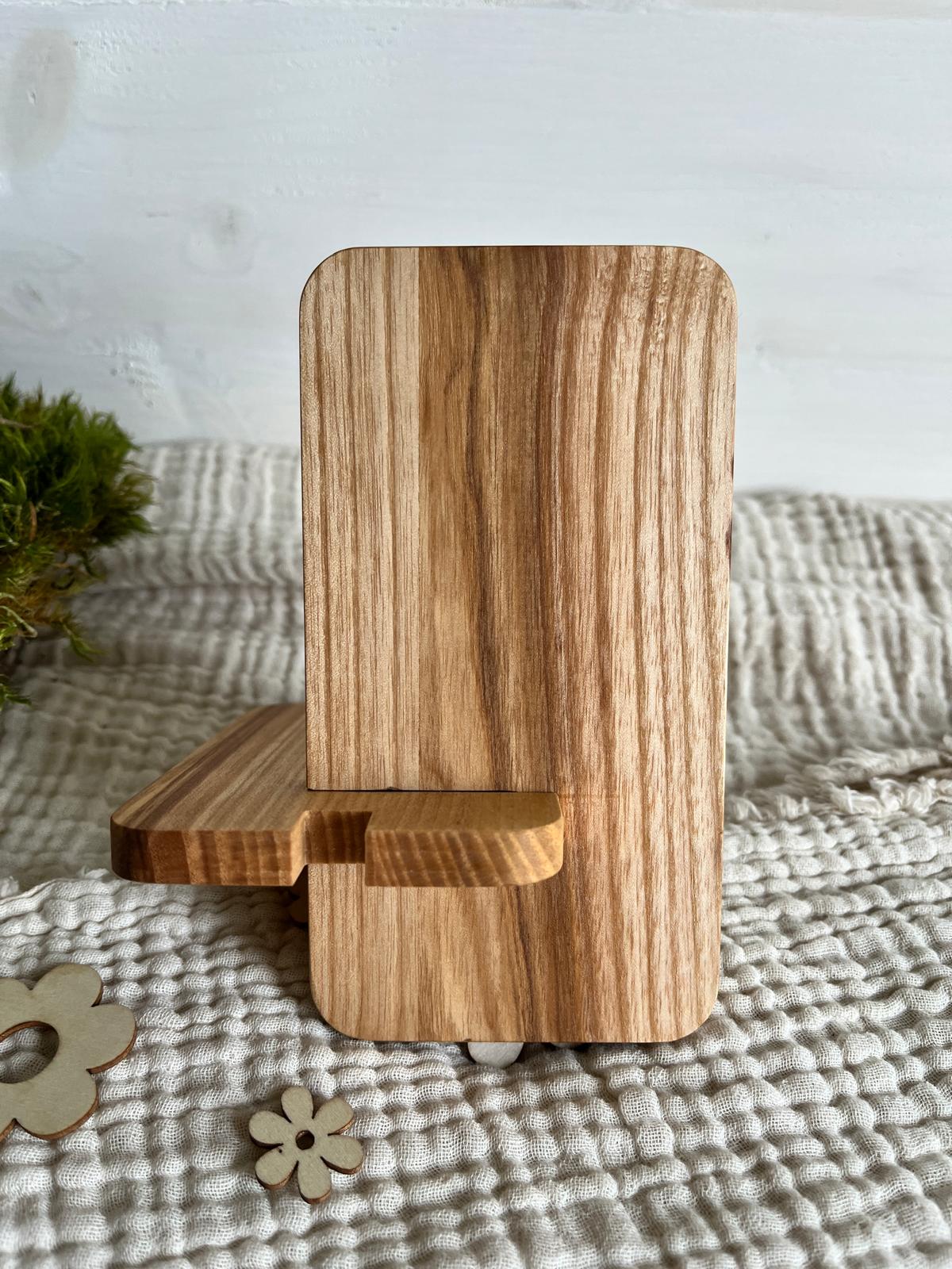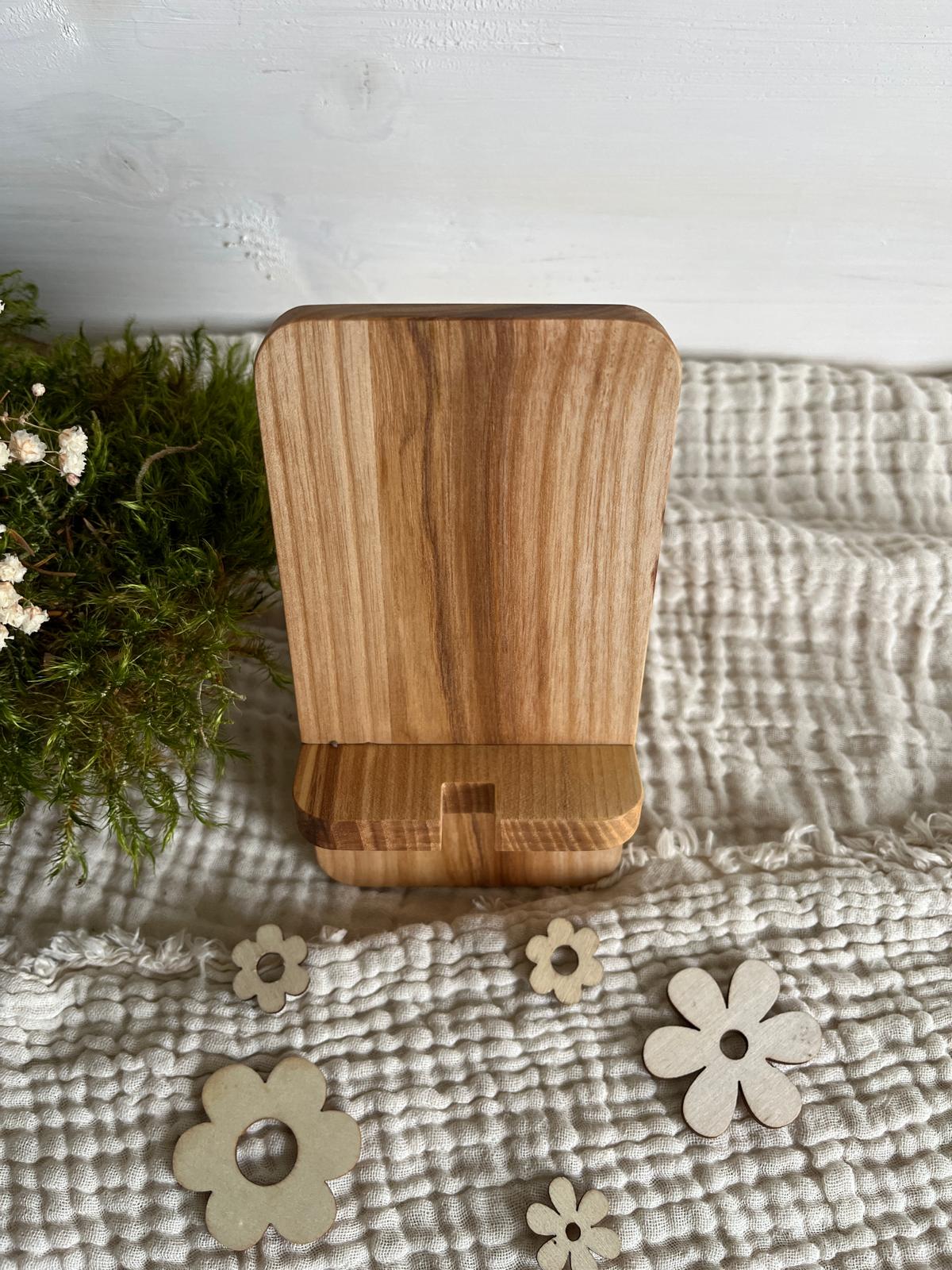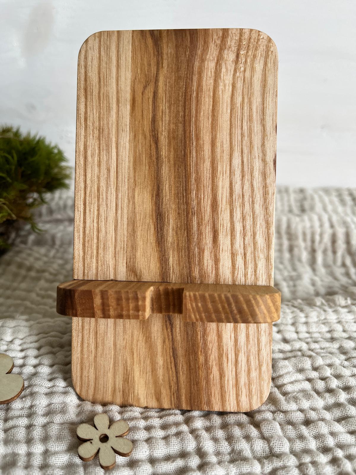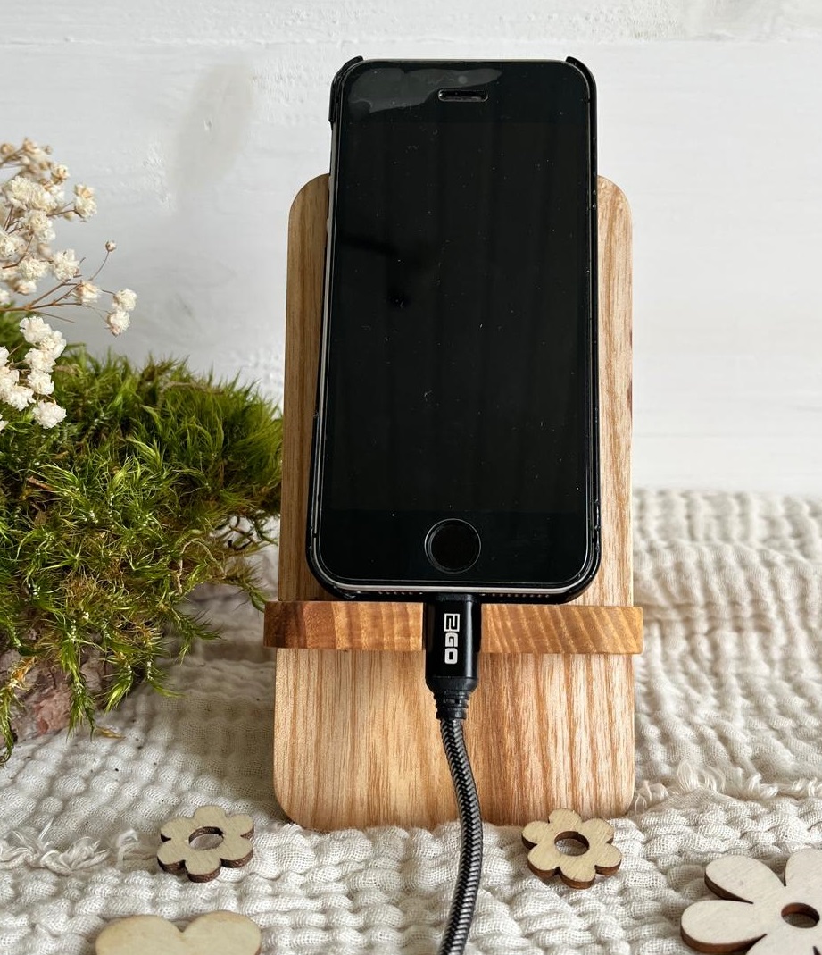 Lieferumfang: 1 x Handy-Halterung aus Eschenholz