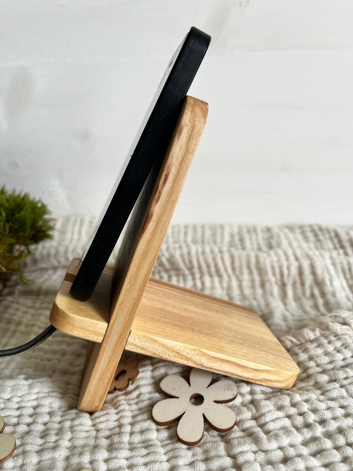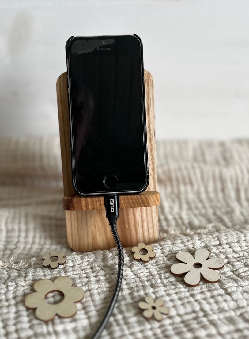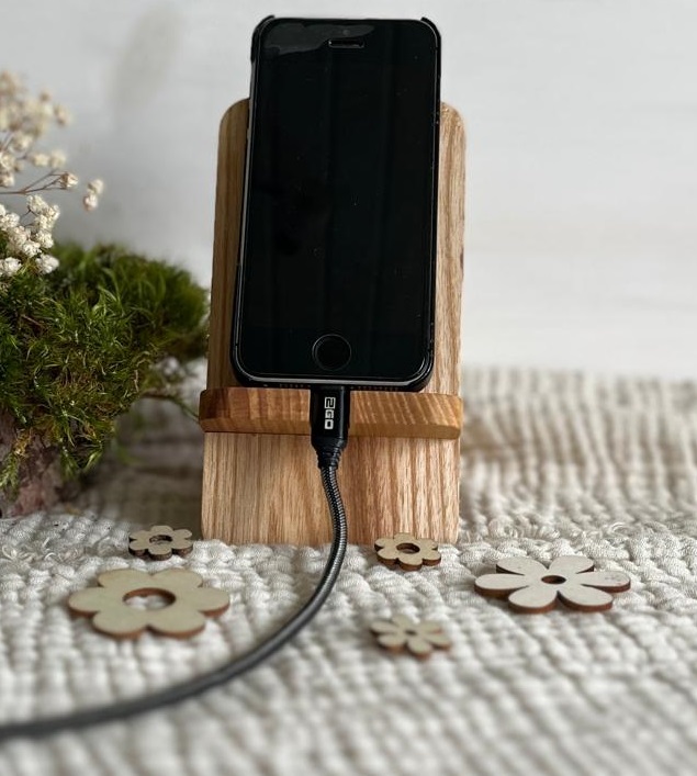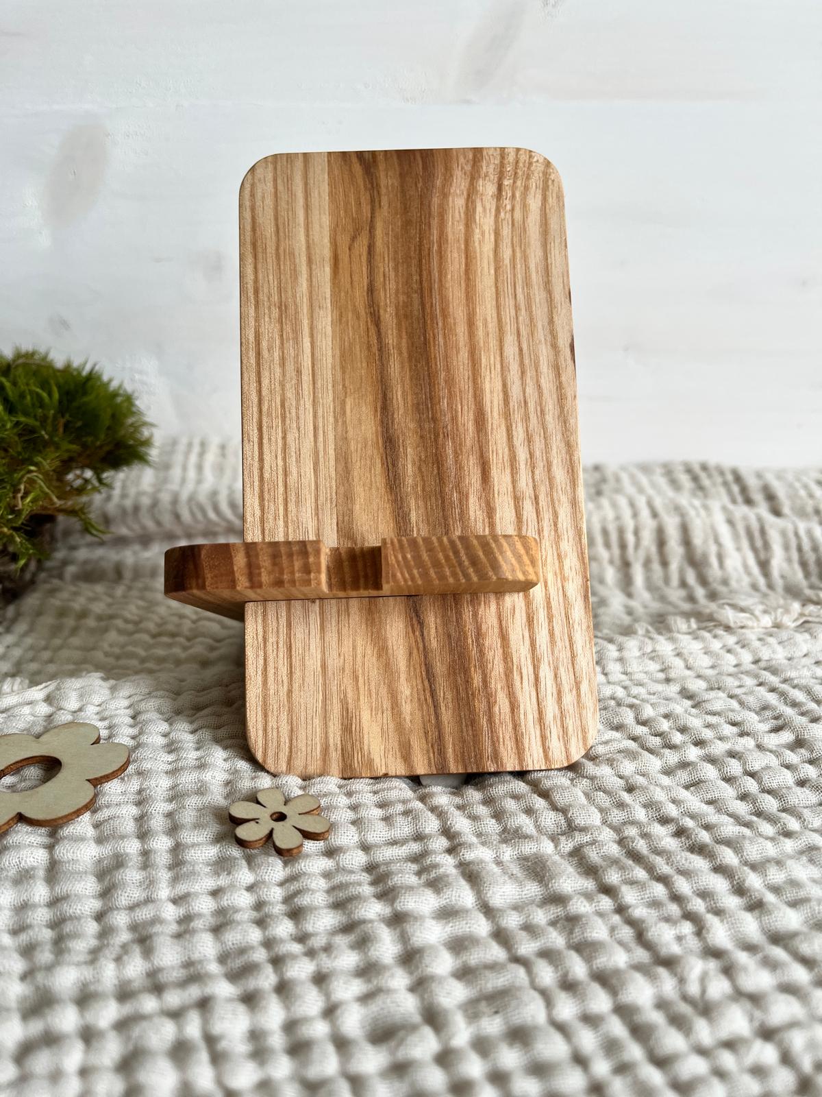 Lieferumfang: 1 x Handy-Halterung aus Eschenholz