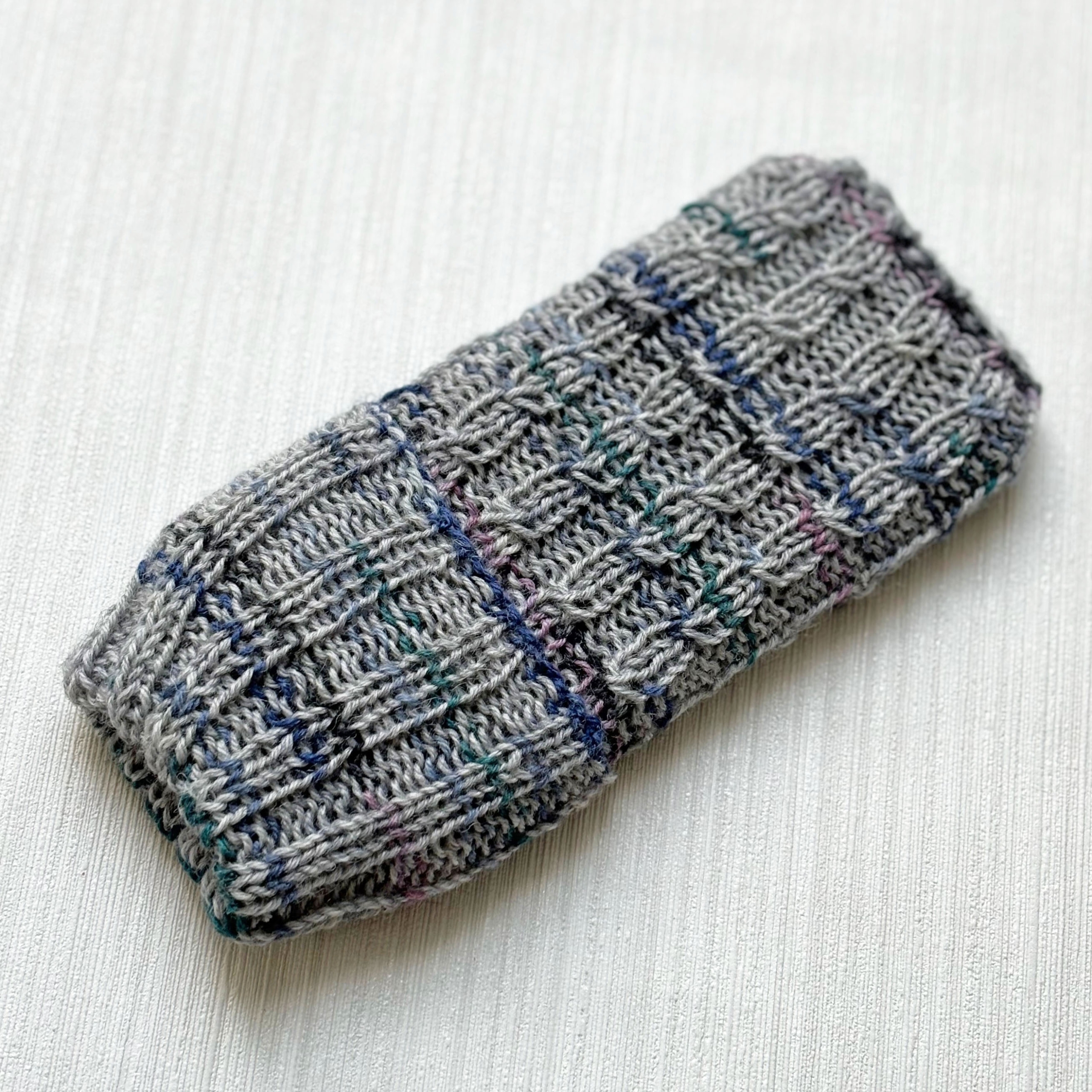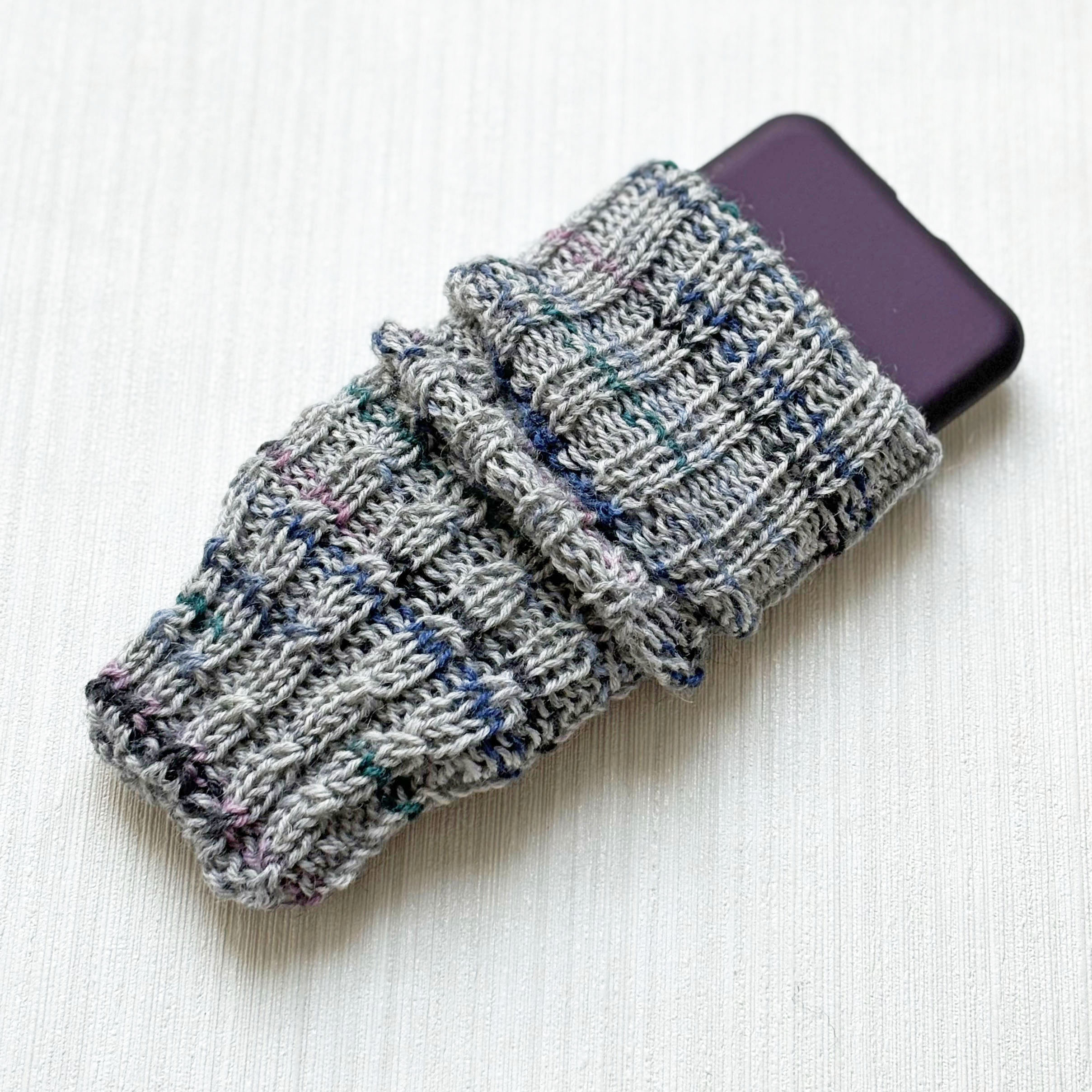 - Handysocke aus dünnem Garn in Zopfmuster handgestrickt