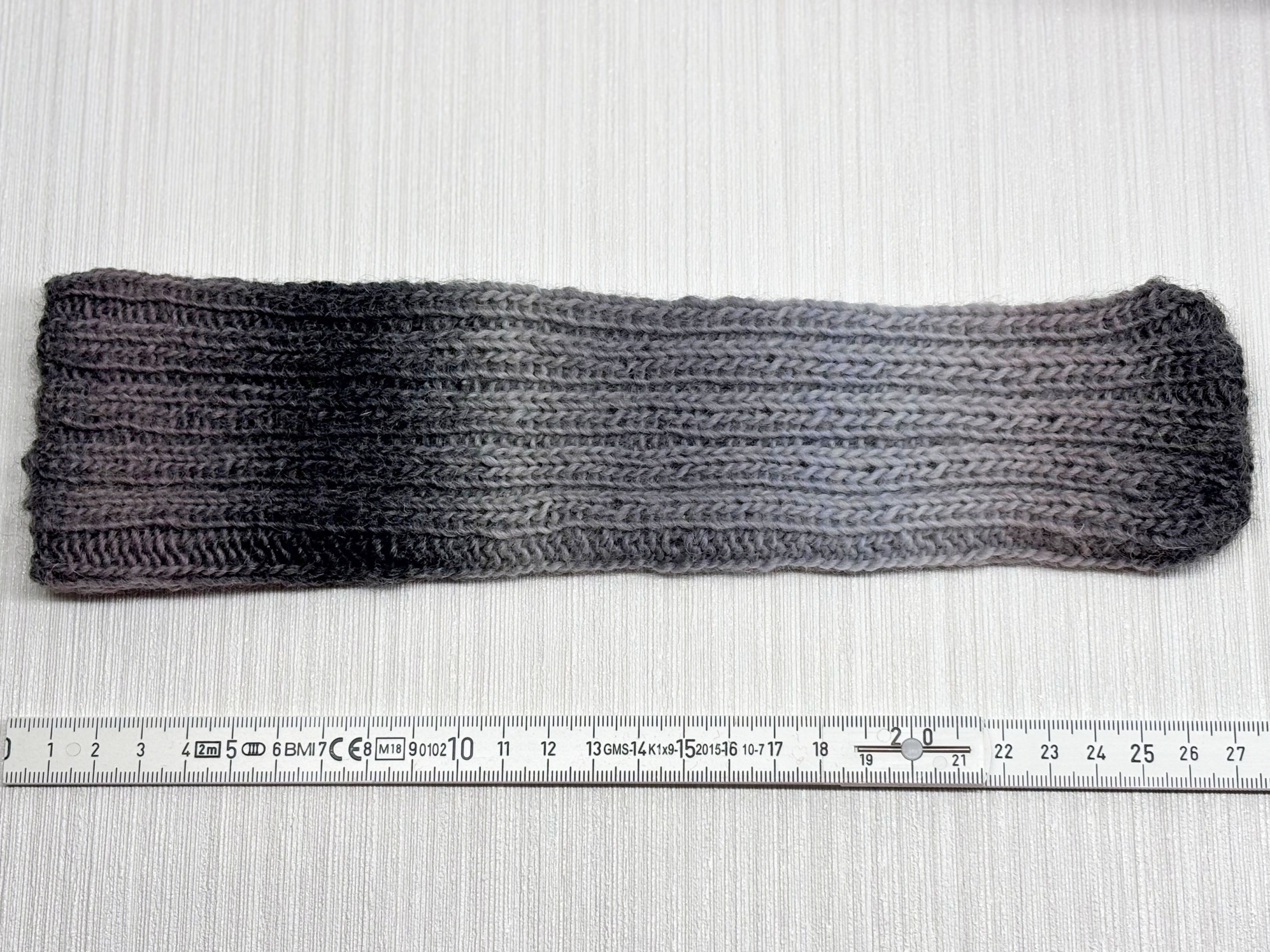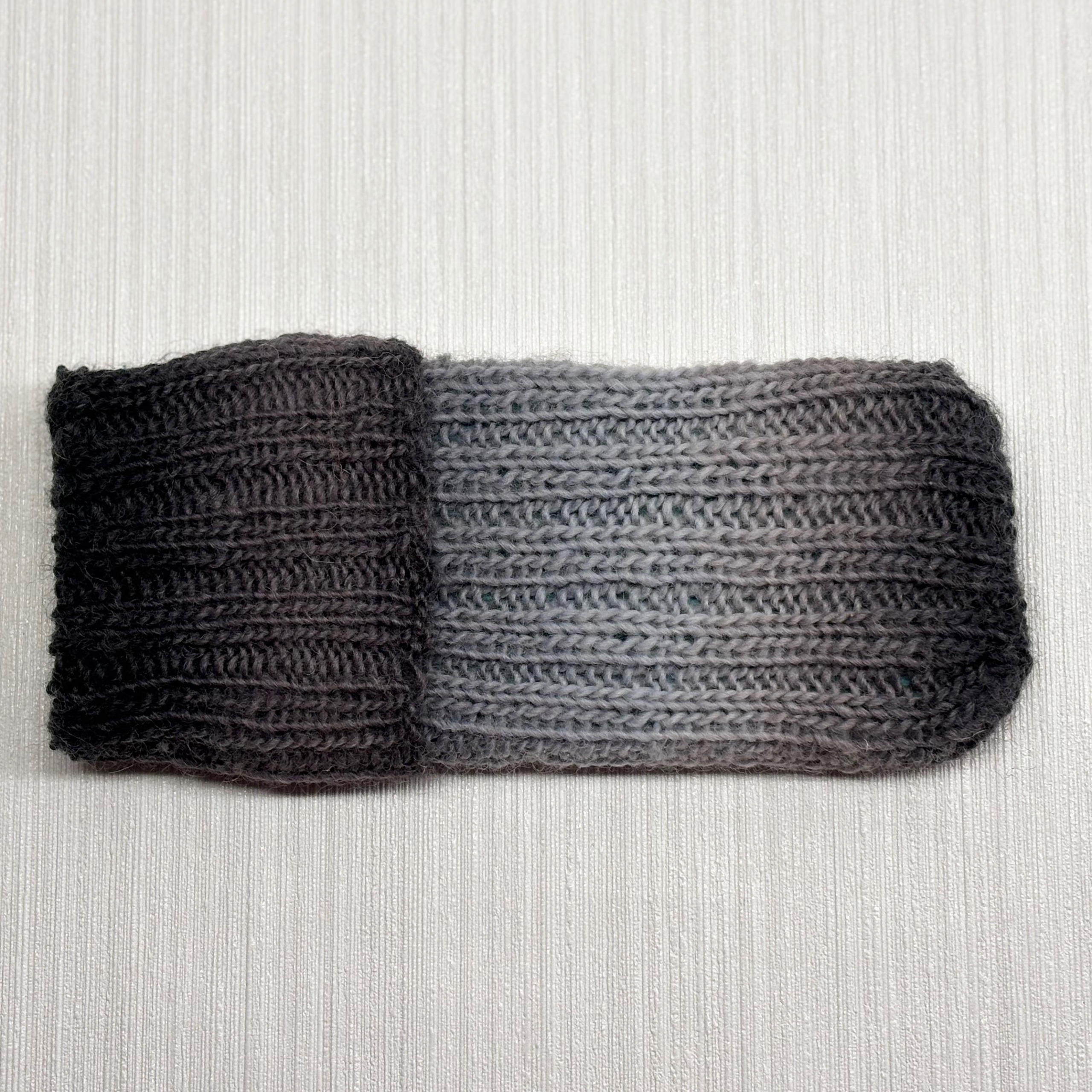Rippenmuster aus dünnem Verlaufsgarn in Grautönen