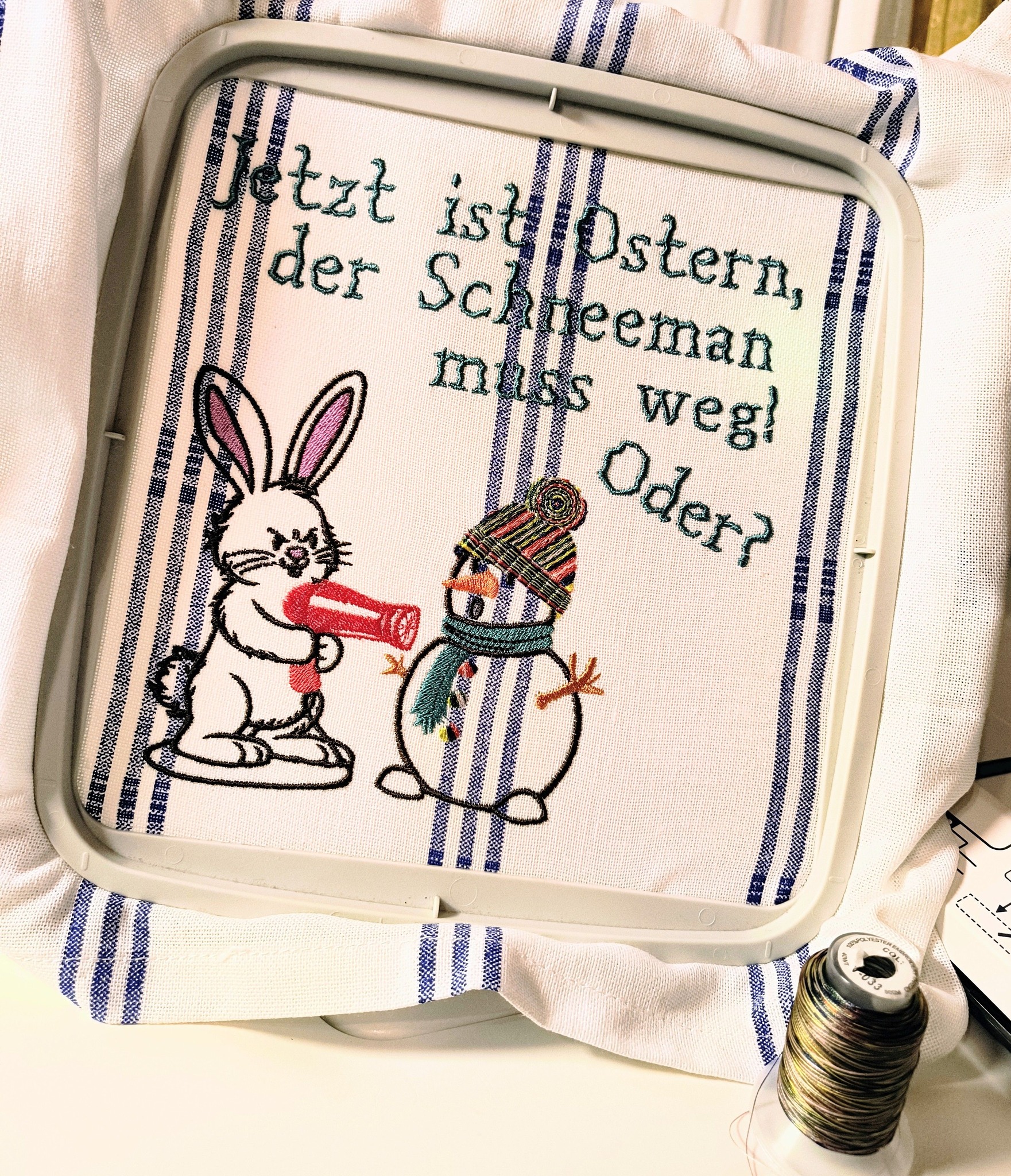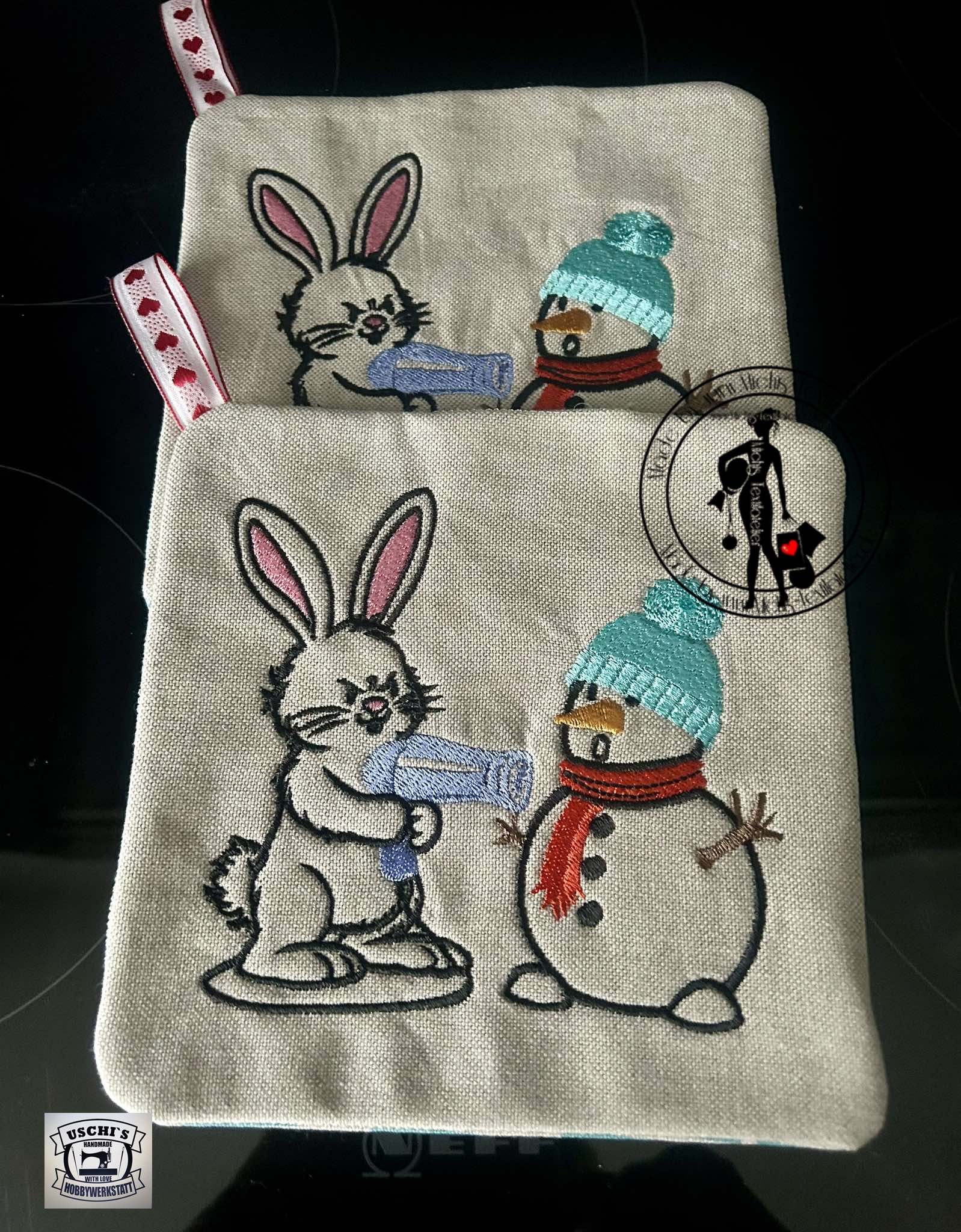 Diese lustige Stickdatei „Hase gegen Schneemann“ sorgt garantiert für ein Schmunzeln! Das Osterliche Motiv zeigt einen frechen Hasen im Duell mit einem Schneemann – perfekt für Dekorationen, Kleidung oder kreative Geschenkideen.