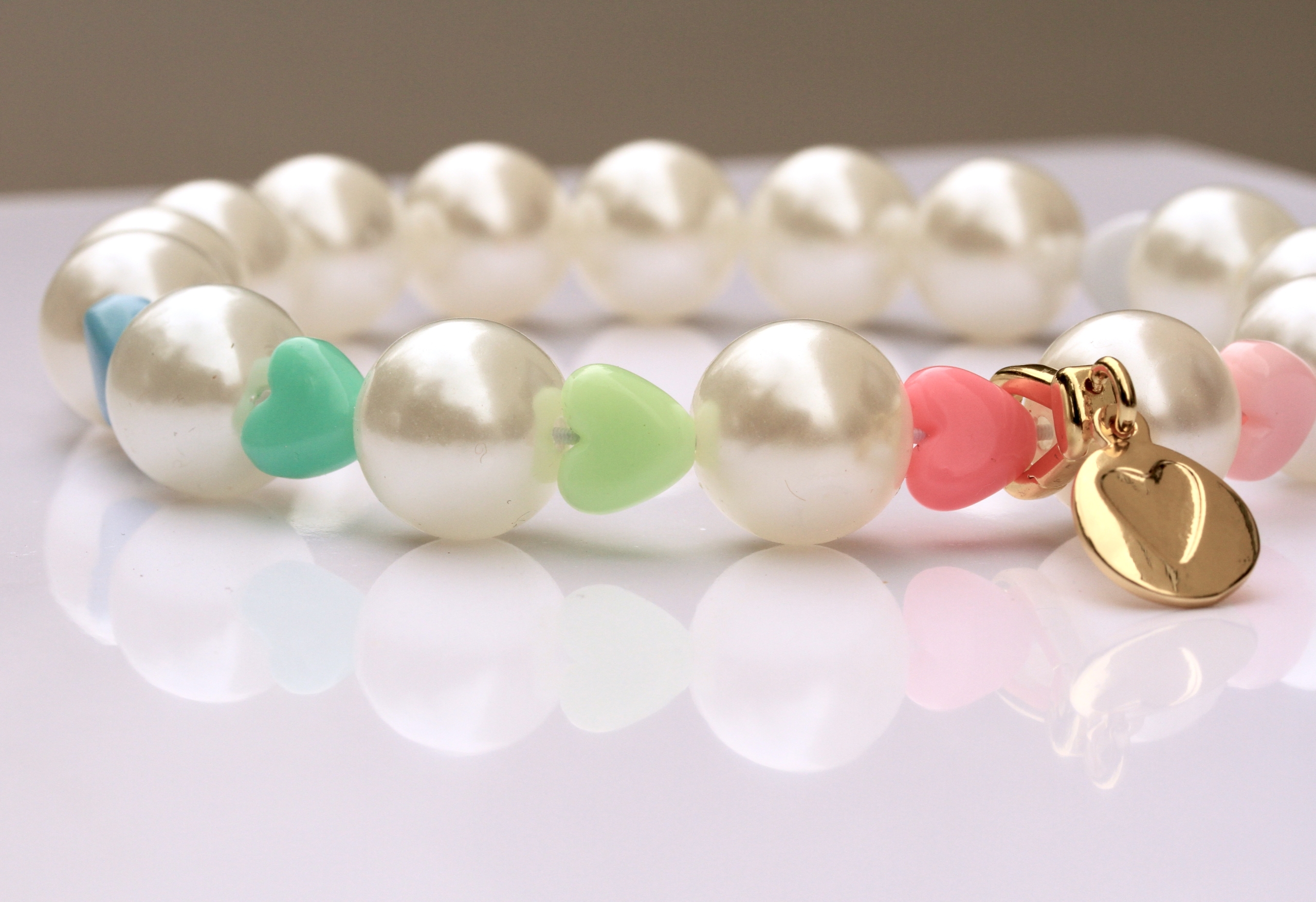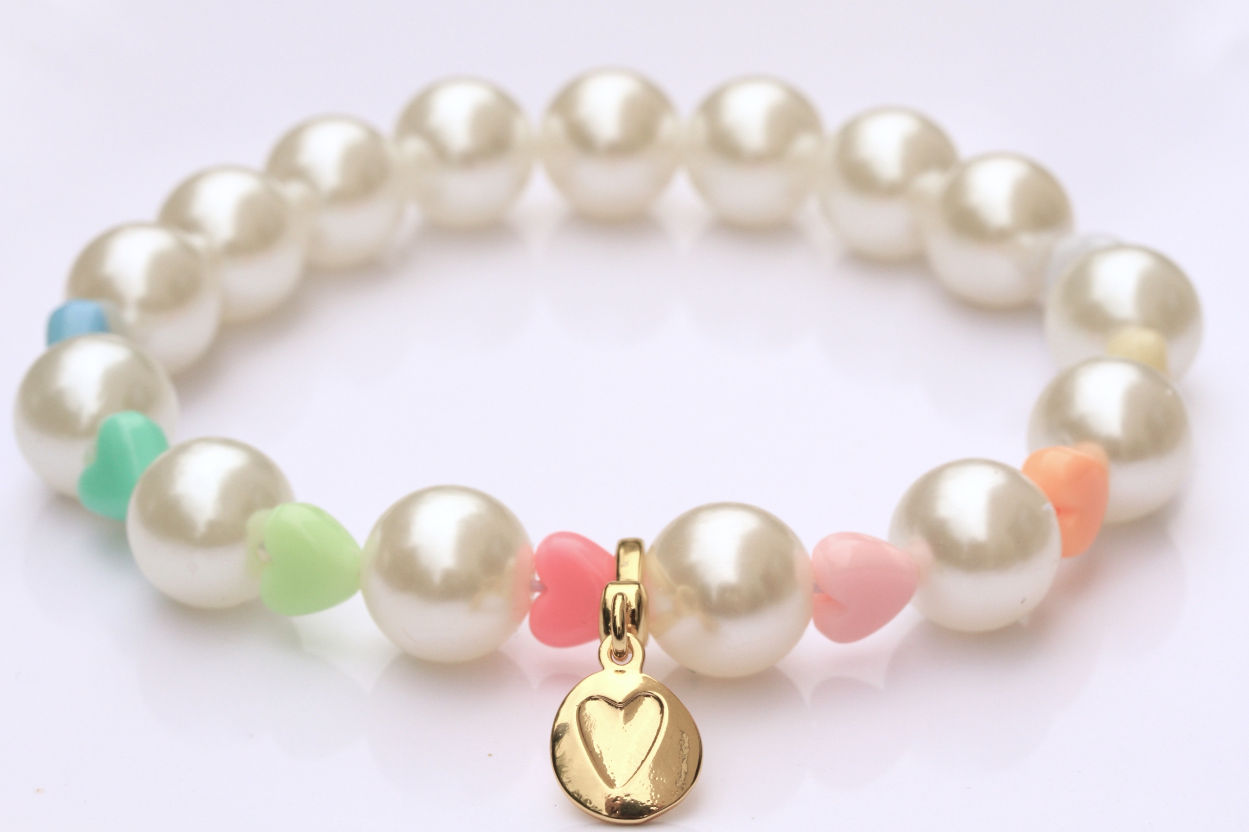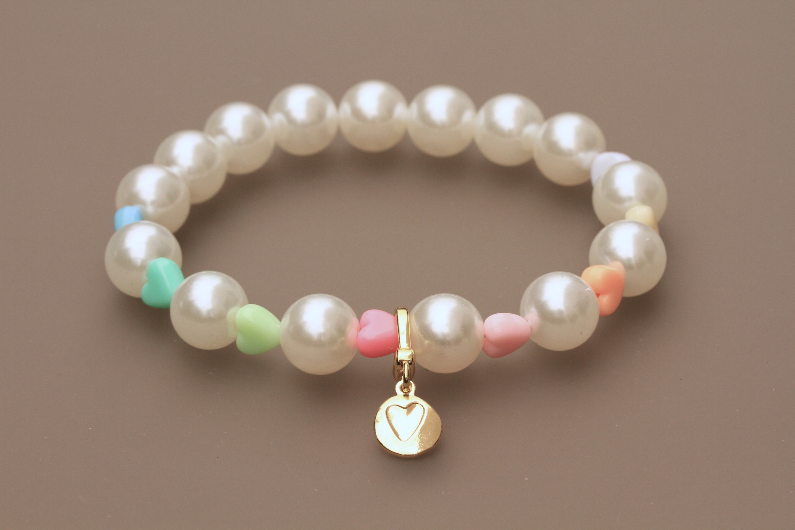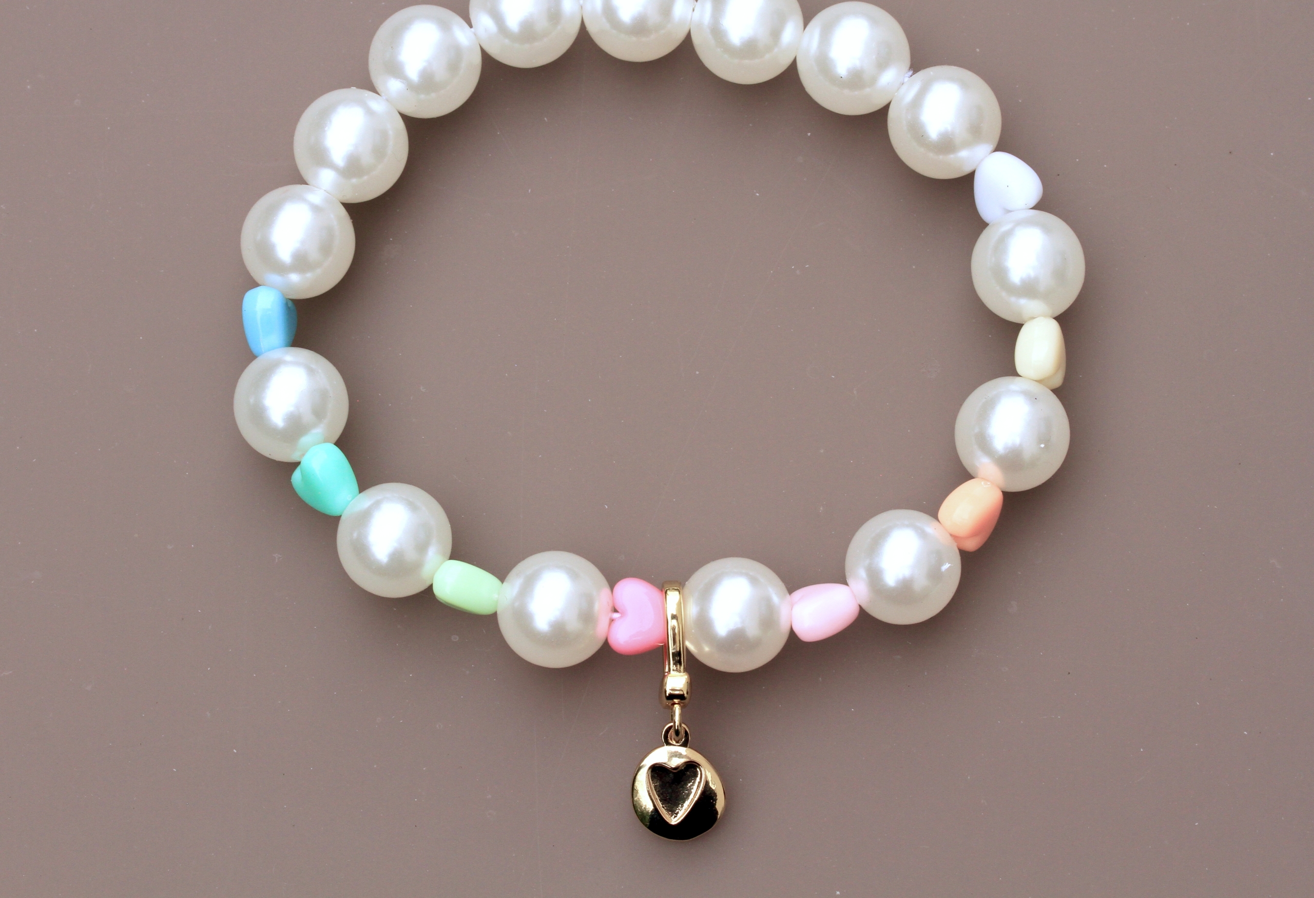 Der charmante Mix aus Schlichten Perlen und bunten Herzen aus Regenbogenfarben verleiht dieser Kette ihren einzigartigen niedlichen Charakter.