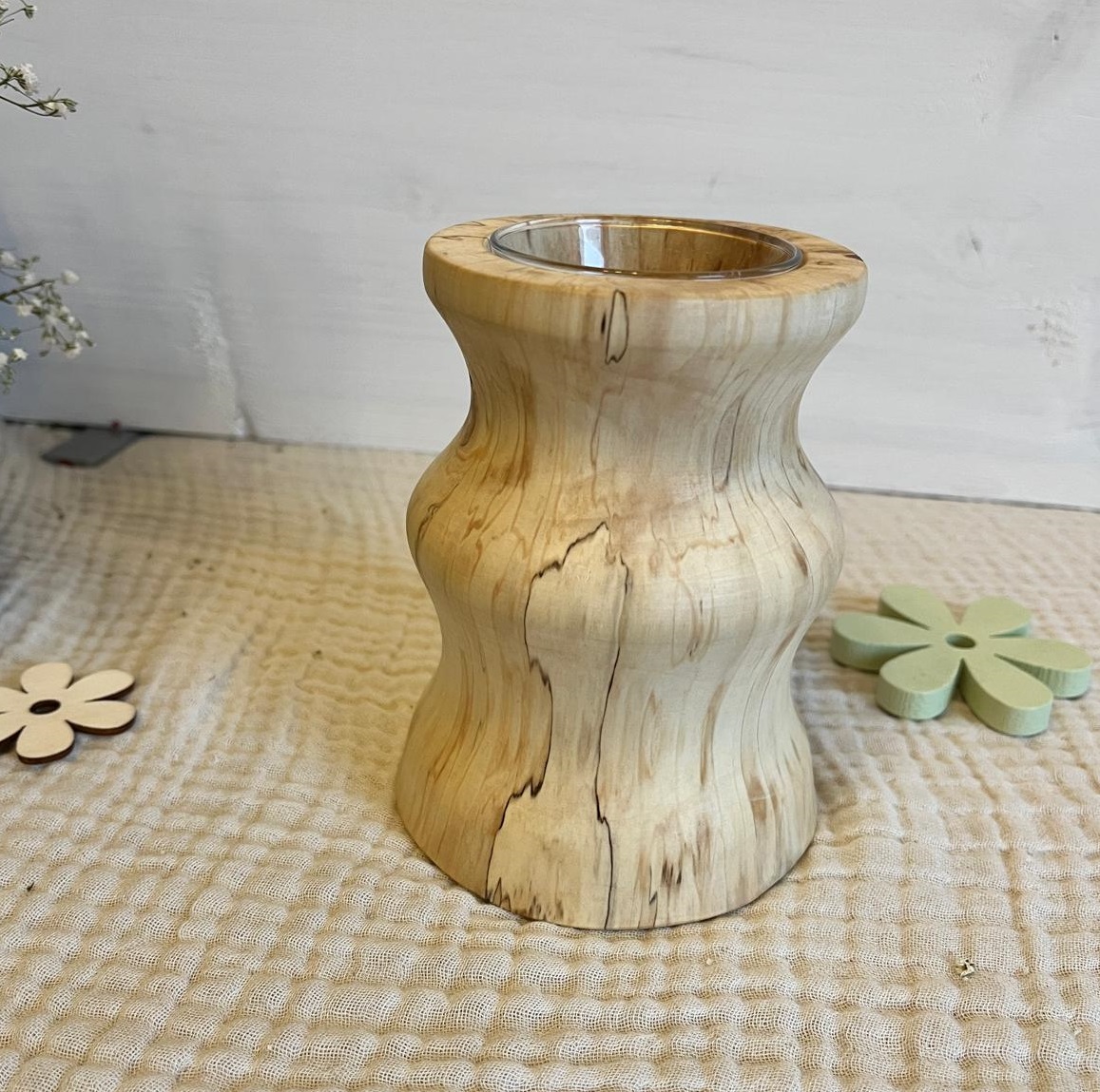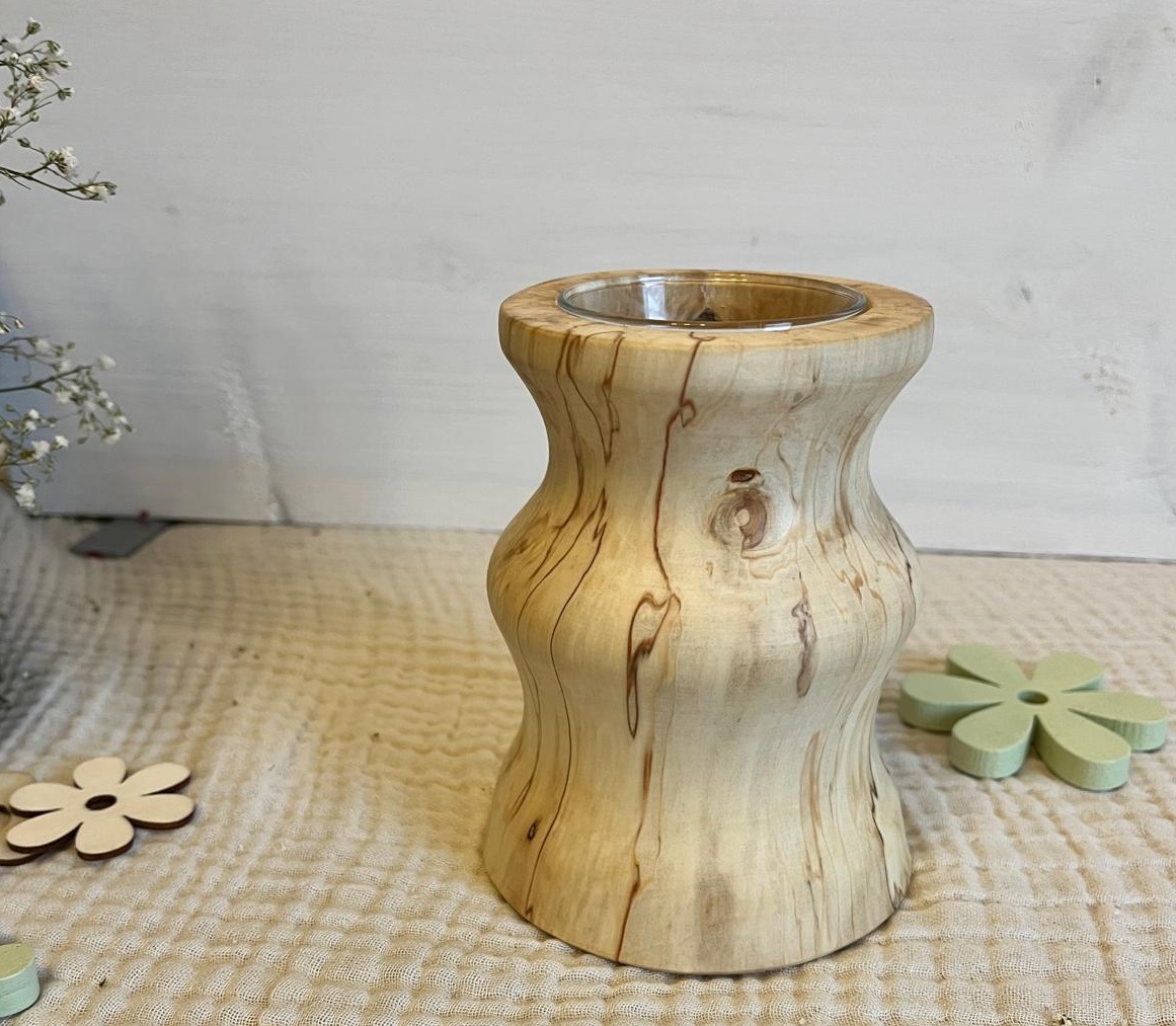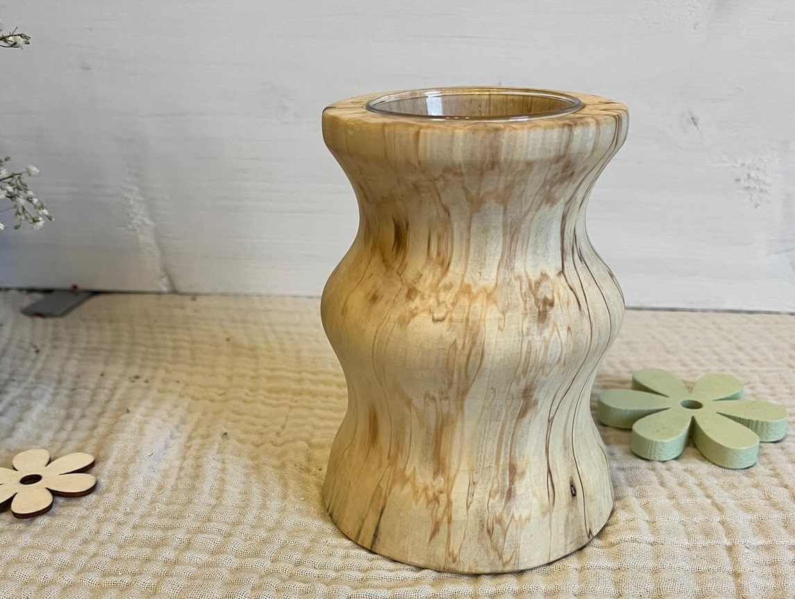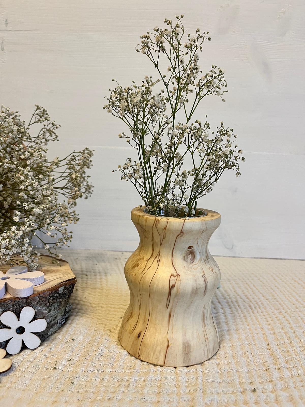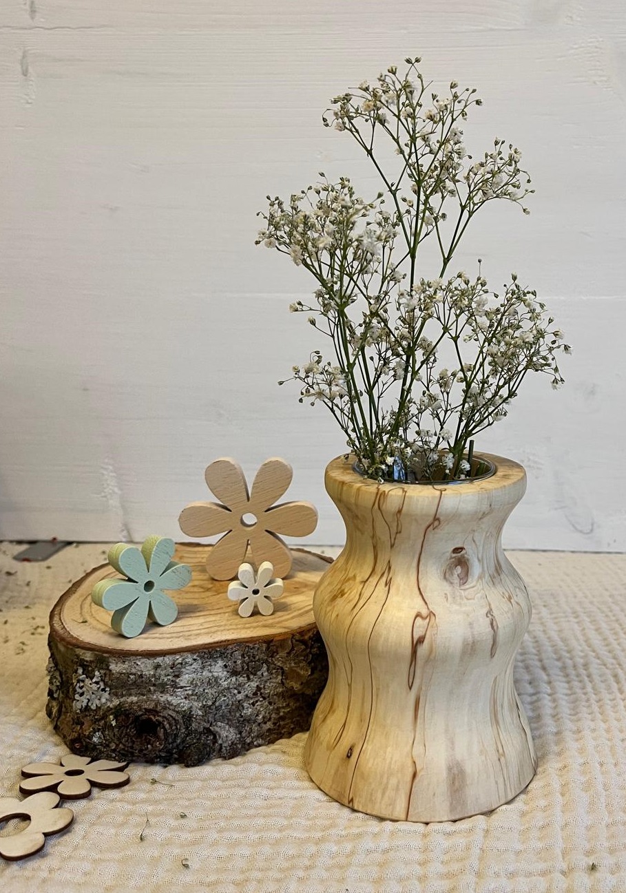 ⚠️ Hinweis: Holz ist ein Naturmaterial. Farbe, Maserung und kleine Astmerkmale sind gewollt und machen jede Vase einzigartig. Diese Merkmale, sowie eventuell entstehende Risse oder leichte Farbveränderungen werden nicht als Reklamationsgrund akzeptiert.