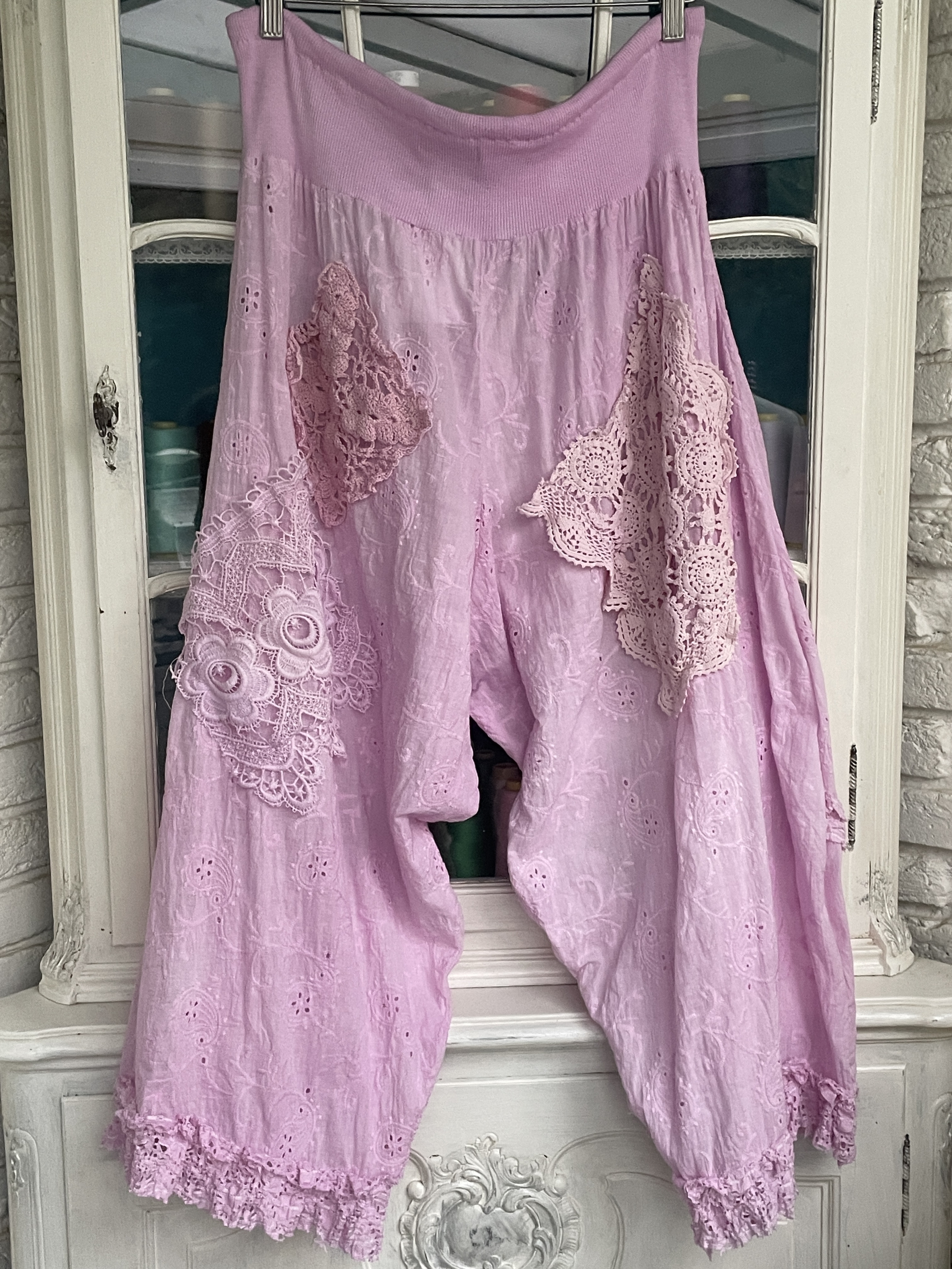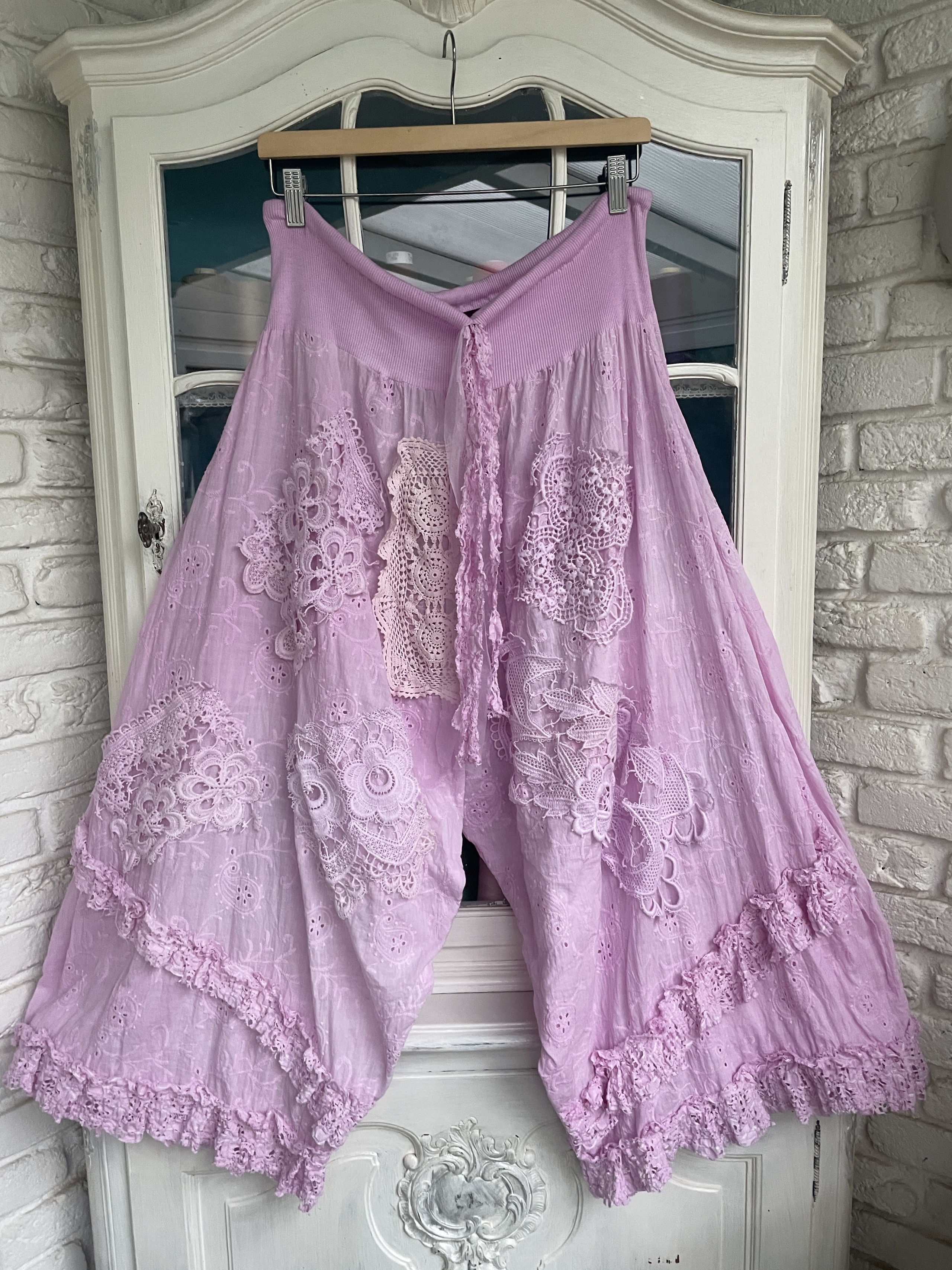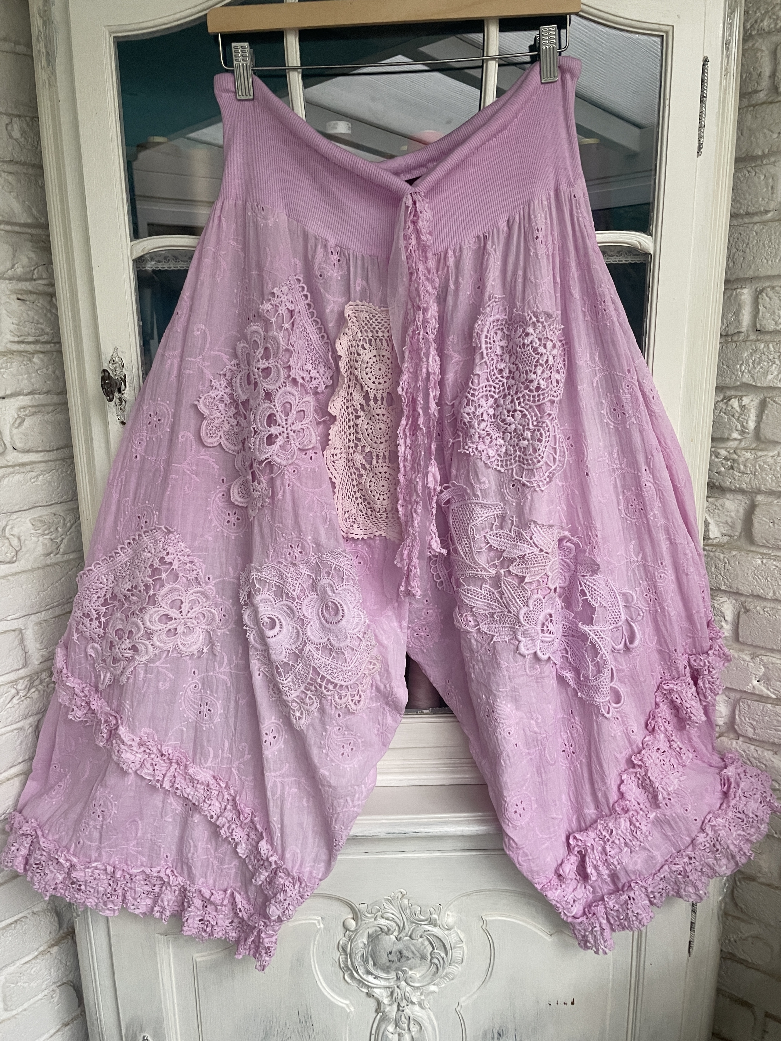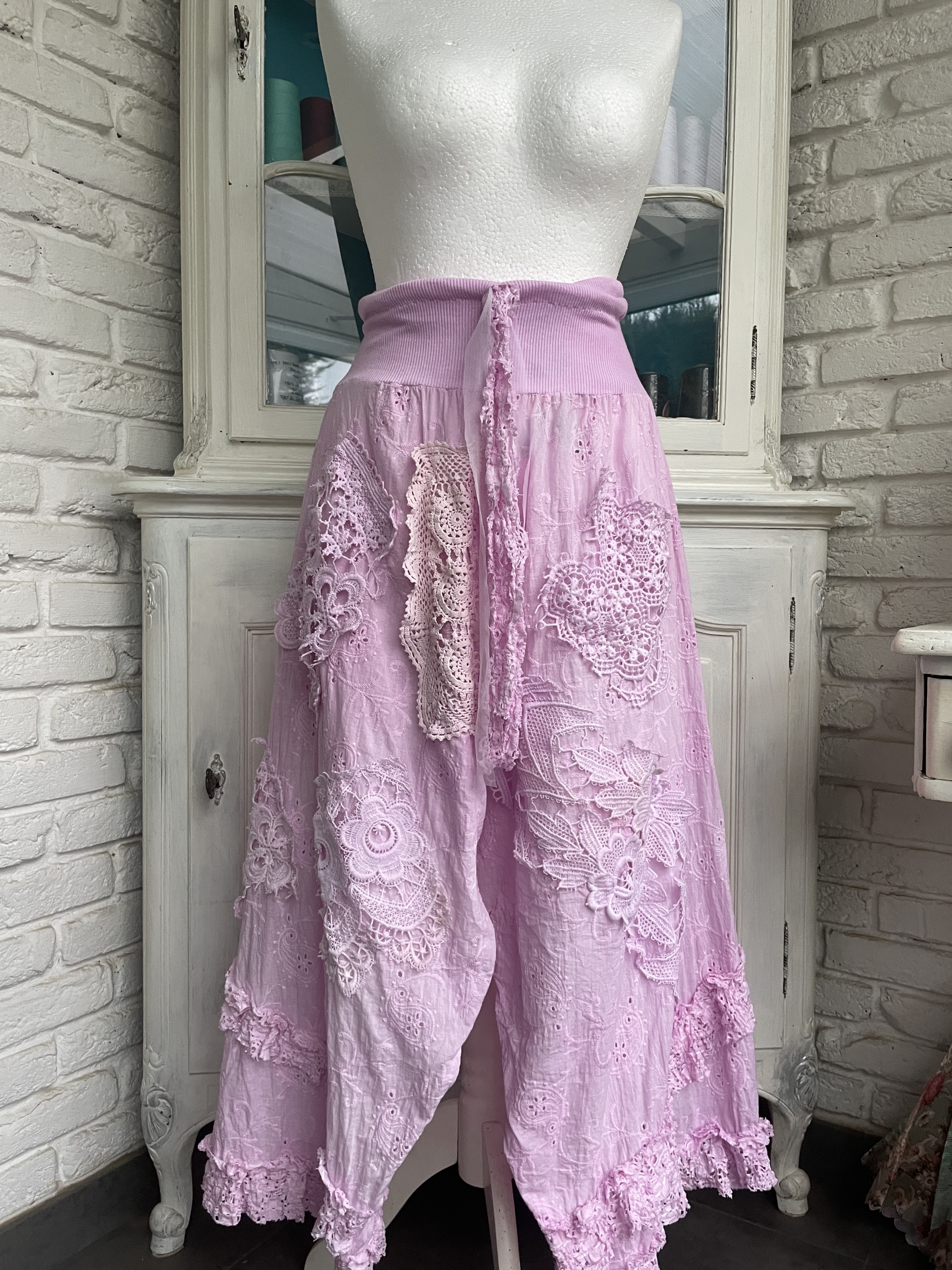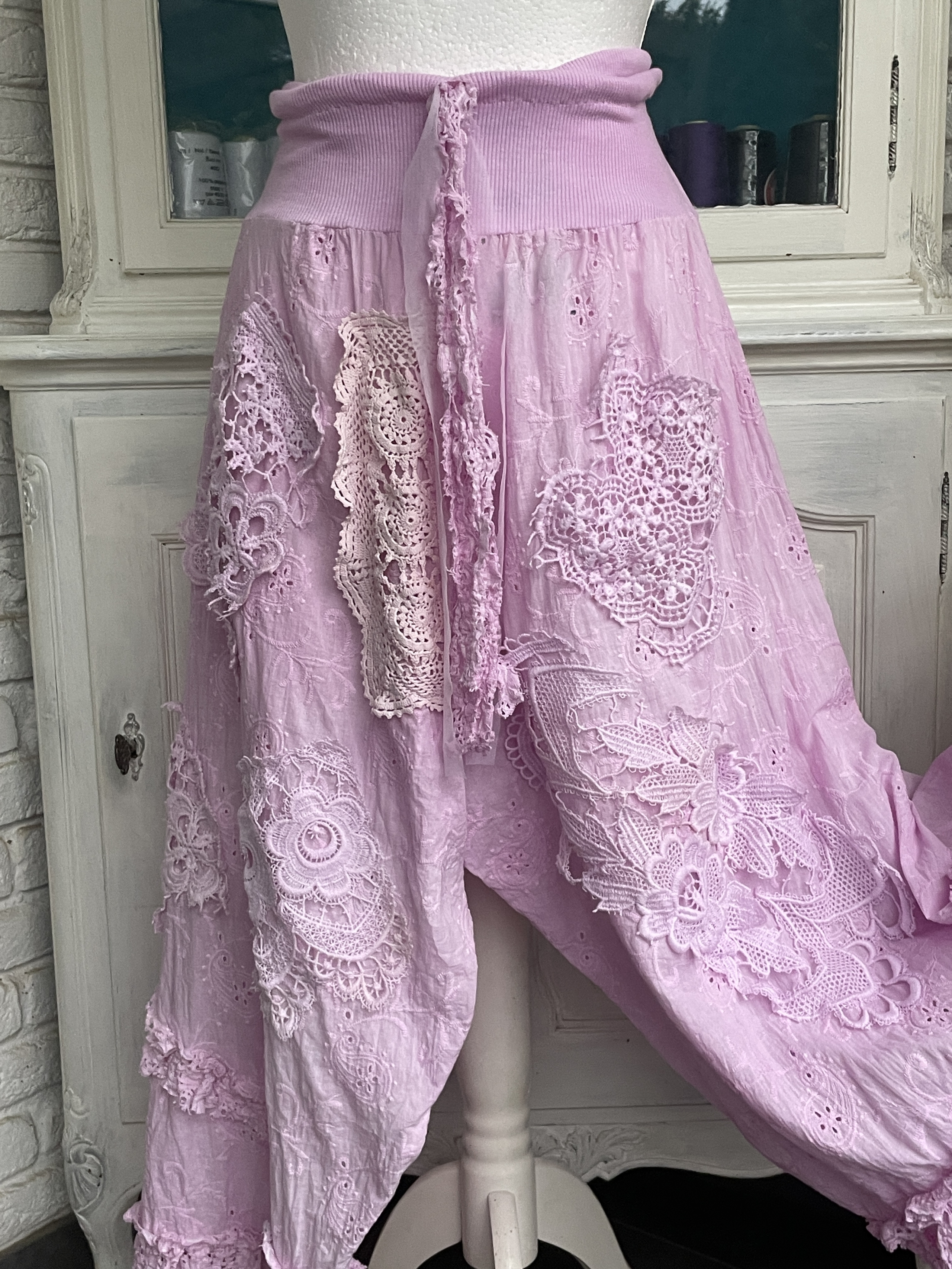 ???? Zauberhafter Hosenrock mit tiefem Schritt – handgefärbt in Rosa ????