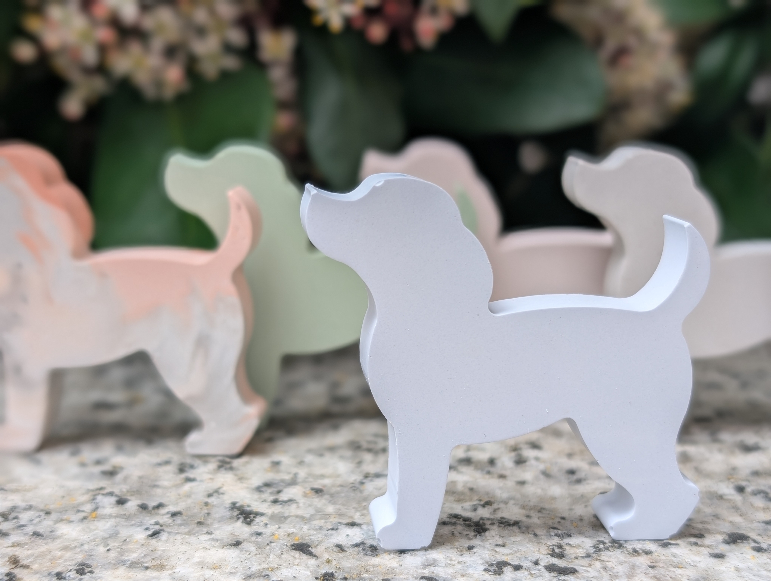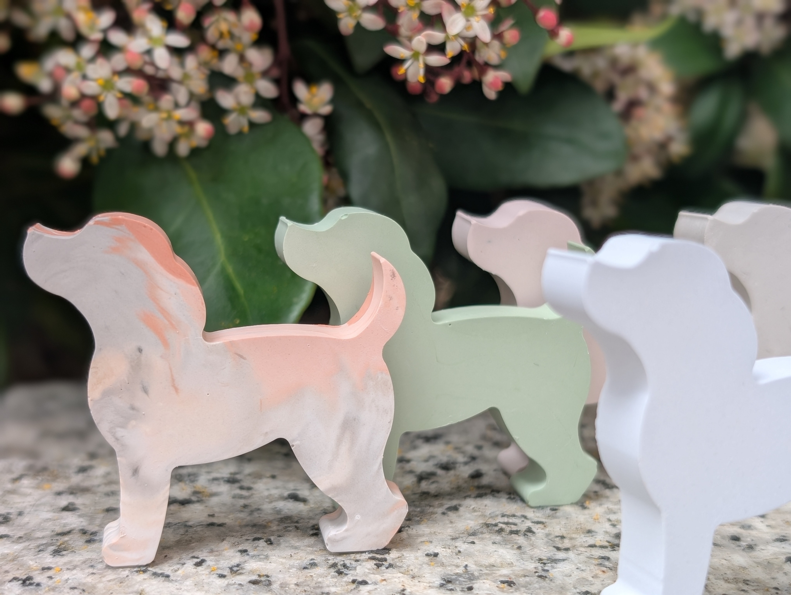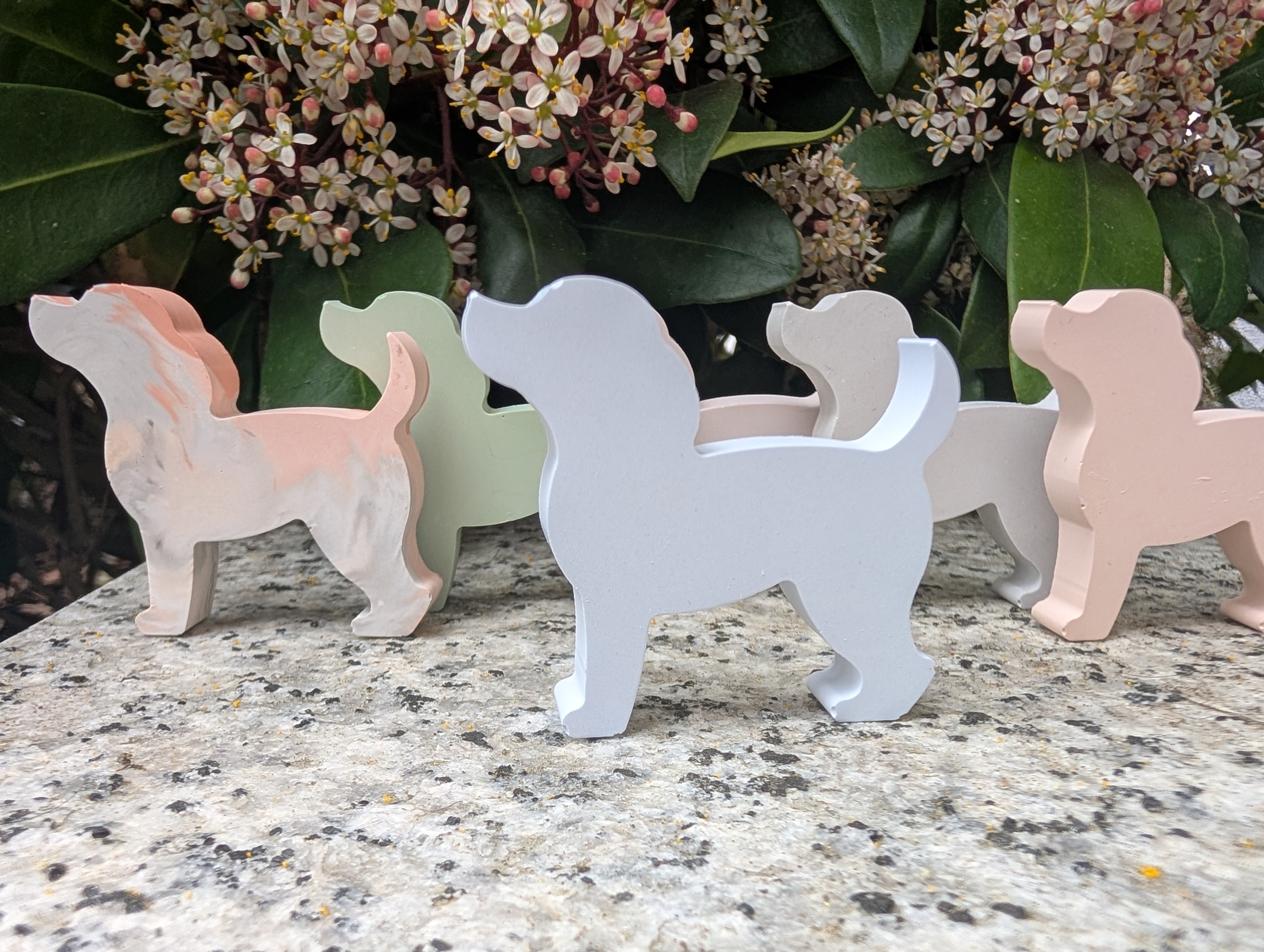 Ich gieße dir aus Reliefgießmasse gerne deinen kleinen stehenden Hund. Die Figur misst ca. H/B/T: 5,0 x 4,0 x 1,0 cm