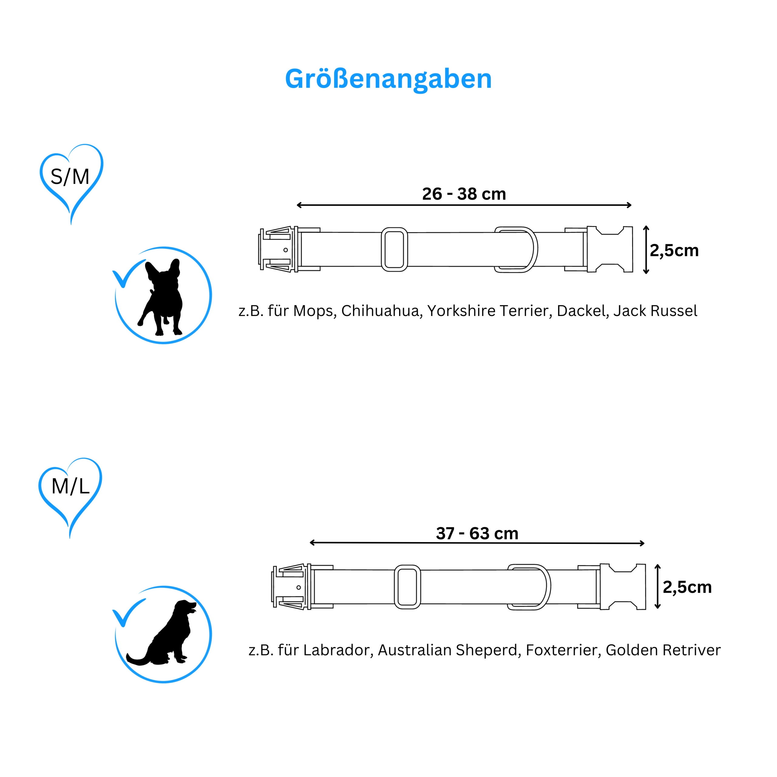 M/L-Hundehalsband = Einstellbare Länge ca. 37cm ~ 63cm x
