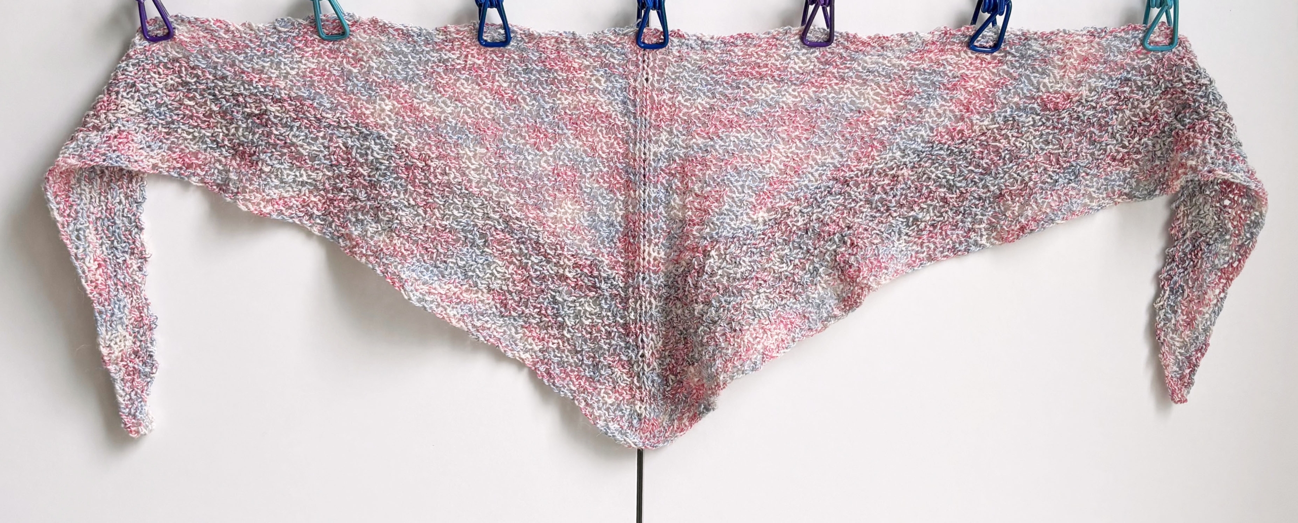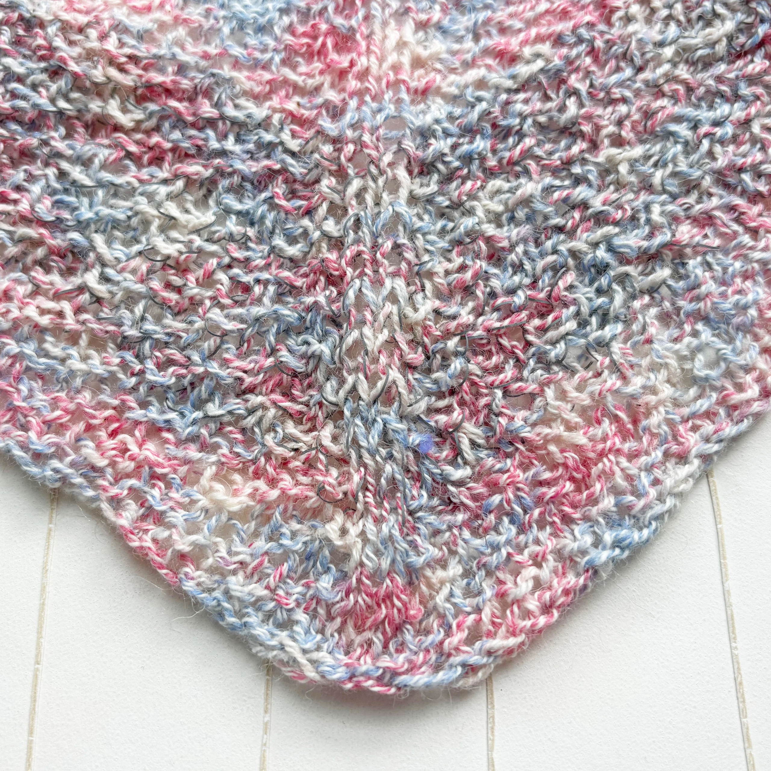 Farbverlauf in Rosa Blau meliert, in einem kleinen Noppenmuster handgestrickt