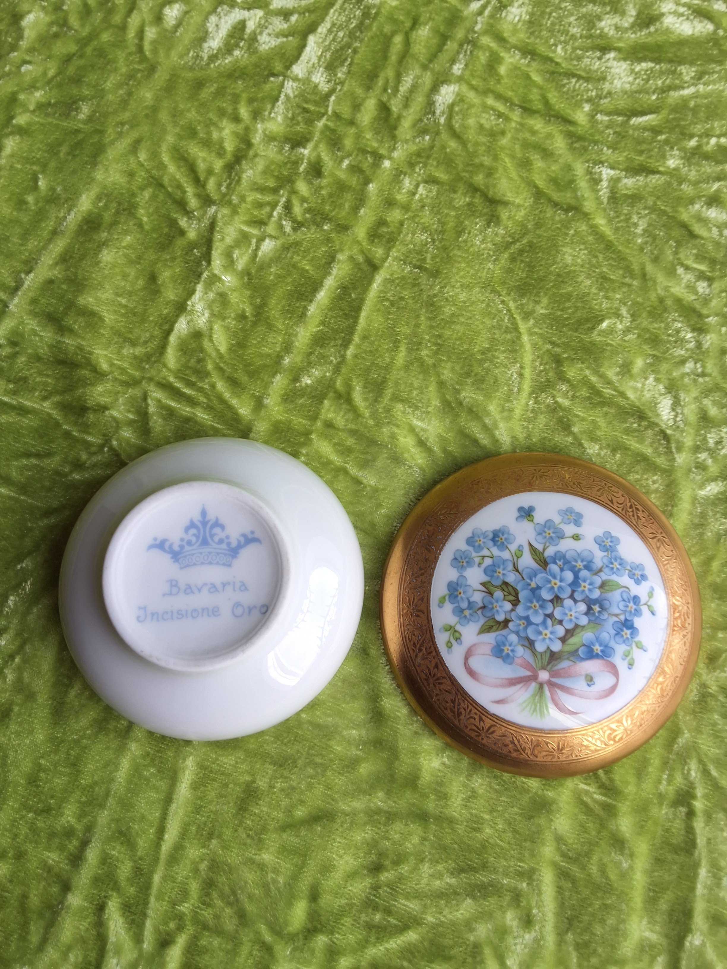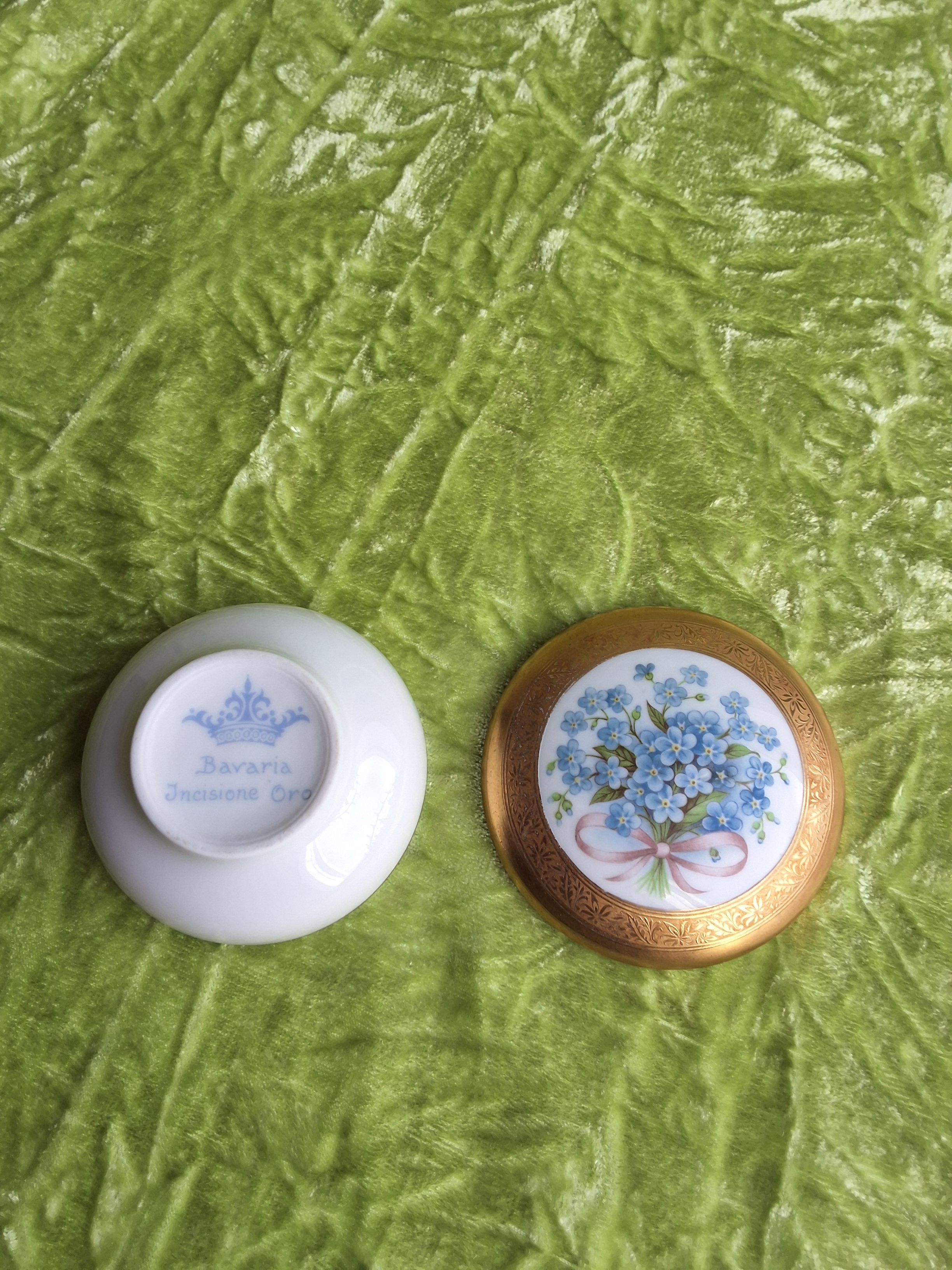 Dieses wunderschöne Porzellandöschen, vereint bayerische Qualität und italienischen Charme. Der Stil verweist auf eine Produktion in den 1980er Jahren.Â