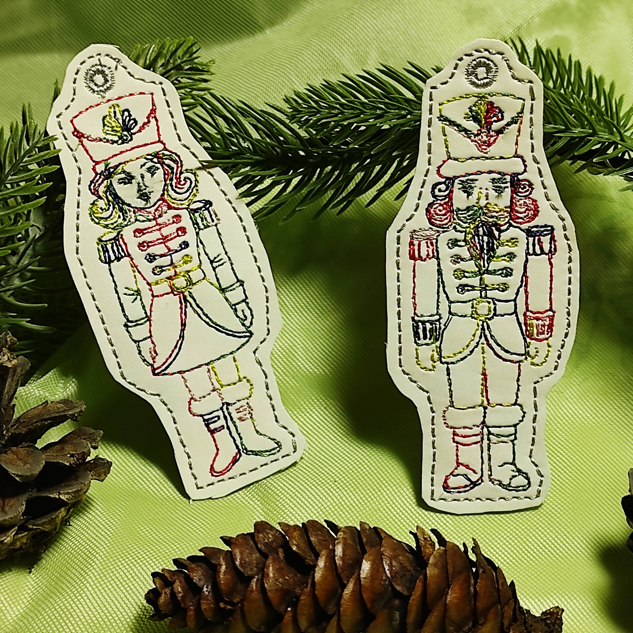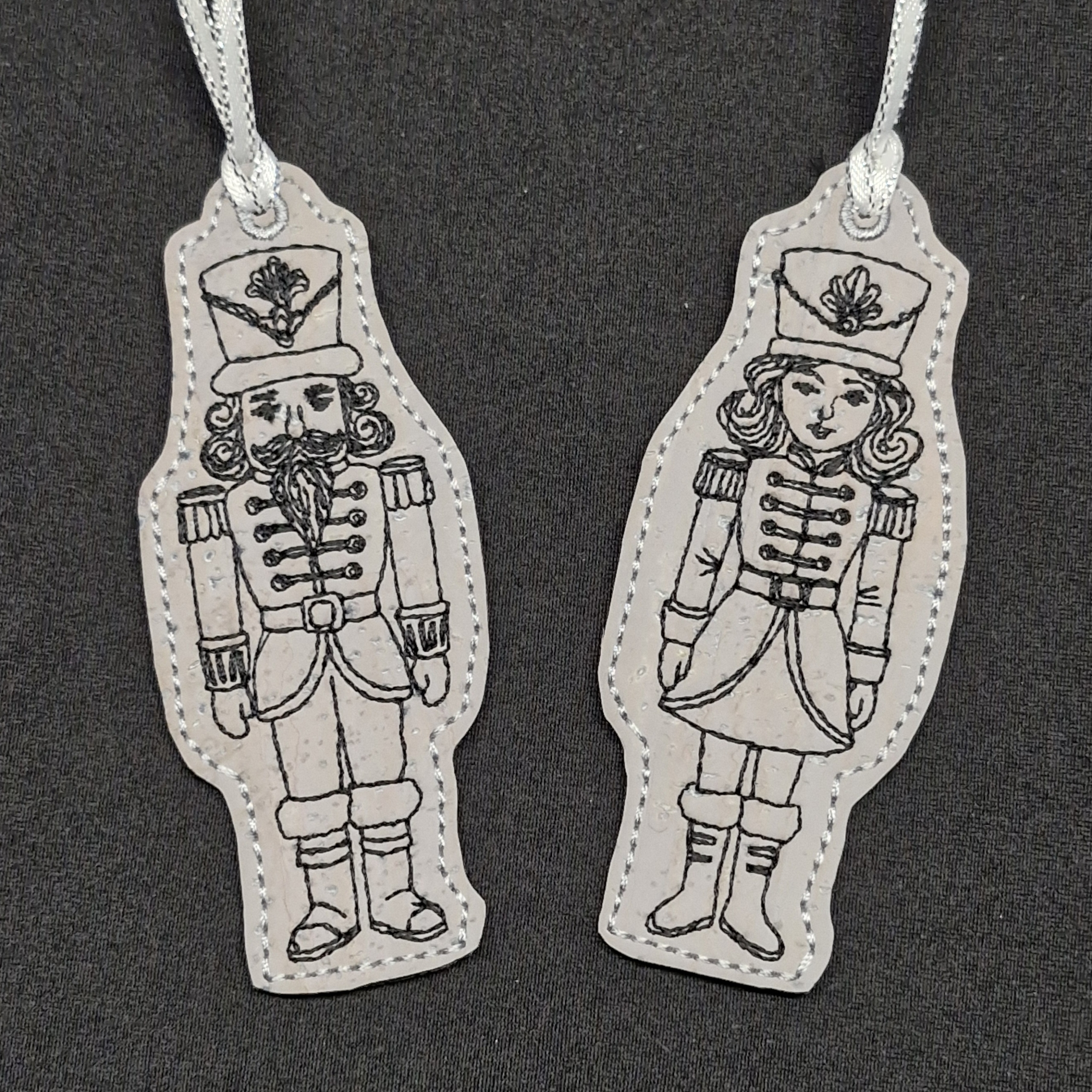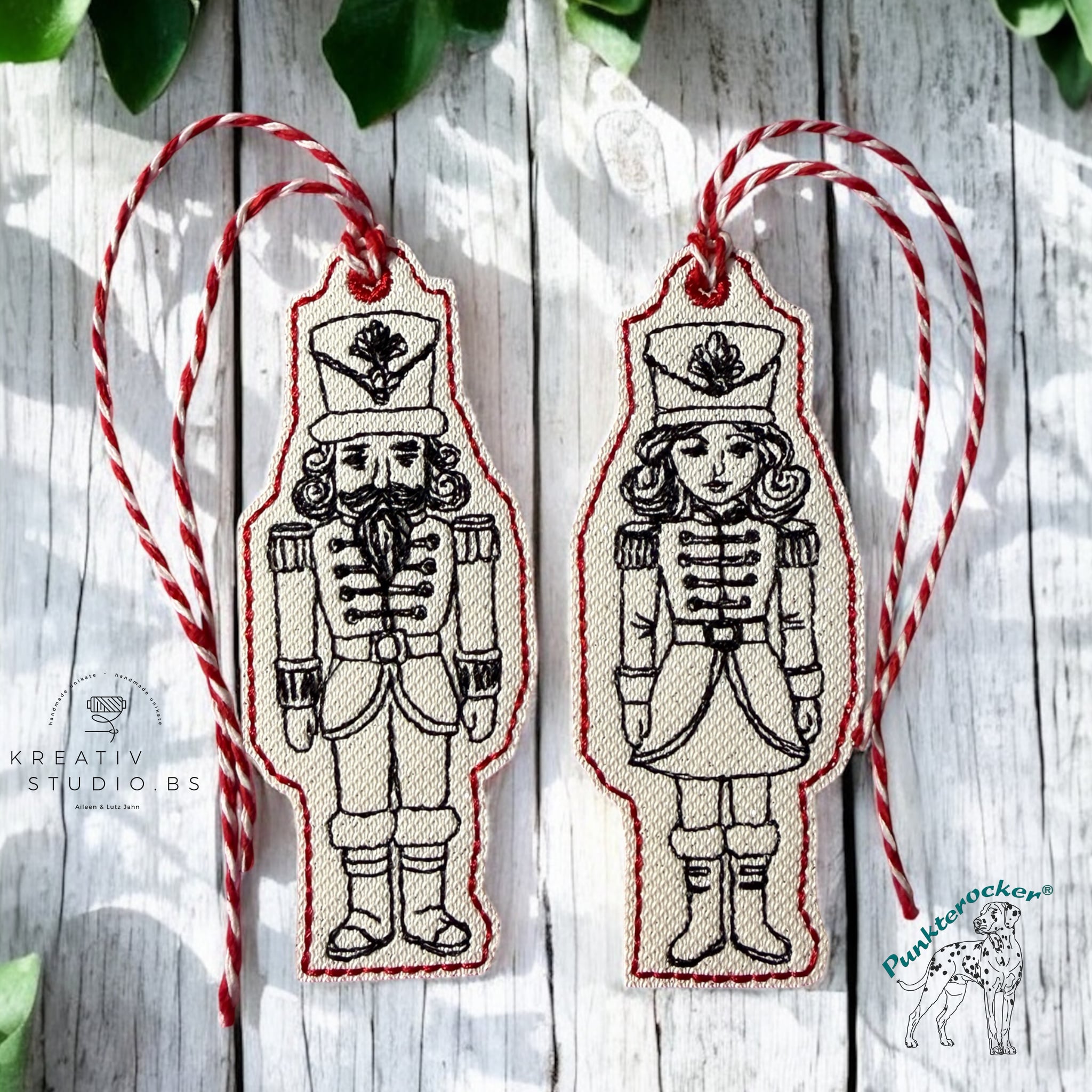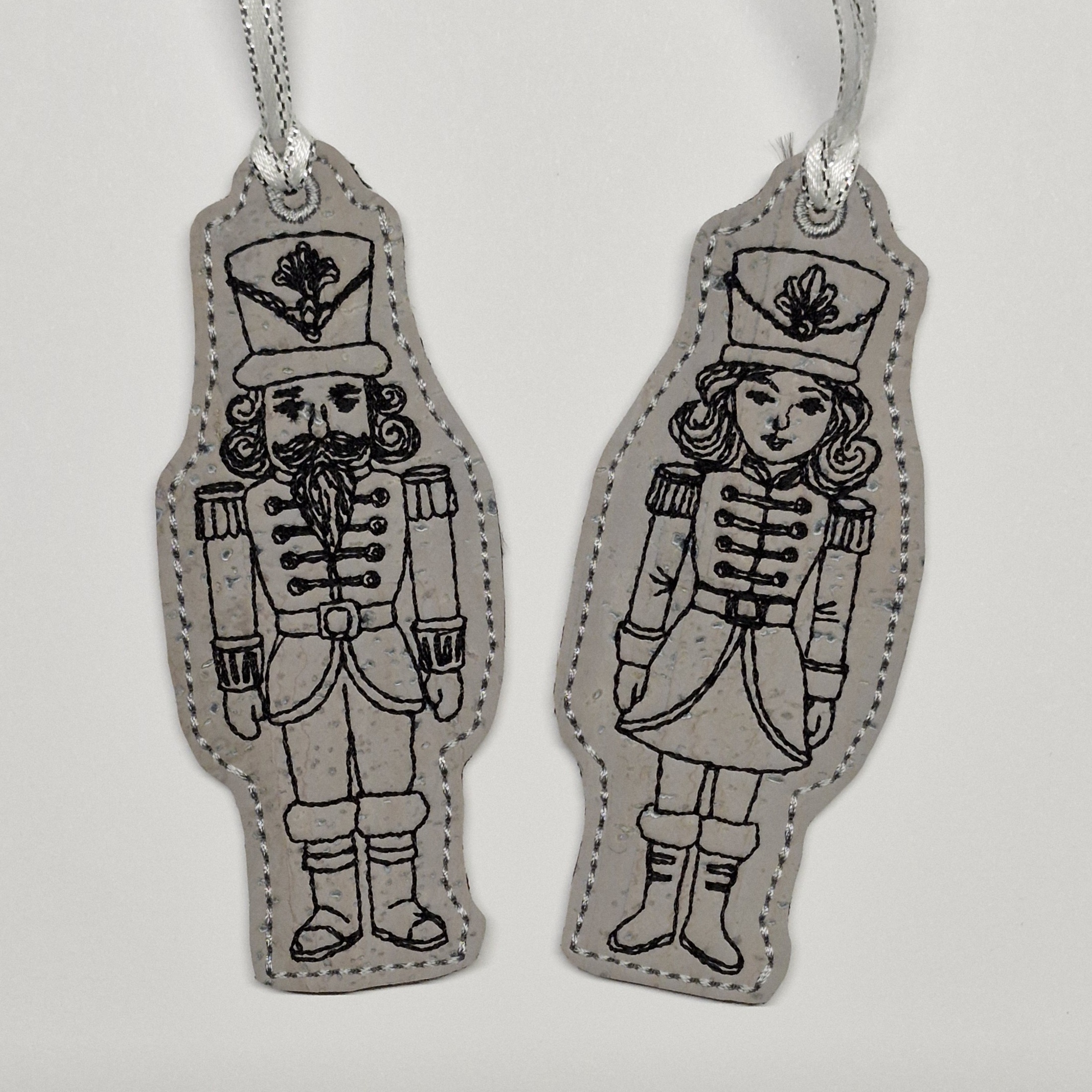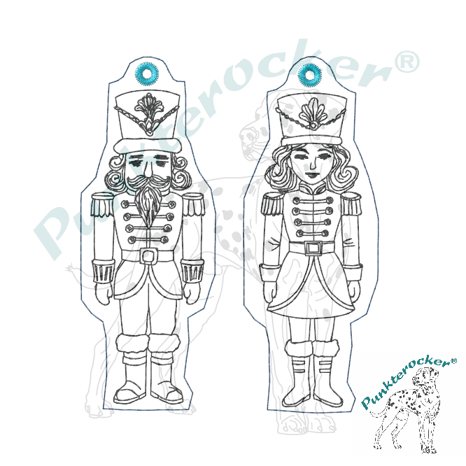 Herr und Frau Nussknacker, jeweils als Kontur Anhänger in einem Rahmen.