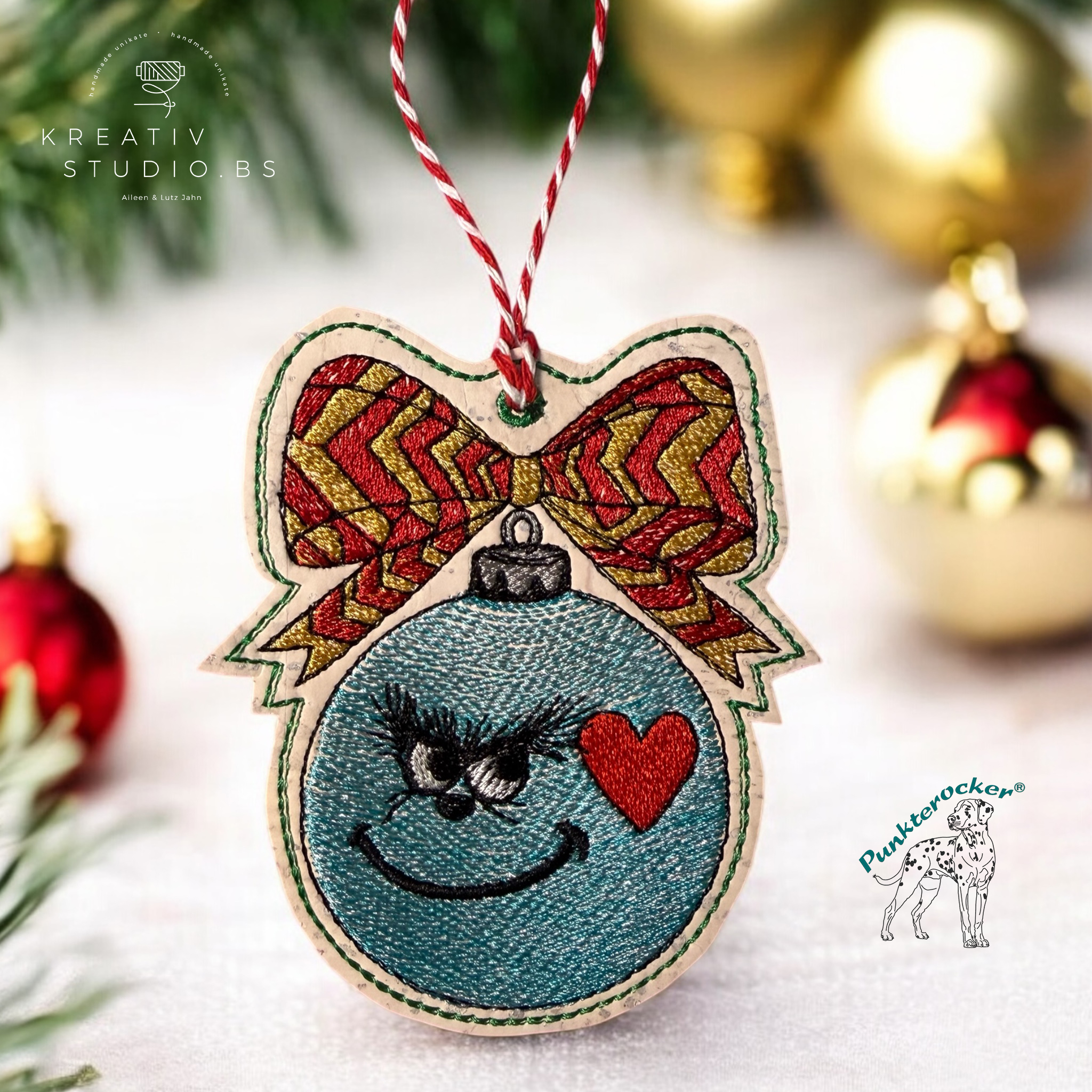 Eine lächelnde ITH Weihnachtskugel als Anhänger