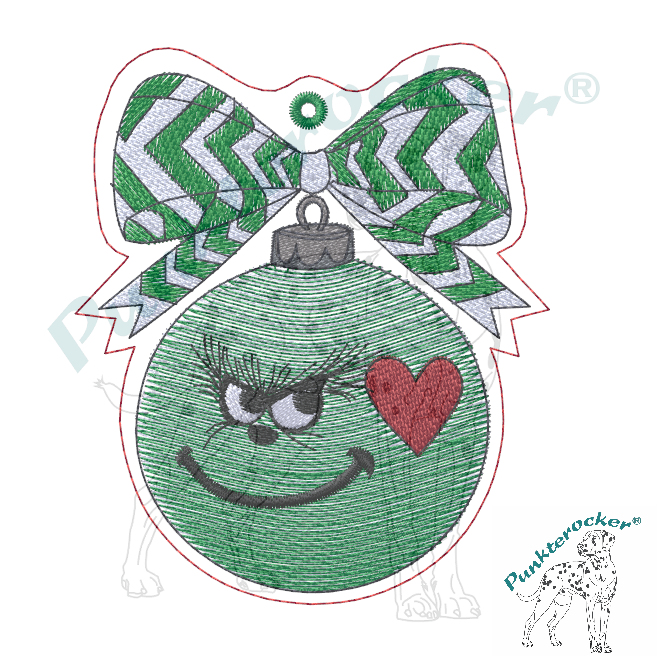 Die Weihnachtskugel ist „nicht ohne“ – die Füllung ist in 2 Lagen gestickt, die