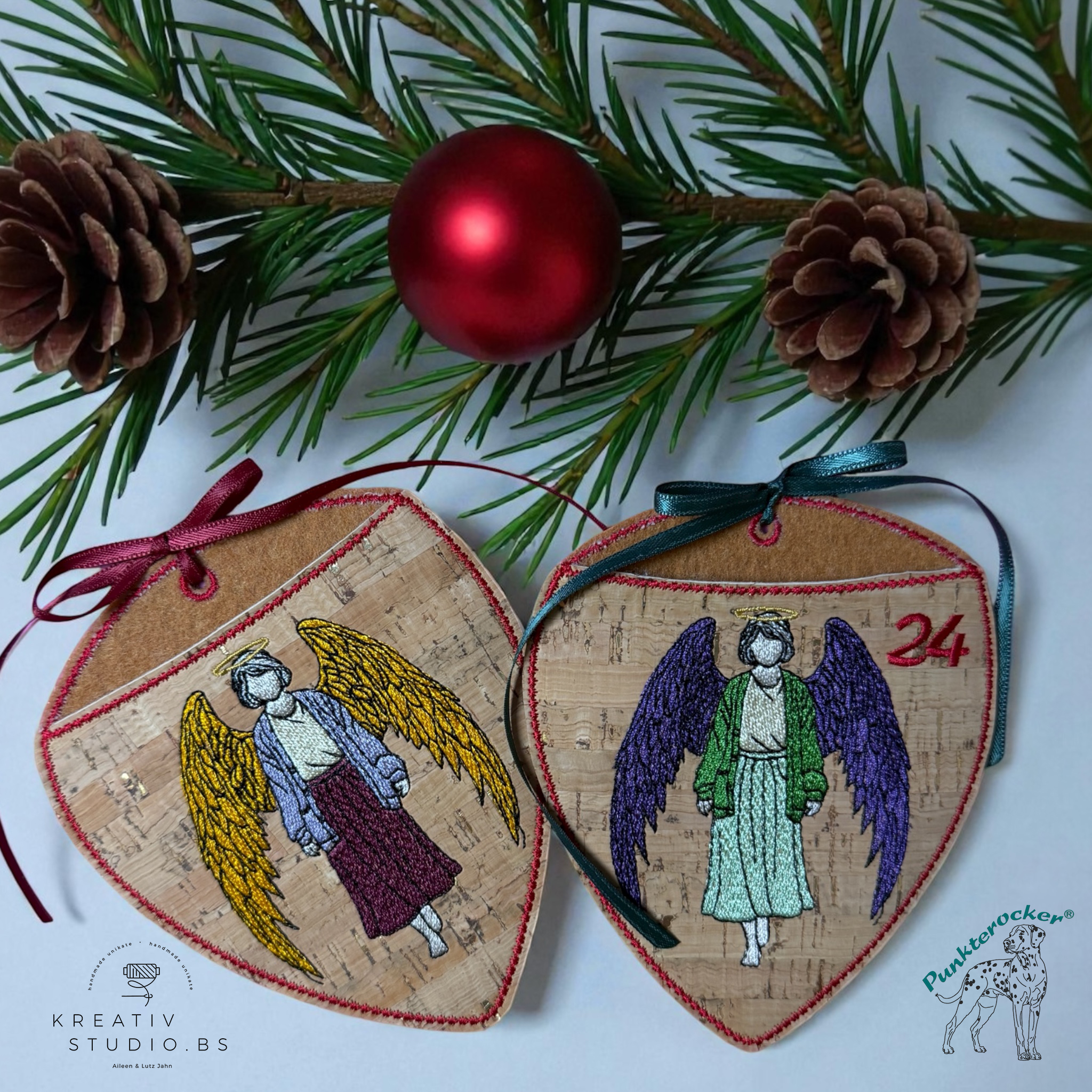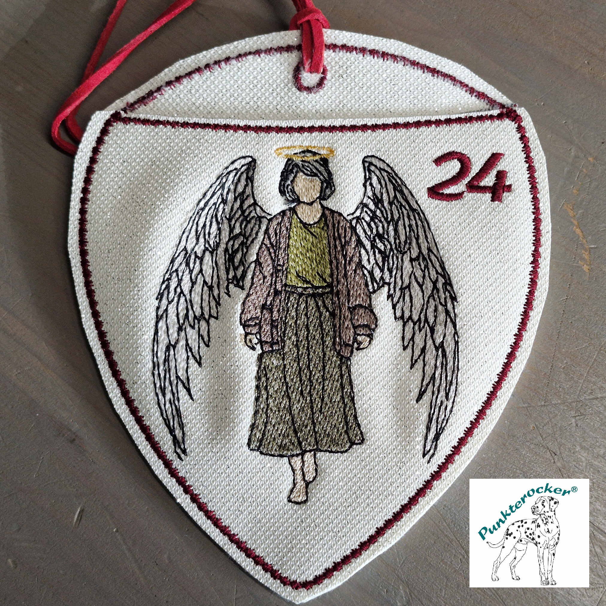 Flügel, Haare, Kleid, Haut, Zahl und Umrandung können bei jedem Engel-Beutel