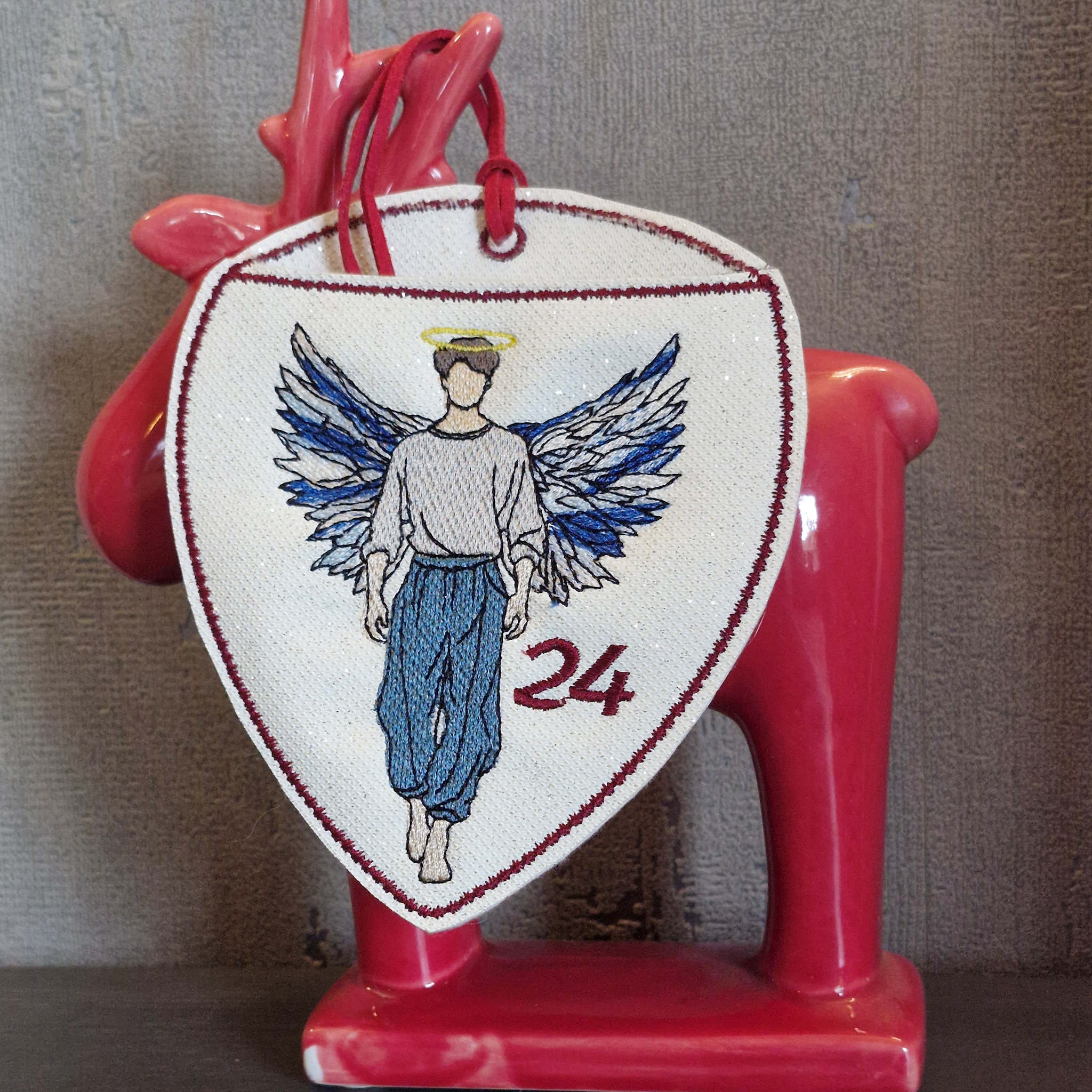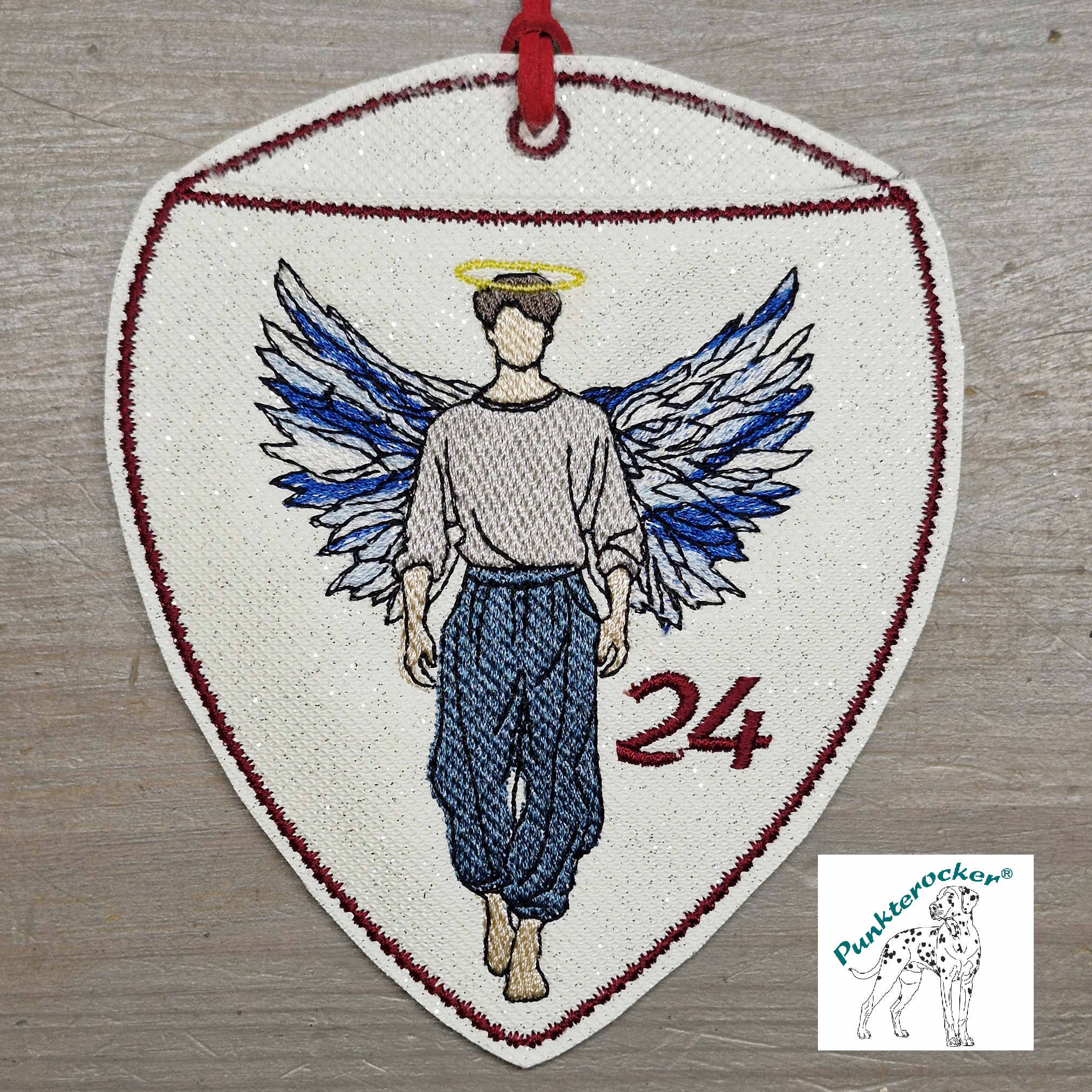 Flügel, Haare, Kleid, Haut, Zahl und Umrandung können bei jedem Engel-Beutel