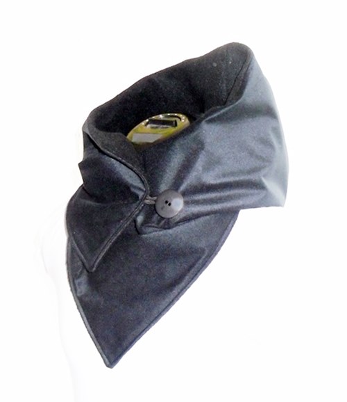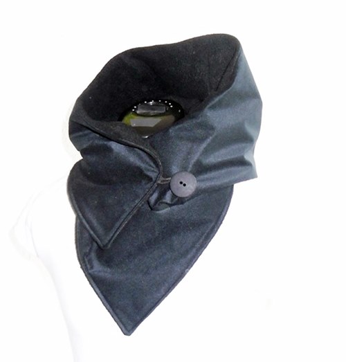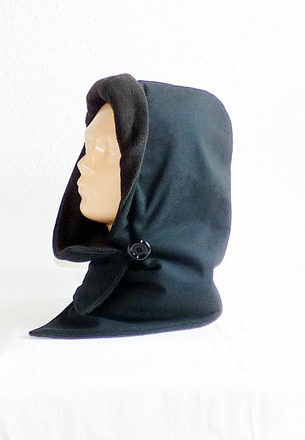 Der Kapuzenschal besteht aus einem einem schwarzen weichen Softshell (Comfort Flanell - G.R.-Tex). Innen ist er mit weichen schwarzen Fleece gefüttert.