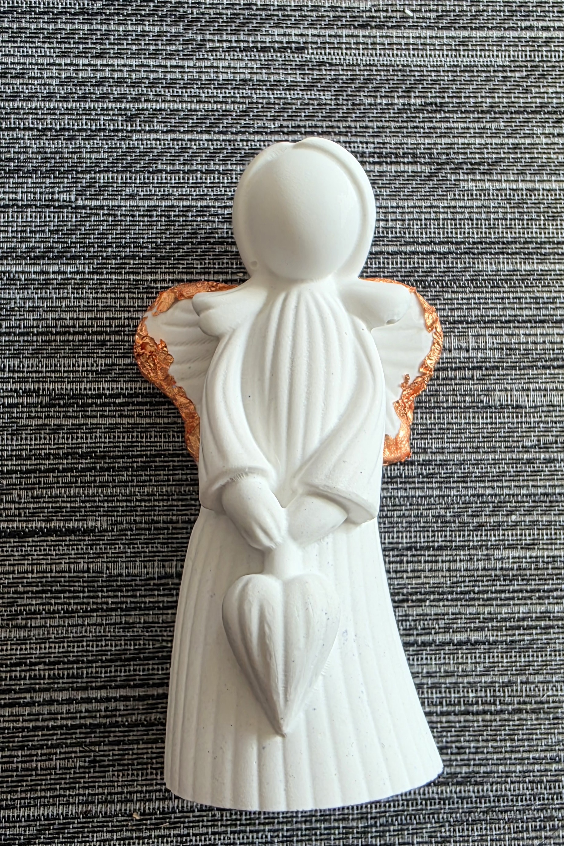 Engel aus Giesskeramik, an den Flügeln mit Roségold veredelt.