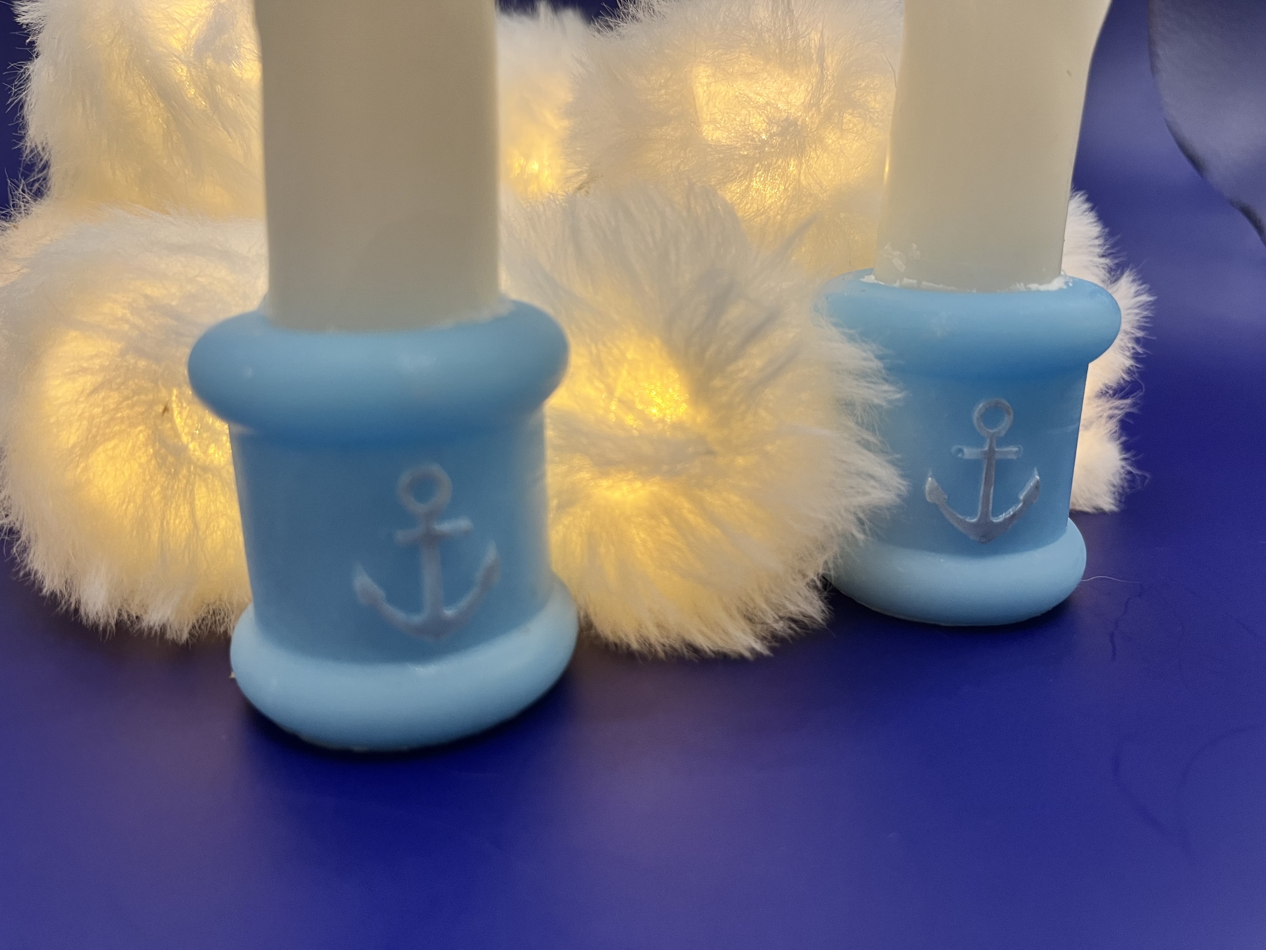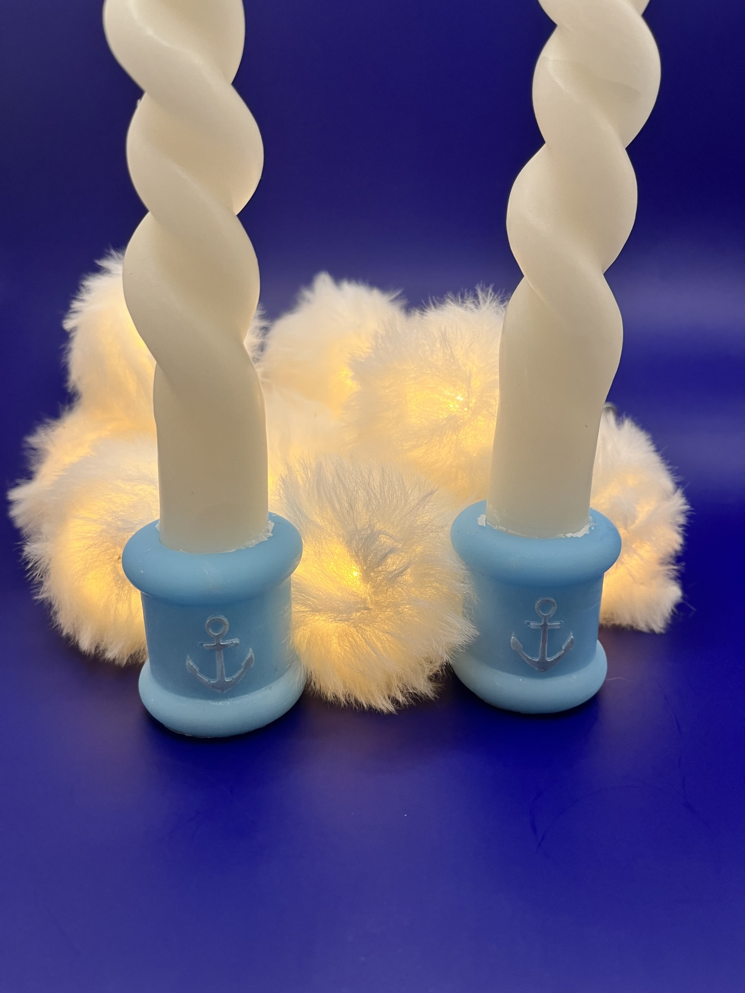 Handgefertigtes Kerzenhalter-Set „Meerträume“ – Hellblau mit Anker