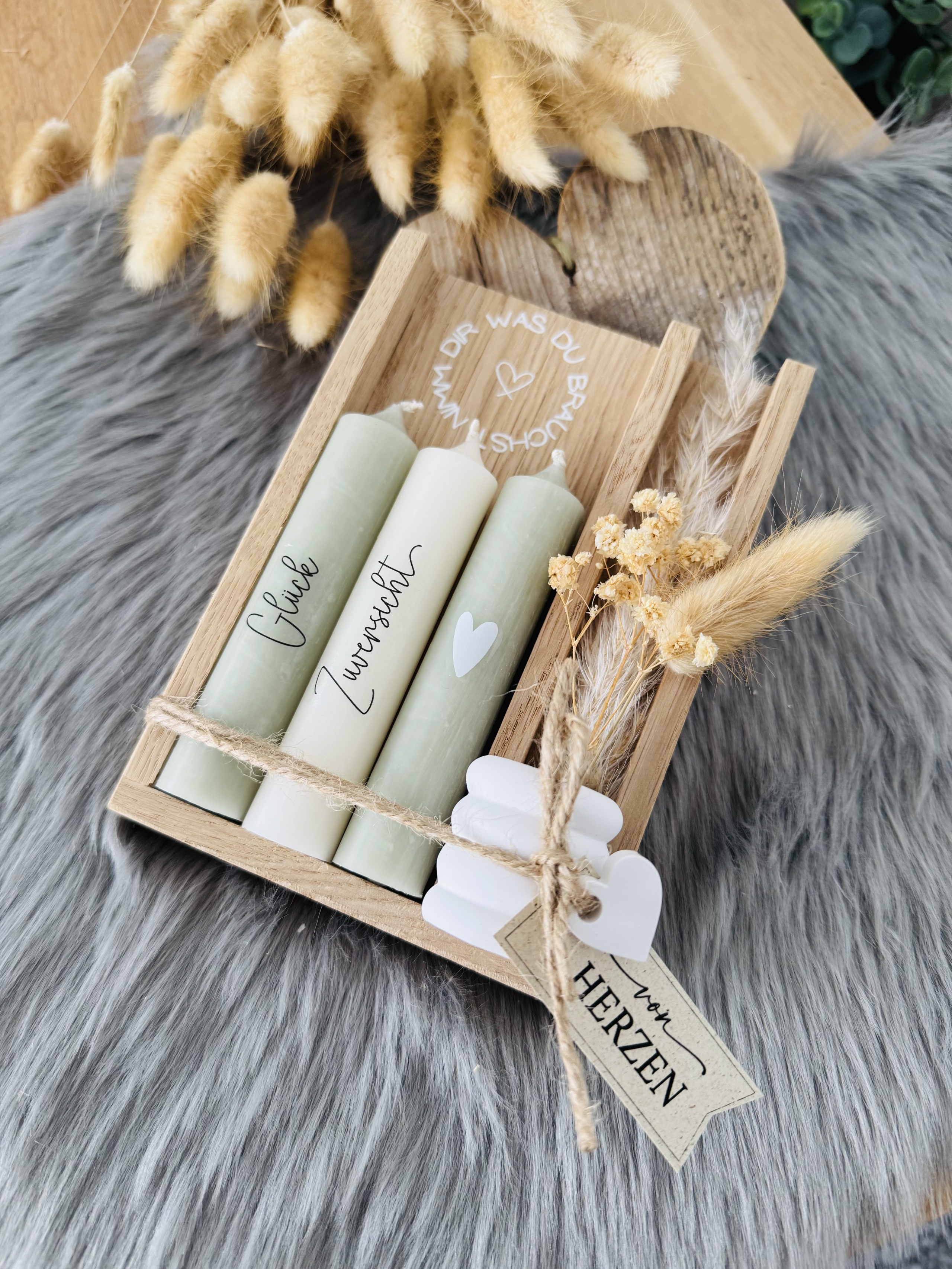 Wunderschönes Kerzenset mit Herz mit guten Wünschen zur Genesung, als Mutmacher und Trostspender für einen lieben Menschen