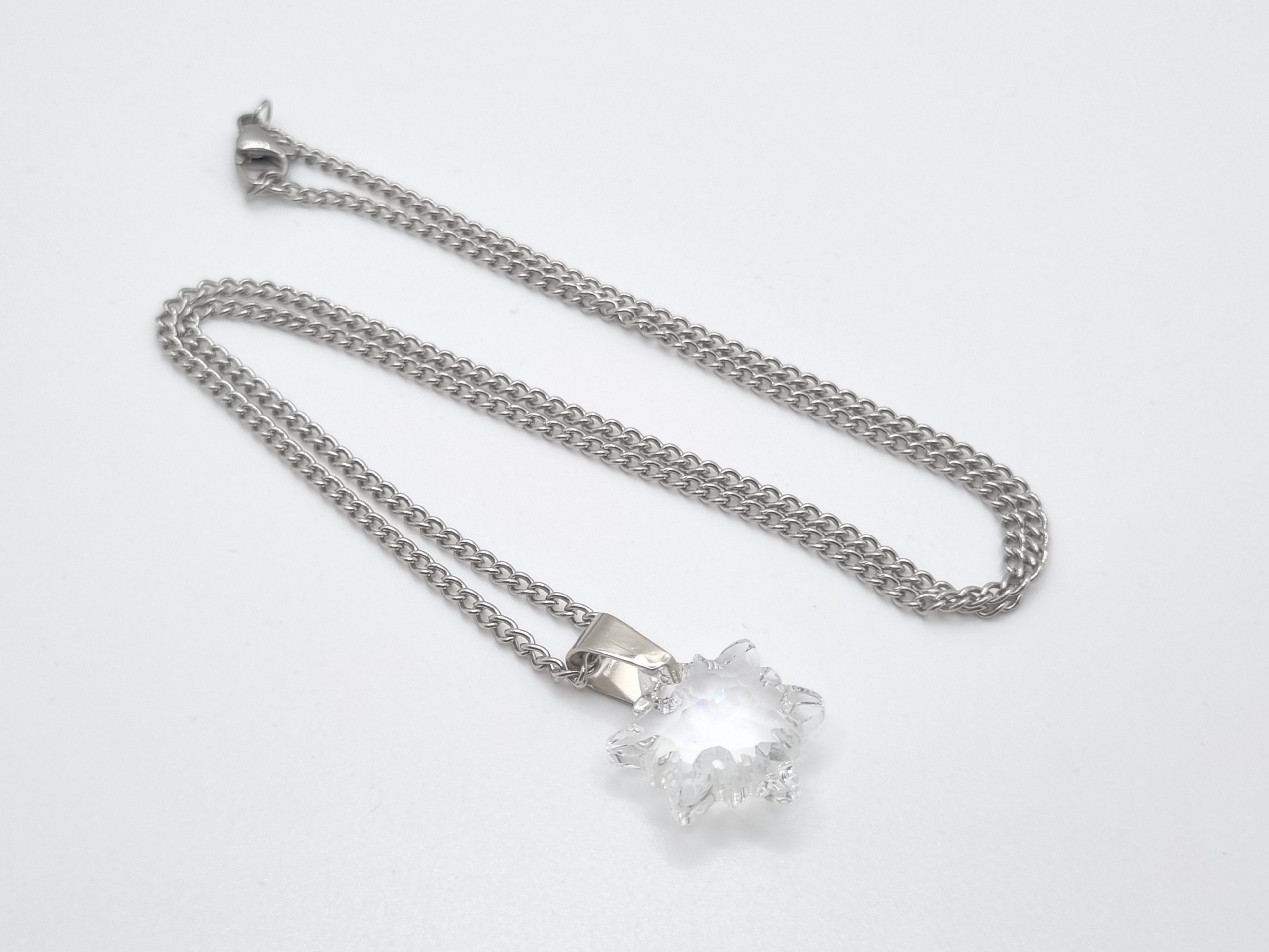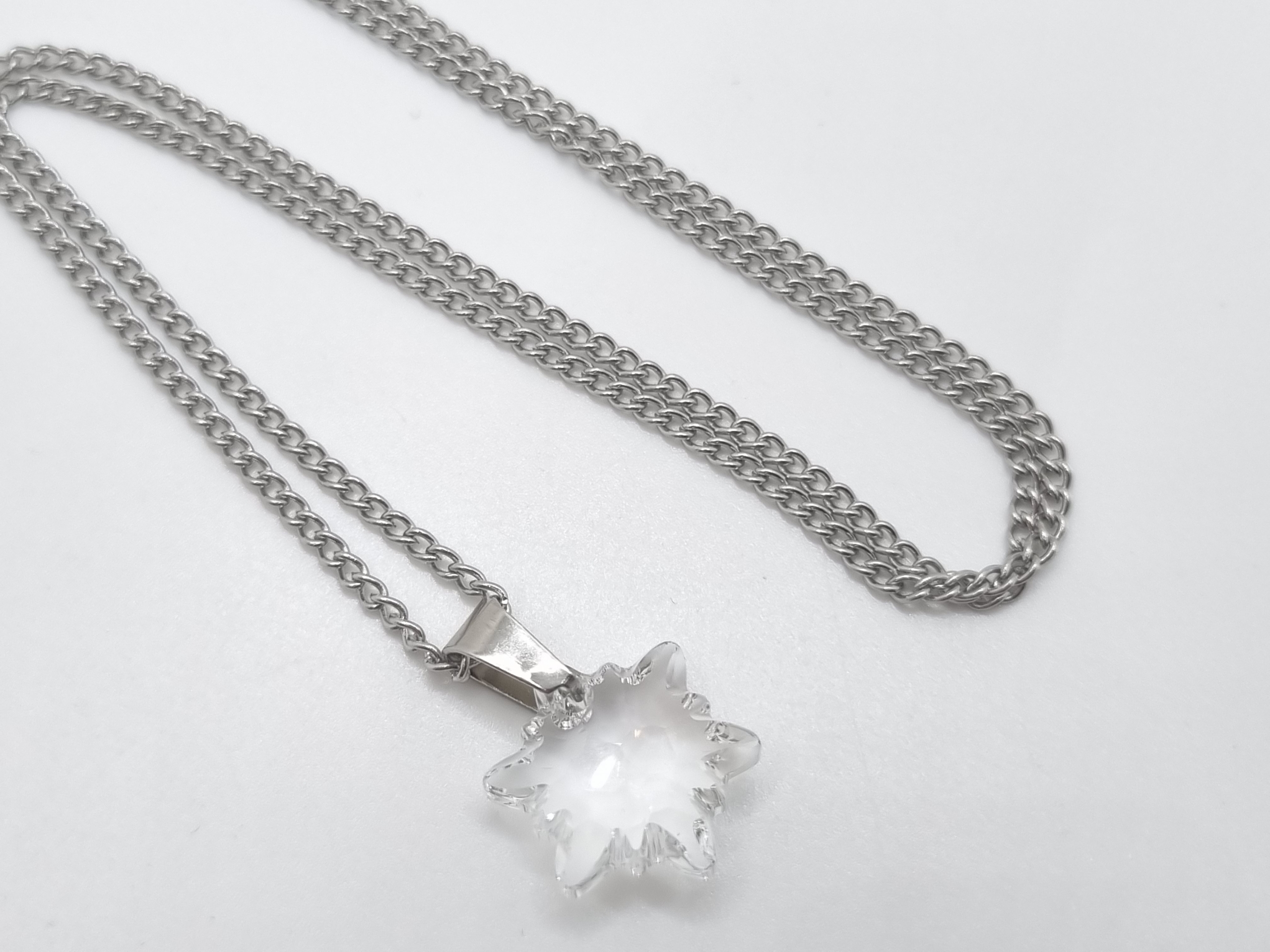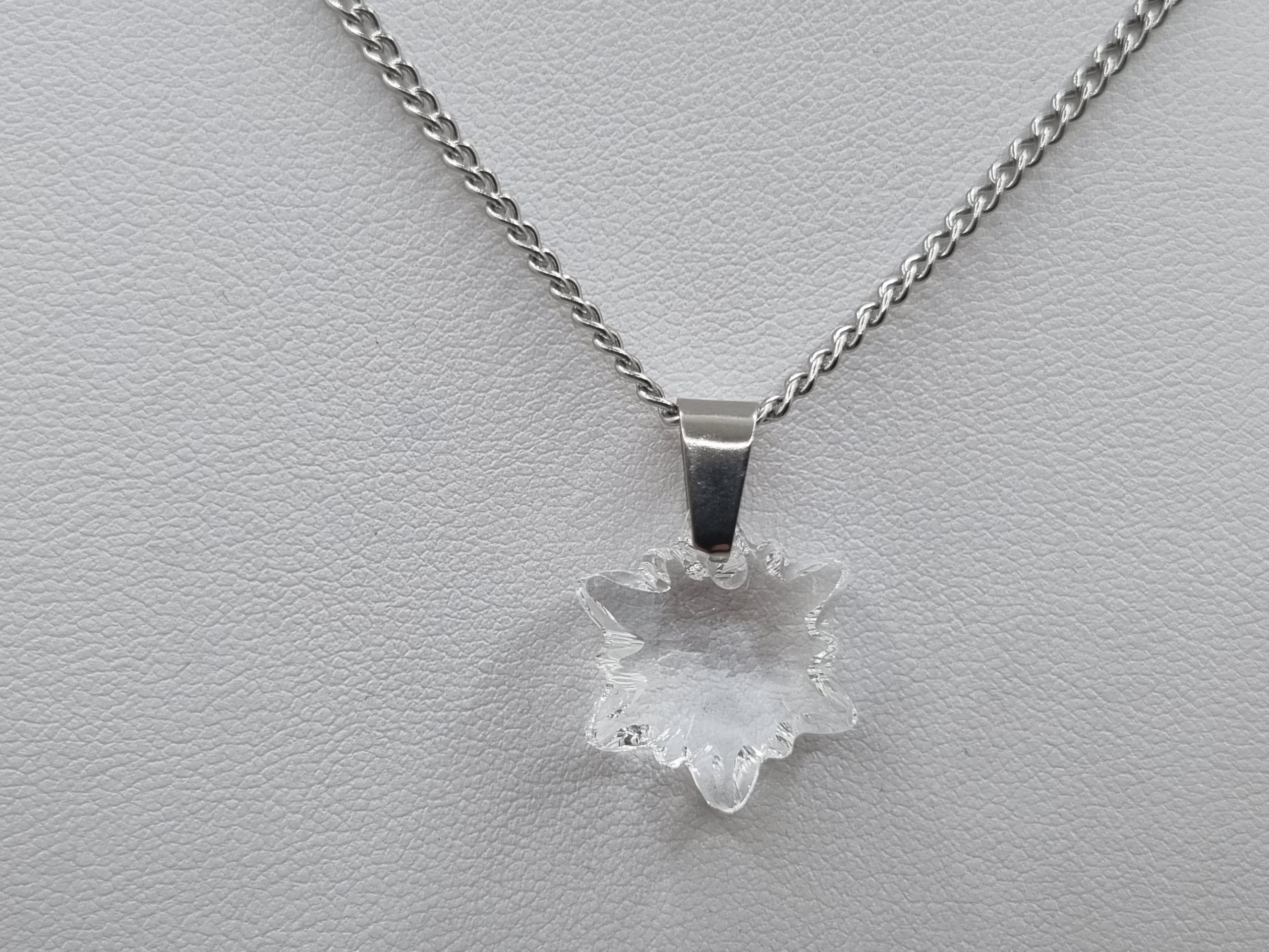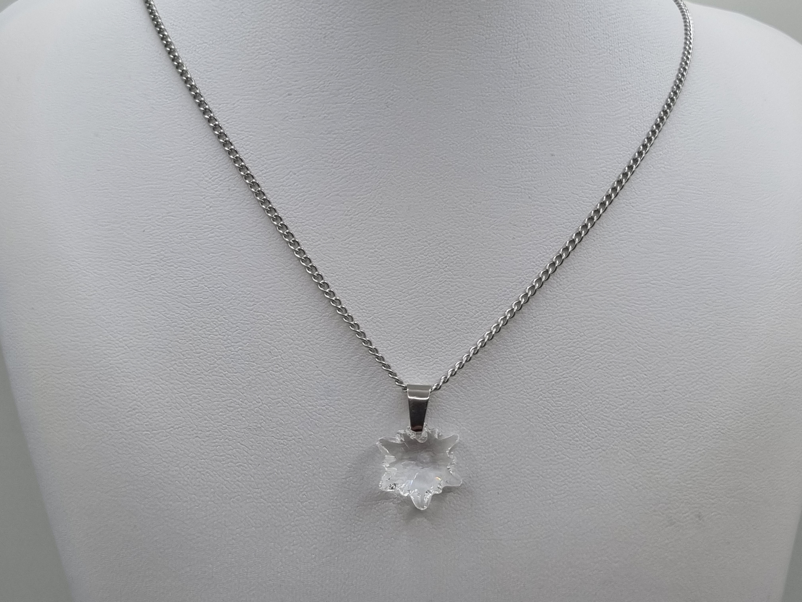 Edelstahl Glieder kette verziert mit einem Edelweiss Kristall Anhänger in der Farbe Crystal.