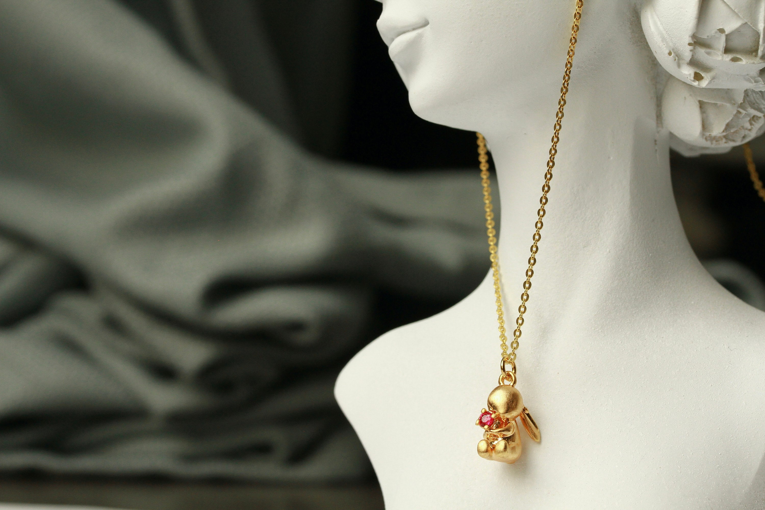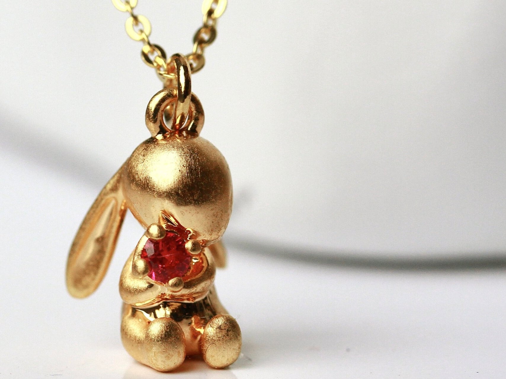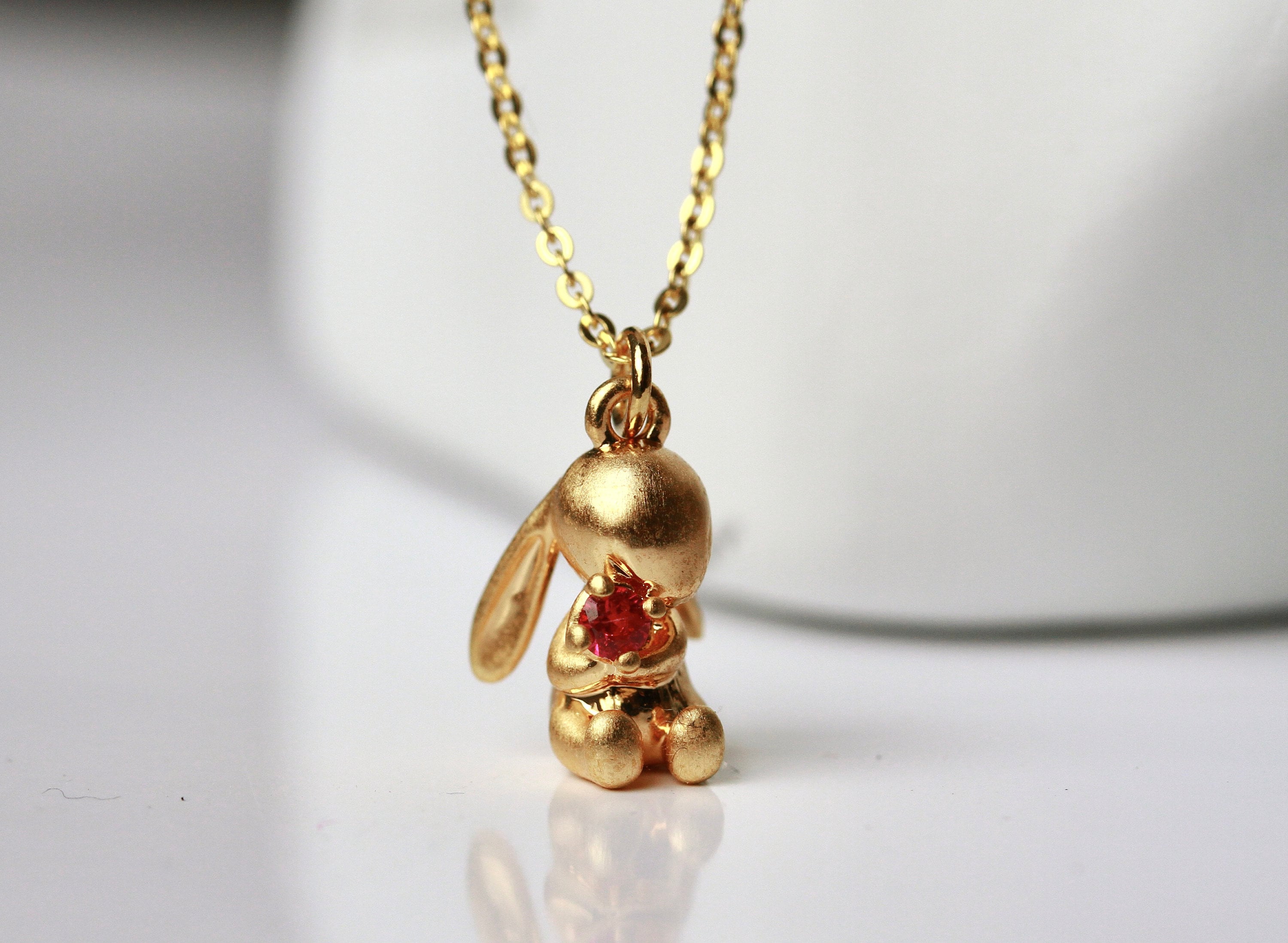 An einer vergoldeten Sterling Silber Kette baumelt ein kleiner echt vergoldeter Hase aus Messing. In den Händen hält der niedliche Hase einen pinkfarbenen Zirkonia Kristall - zum Verlieben schön. Der Kristall ist rund, wirkt durch die Einfassung aber ein bisschen wie ein Herz. Das perfekte Geschenk, nicht nur zu Ostern, für die Freundin, der Mutter, Schwester oder auch einfach, zum selber behalten.