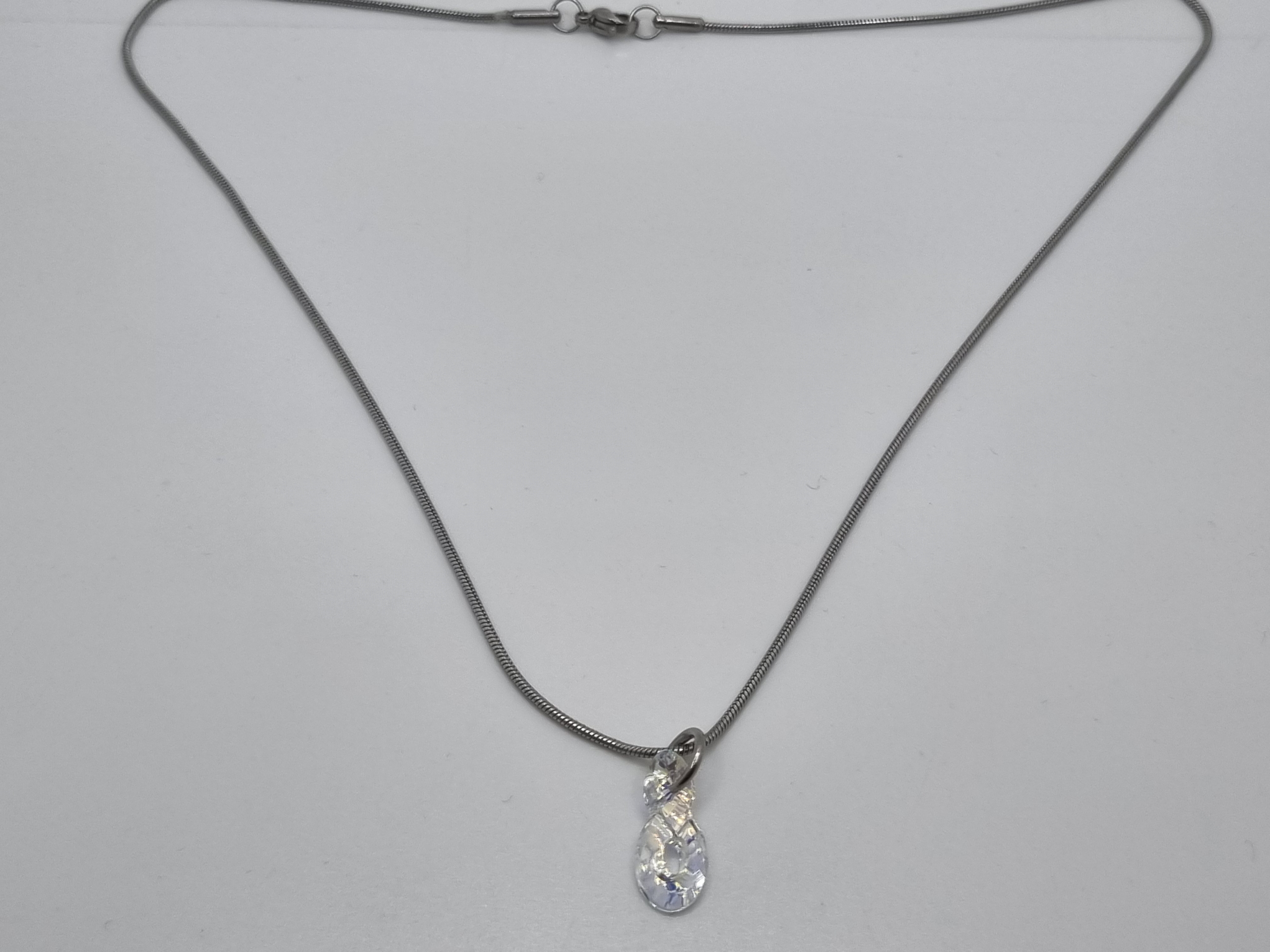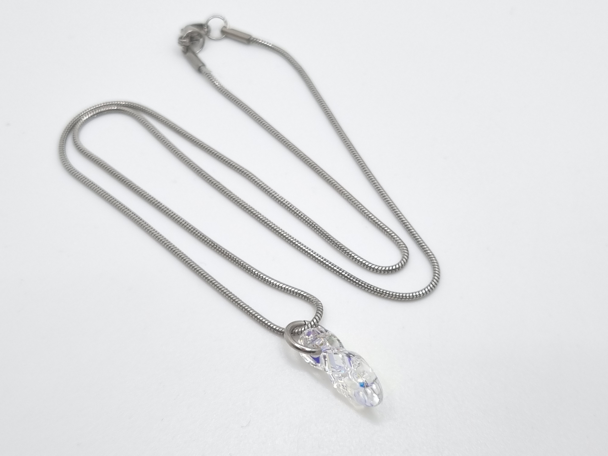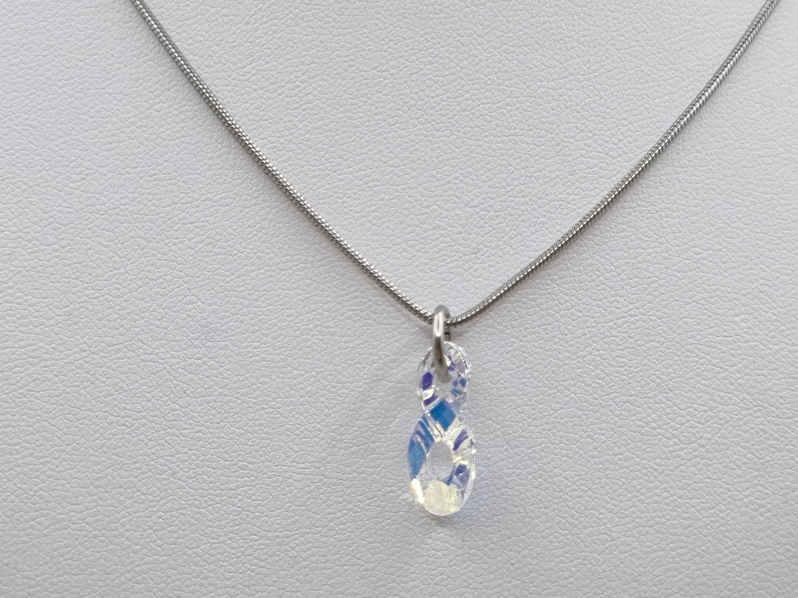 Edelstahl Schlangenkette verziert mit einem infinity Kristall Anhänger in der Farbe Crystal AB