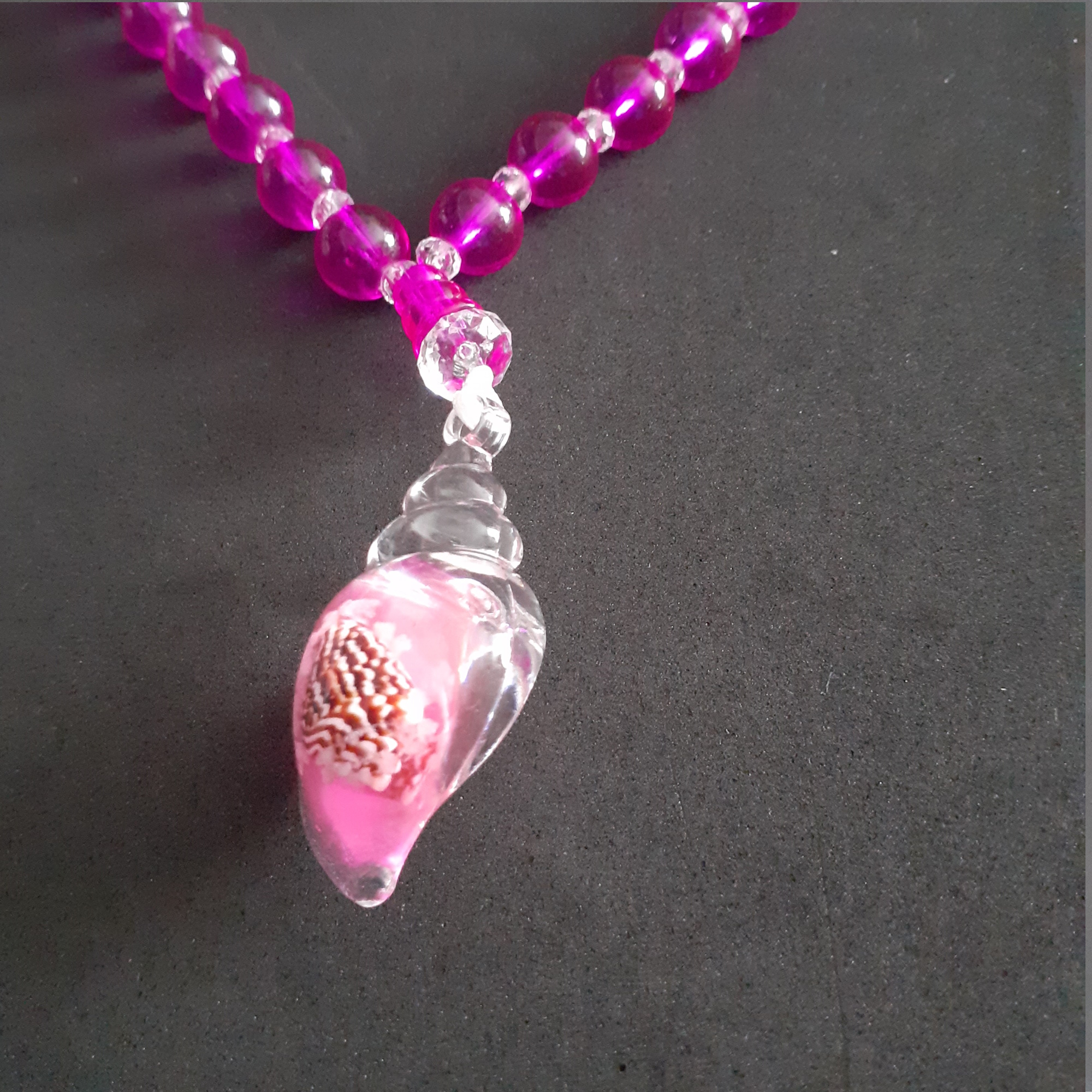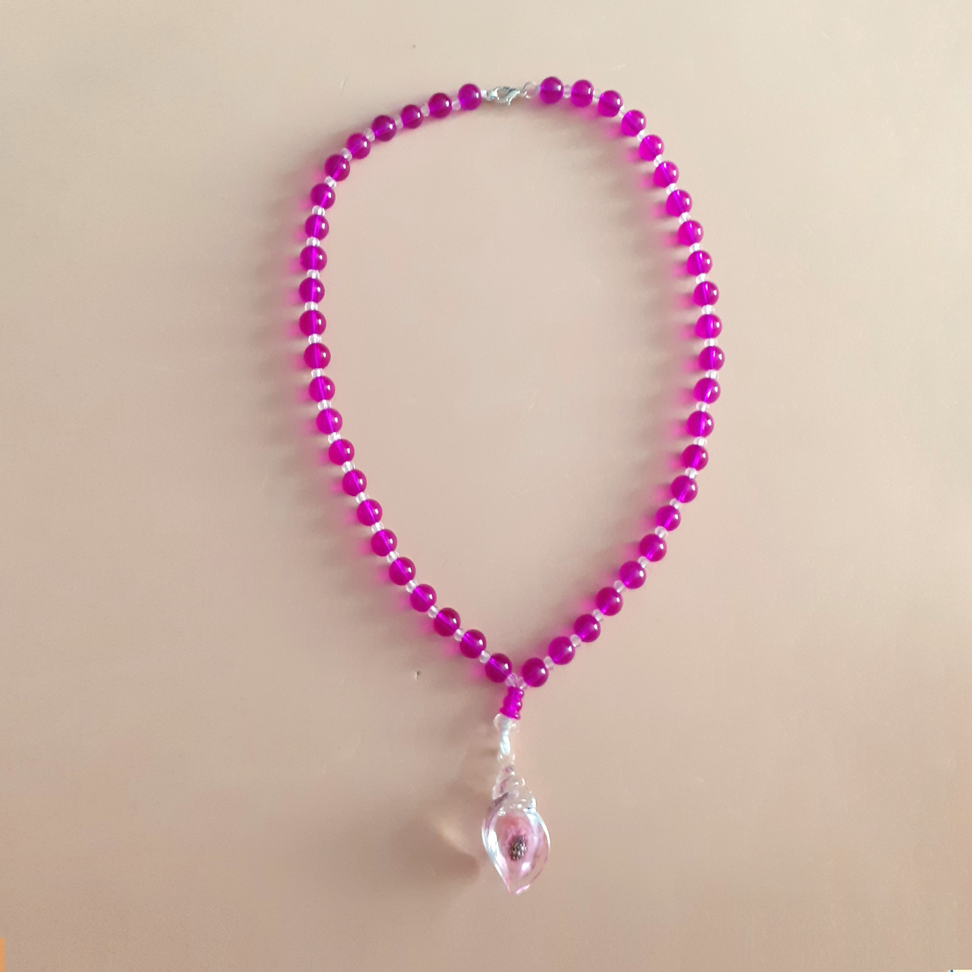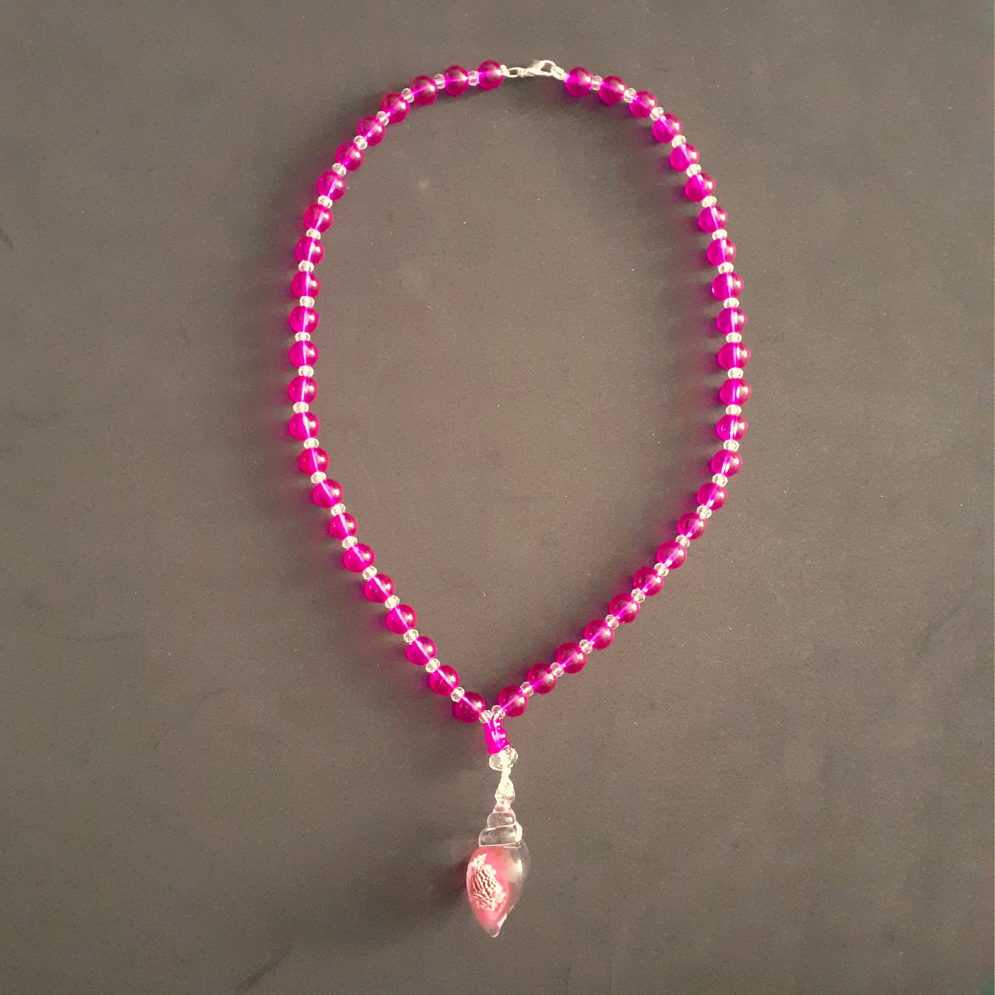 Hier seht Ihr ein kräftiges Pink. Zwischen den Glas-Perlen befinden sich kleine trasparente Mini-Perlen.