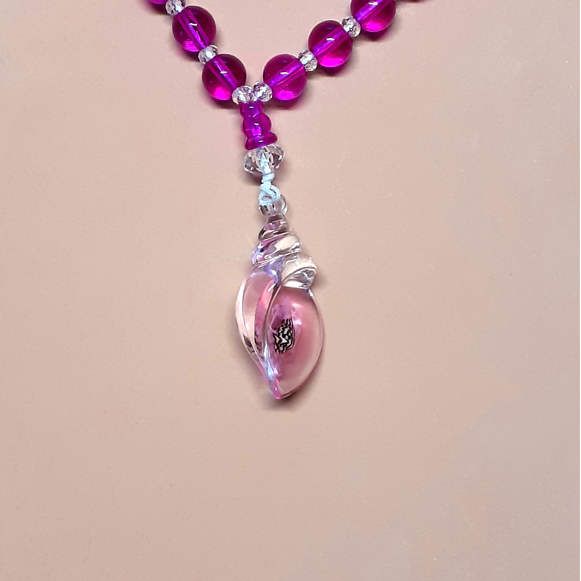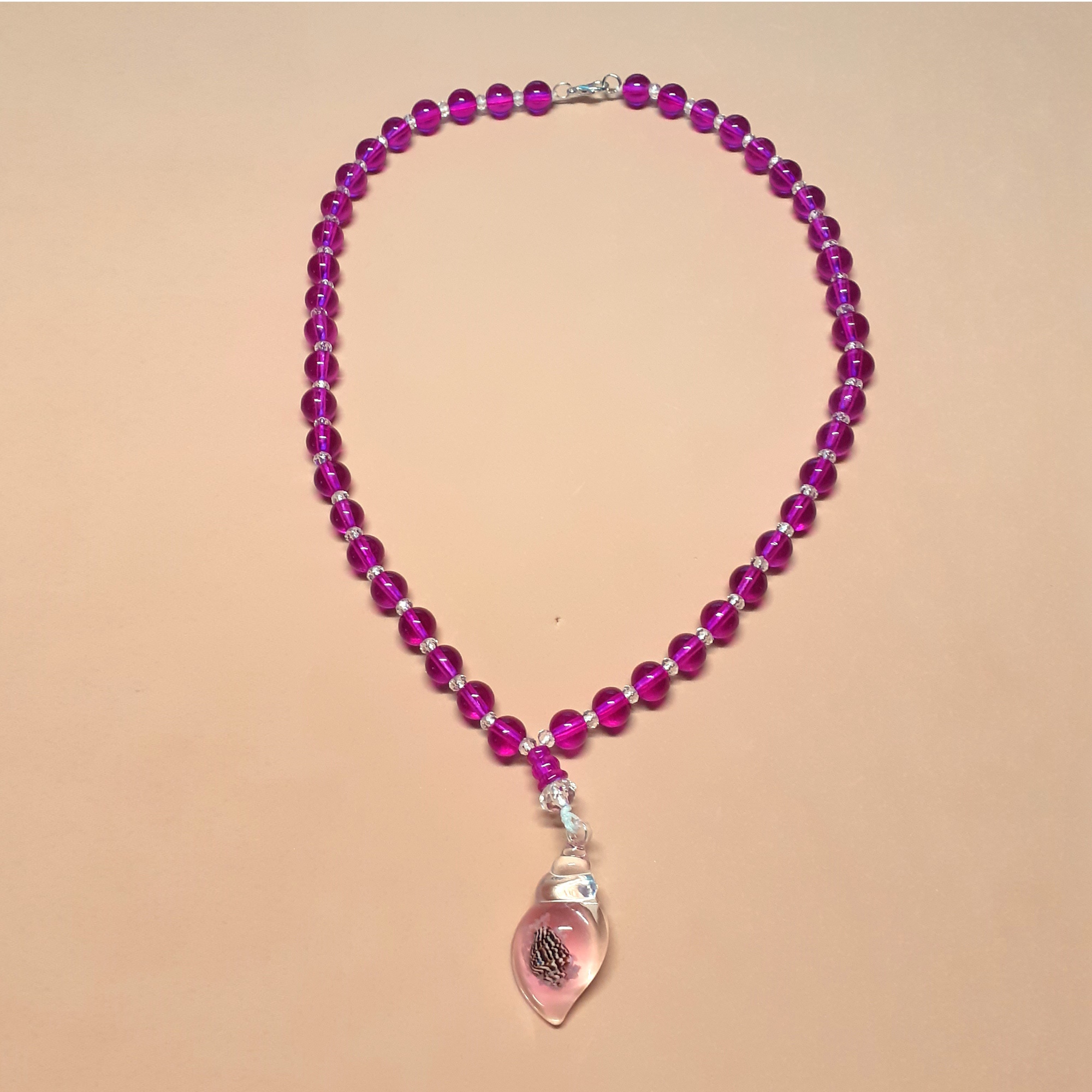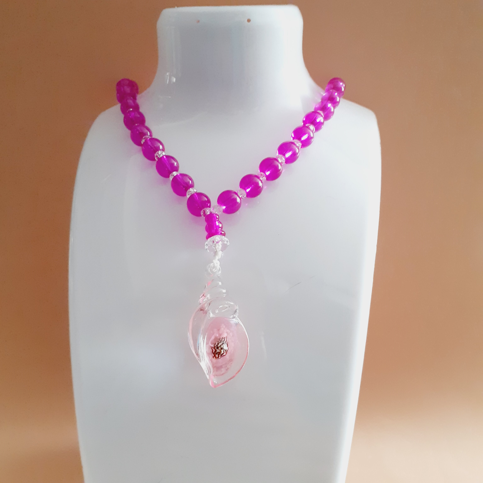 Hier seht Ihr ein kräftiges Pink. Zwischen den Glas-Perlen befinden sich kleine trasparente Mini-Perlen.