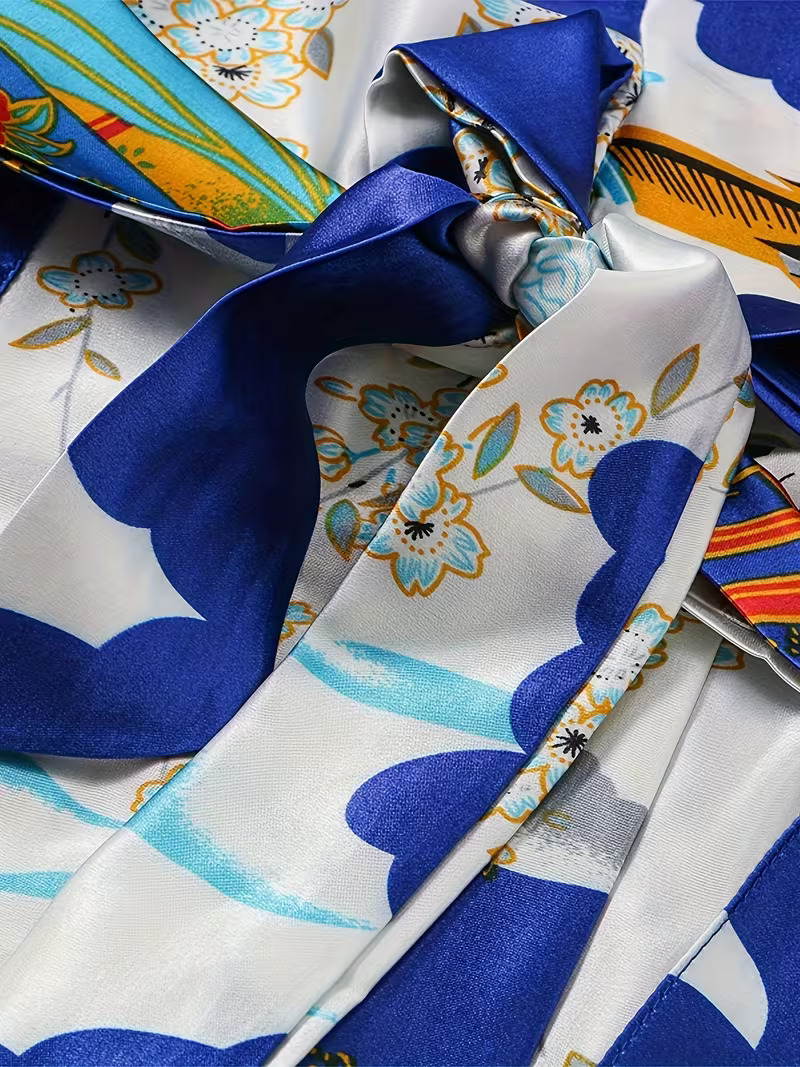 Dieser neue Damen-Kimono - Handarbeit - mit klassischem japanischem Motiv, königsblau, ist bodenlang und neu.