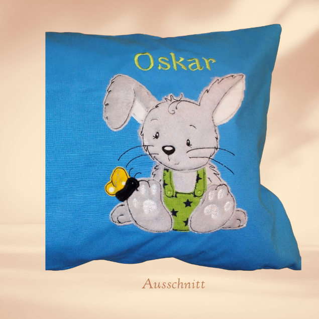 Das Kissen kann mit einem Namen des Kindes personalisiert werden. Bitte geben Sie im Personalisierungsfeld den Namen des Kindes ein (Max. 10 Zeichen). Fehlt das Personalisierungsfeld, dann bitte im Freitextfeld der Bestellabwicklung den Wunschnamen vermerken.