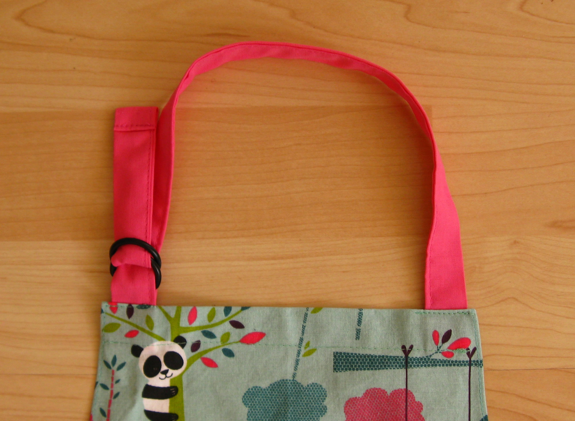 Die Schürze hat einen verstellbaren Halsgurt.