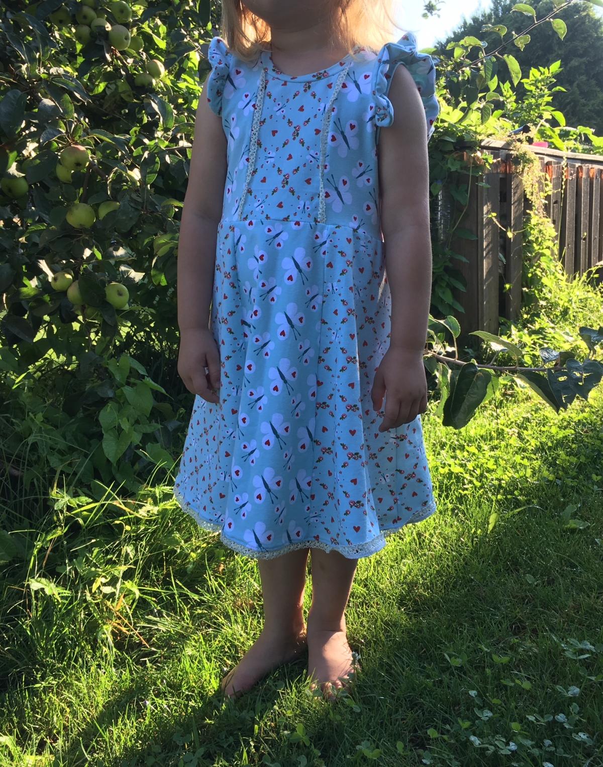 Die Spitzenborte hübscht das Kleid noch zusätzlich auf. Du hättest gerne lange Ärmel? Kein Problem, schreib mich an!