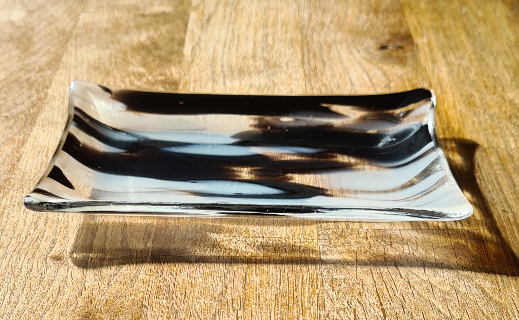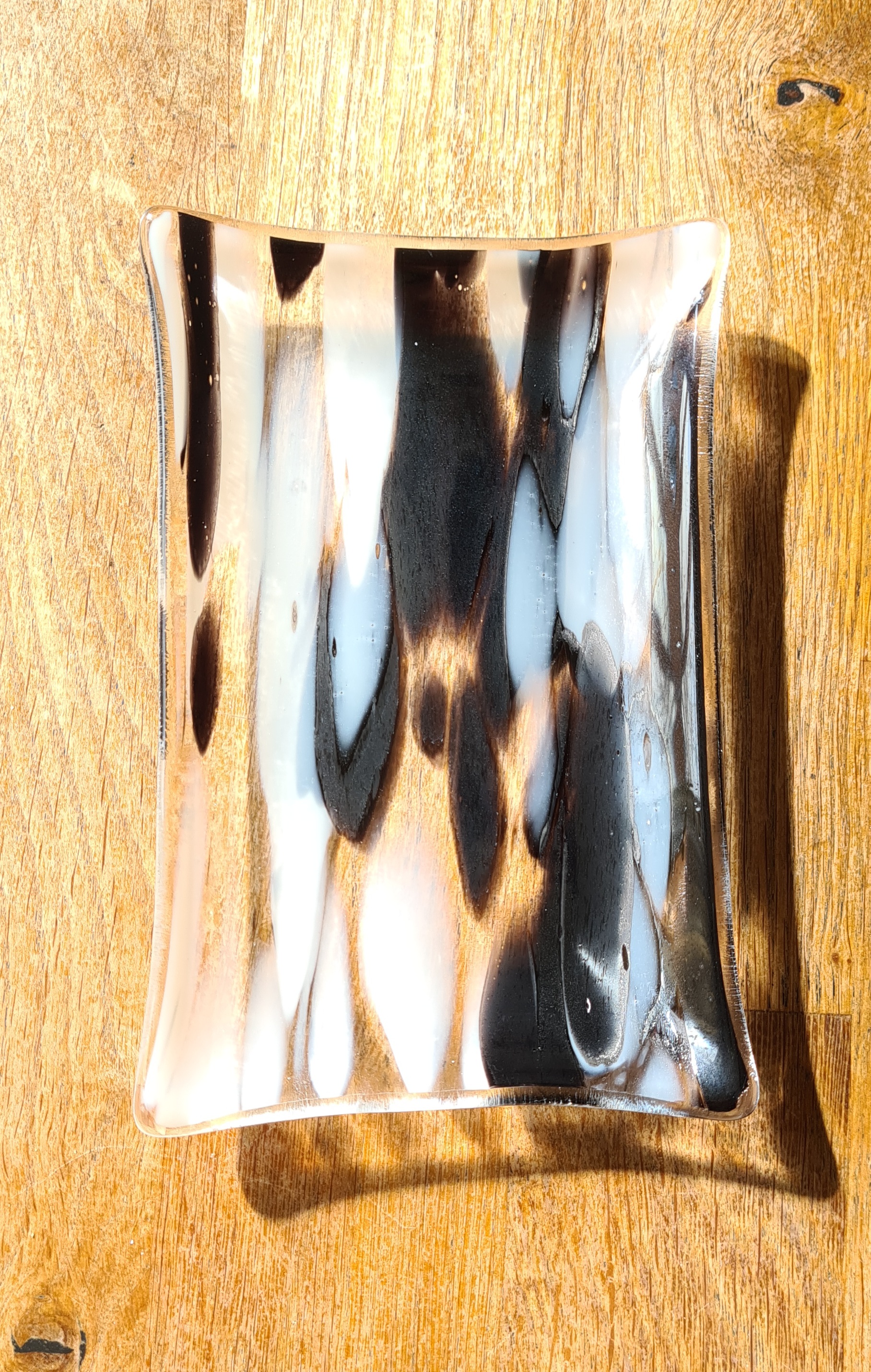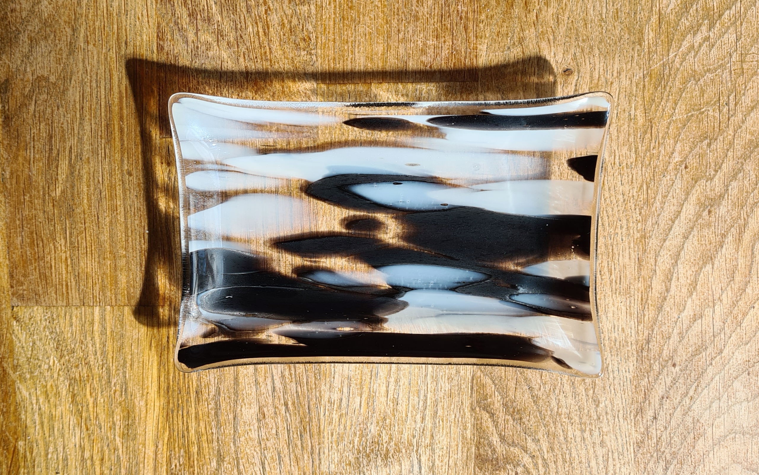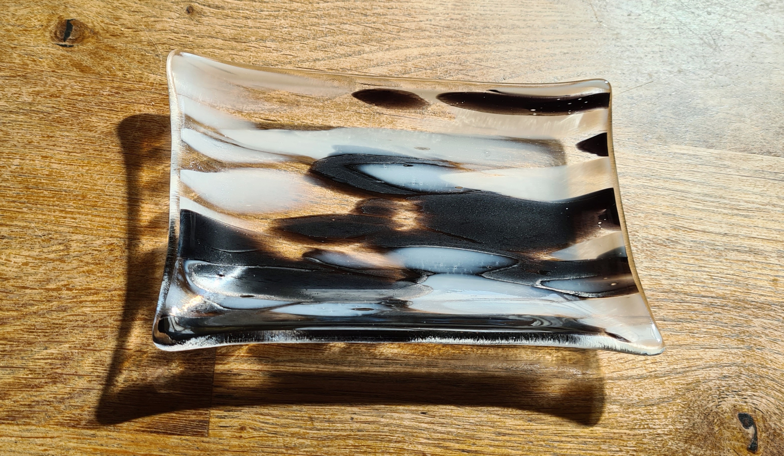 Eine wunderschöne kleine Schale aus besonderem Glas, schwarz-weiß-klar gemustert.