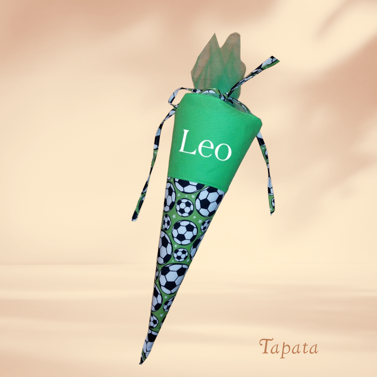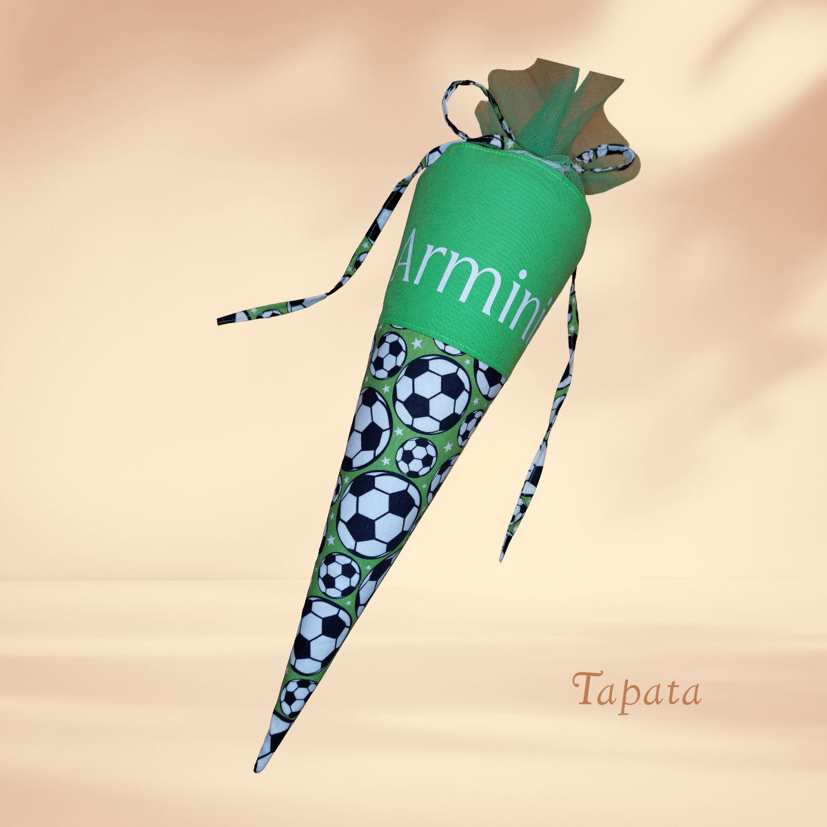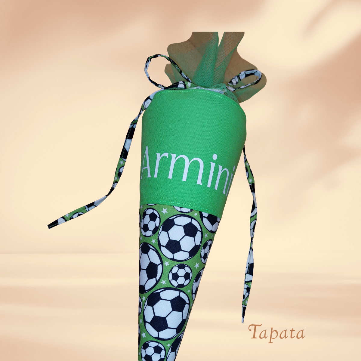 grün mit Fußball Motiven. Name aufgebügelt mit Flexfolie (Plottertechnik), Tüll: grün