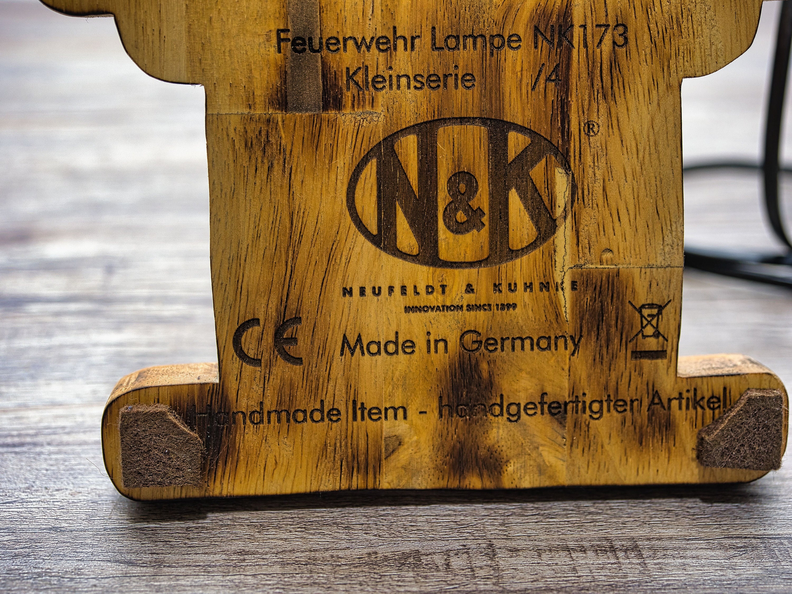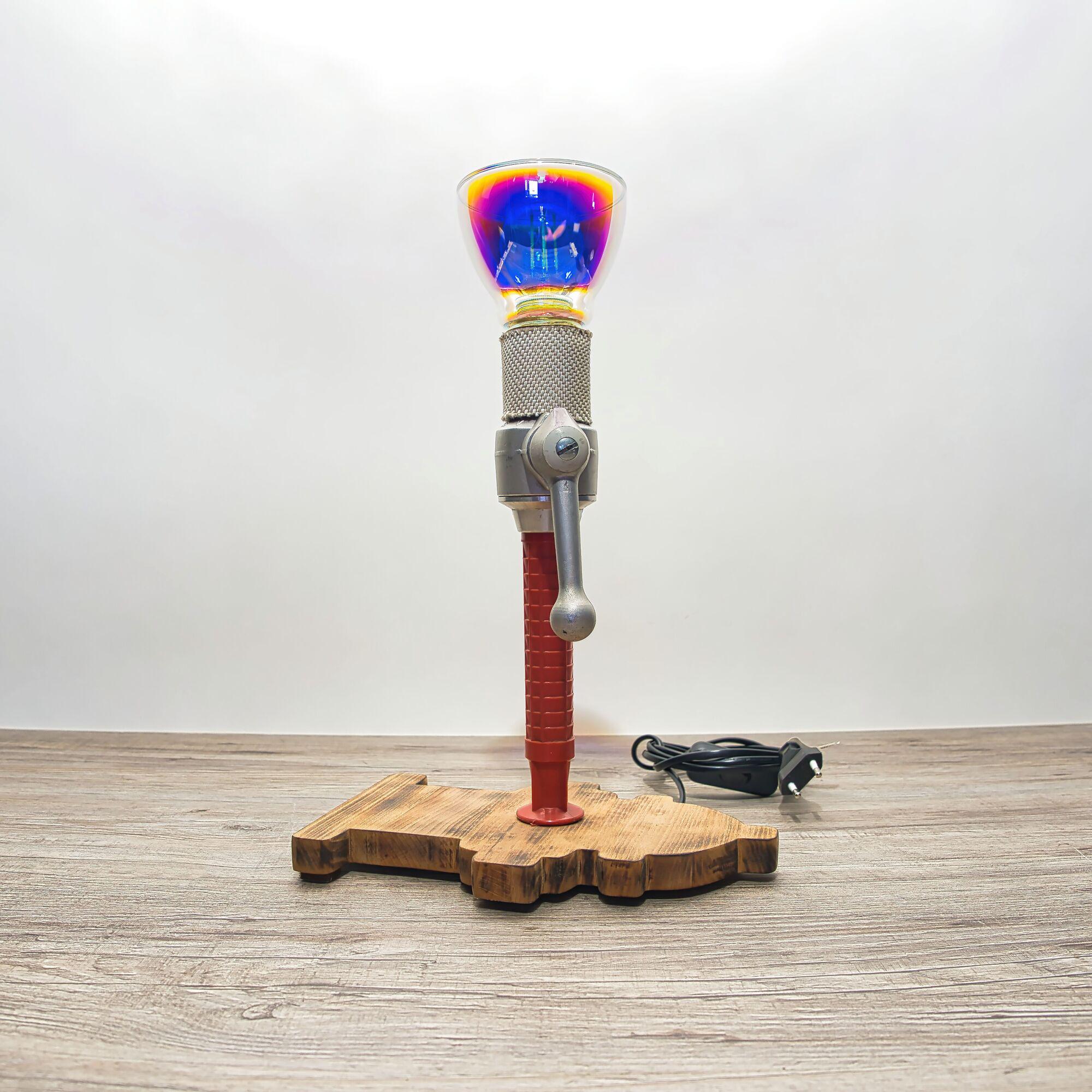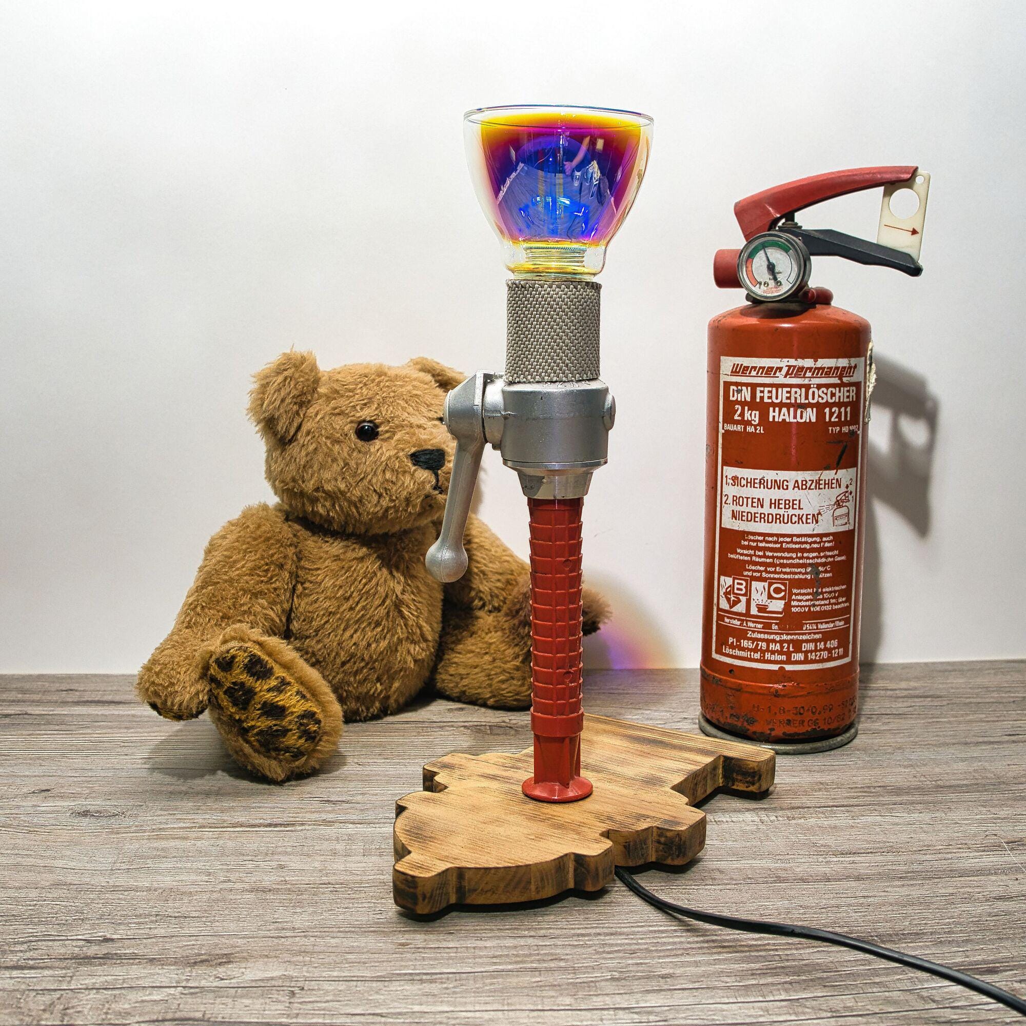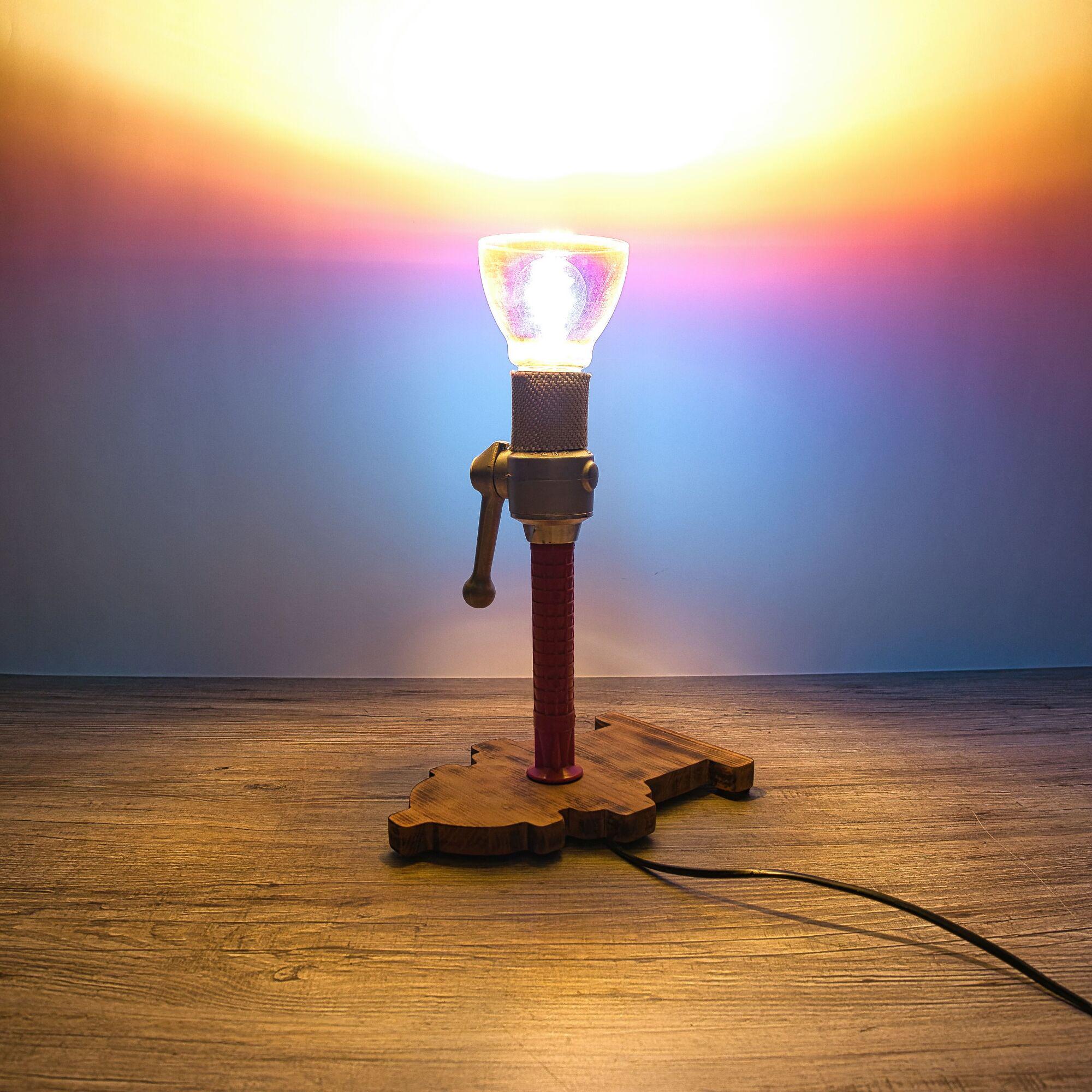 Diese Tischlampe vereint die robuste Ästhetik einer ausrangierten Feuerwehrspritze mit modernem Design und einem warmen, einladenden Licht. Der besondere Clou: Die Basis der Lampe besteht aus hochwertigem Holz, das in Form eines Hydranten gestaltet ist und so die Thematik perfekt aufgreift.