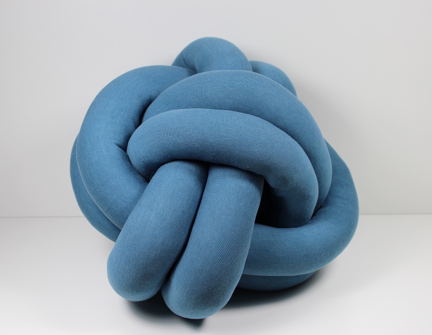 Das Kissen ist aus Baumwolljersey ÖkoTexStandard100 in rauchblau gefertigt und mit allergikergeeigneter Polyersterhohlfaser gefüllt.
