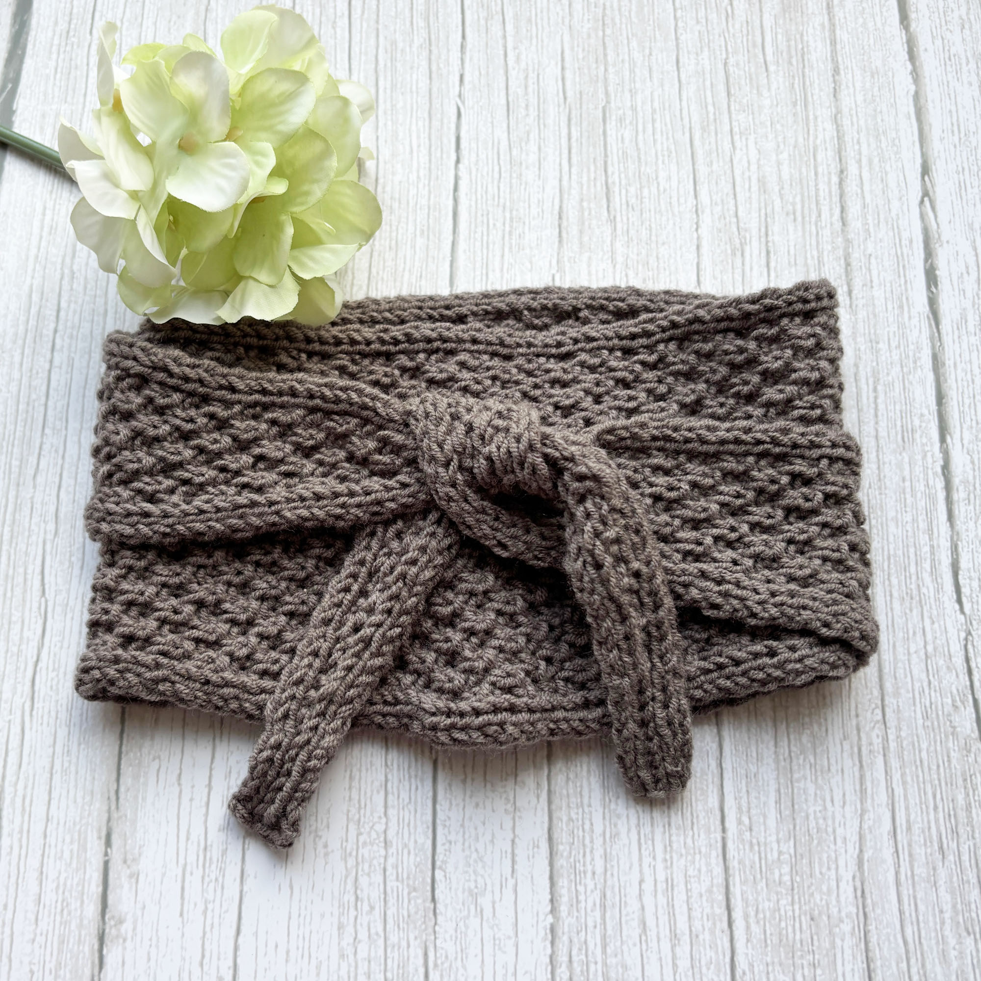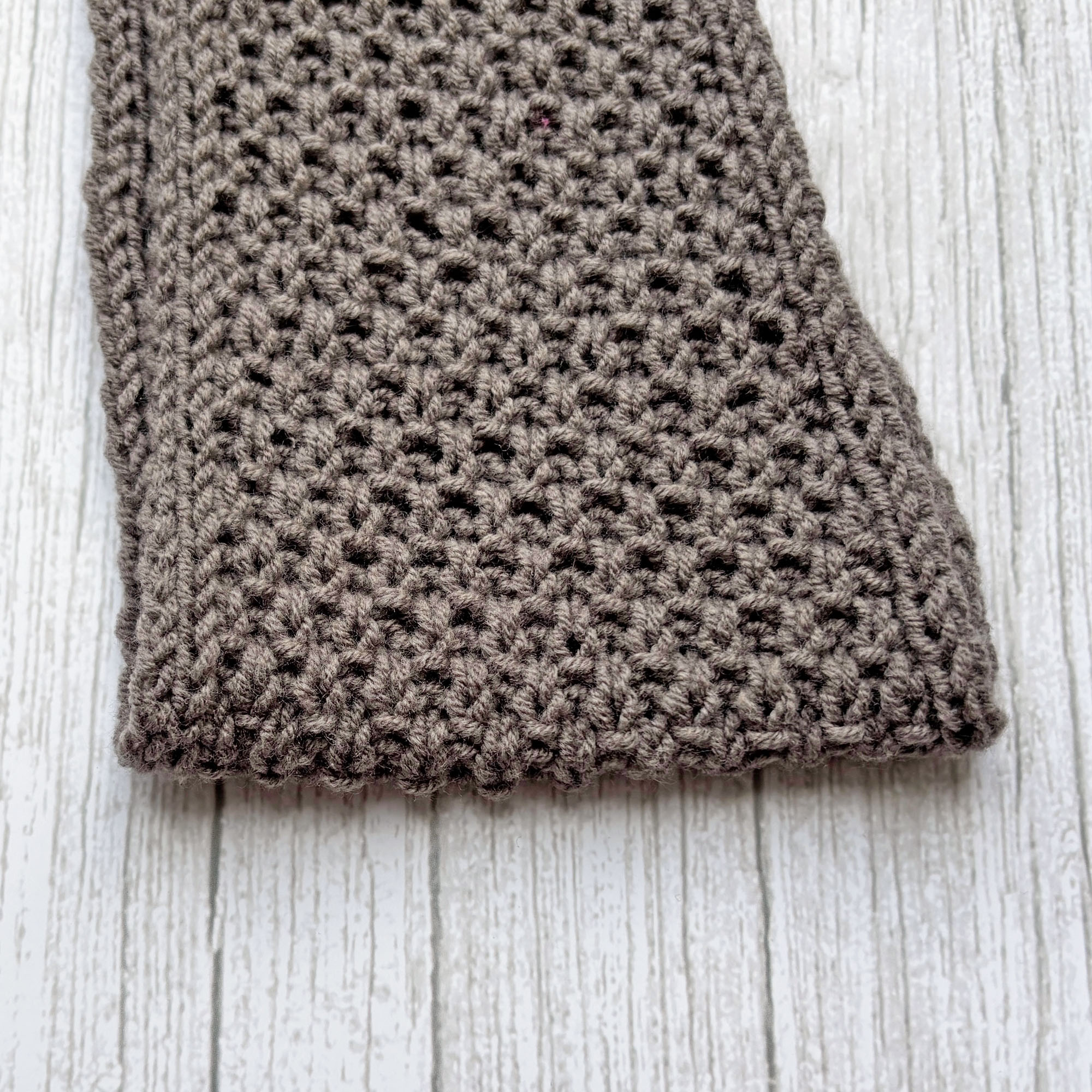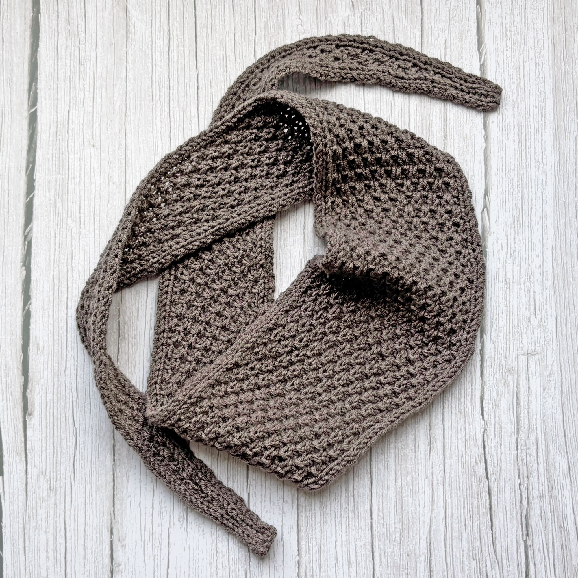 Halsnahes Stricktuch in Graubraun aus federleichtem Garn.