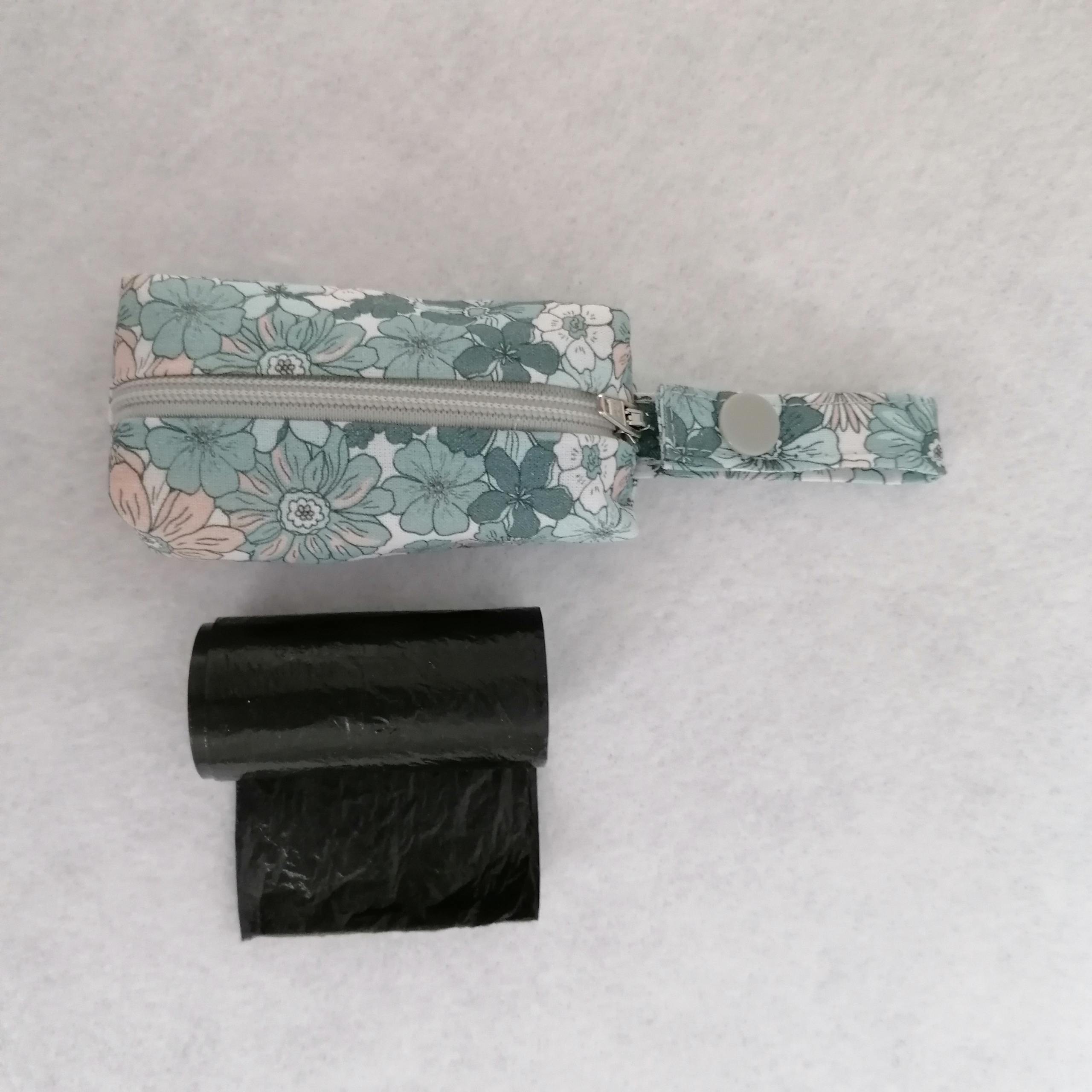 Doppellagig aus Baumwollstoffen genäht (vorgewaschen), bietet dir diese Tasche Langlebigkeit und ein angenehmes Gefühl. Dank der praktischen Schlaufe mit Druckknopf kannst du sie flexibel an der Leine, Gürtelschlaufe oder am Snackbeutel befestigen.