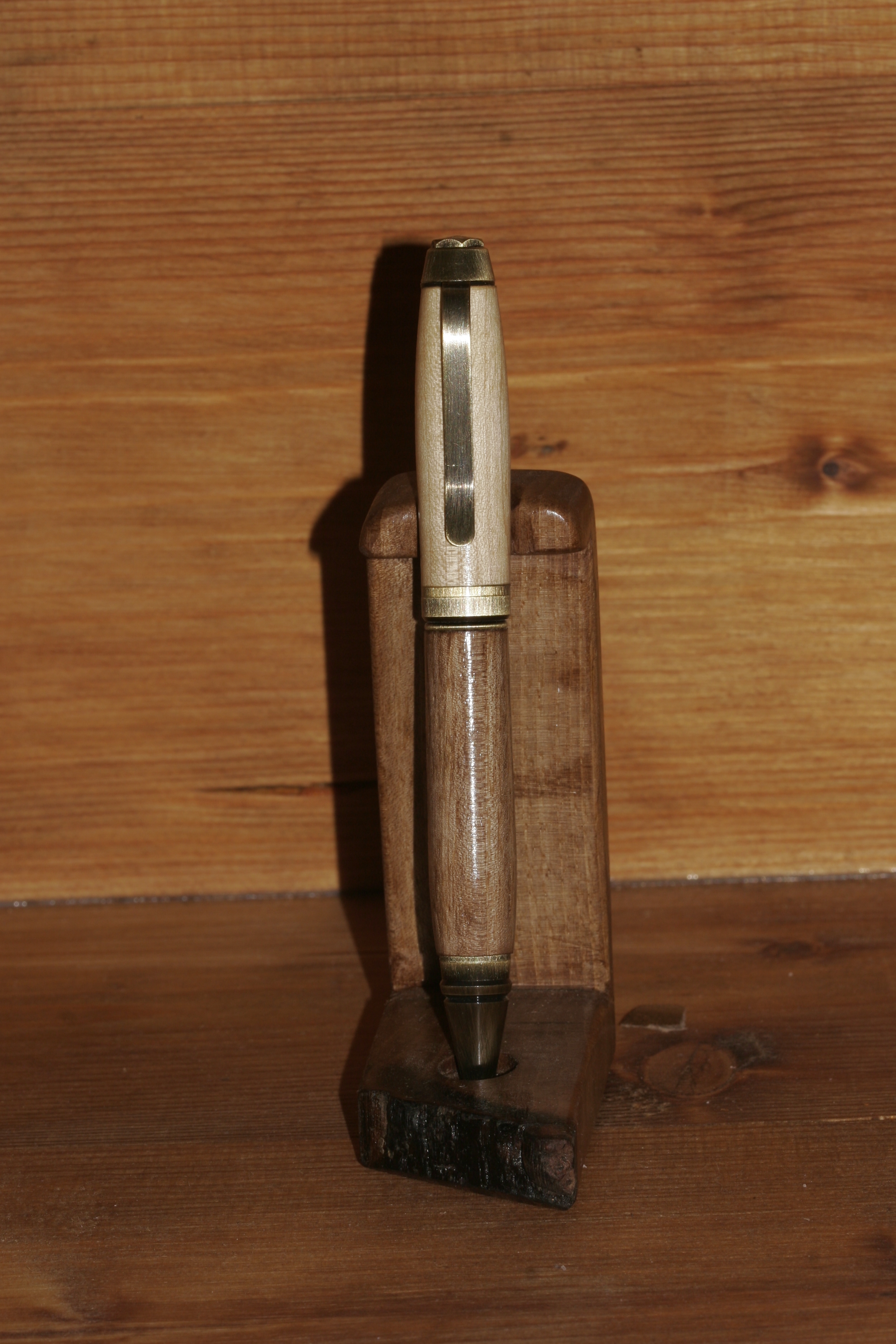 Handgedrechselter Kugelschreiber aus Ahorn/Eiche.