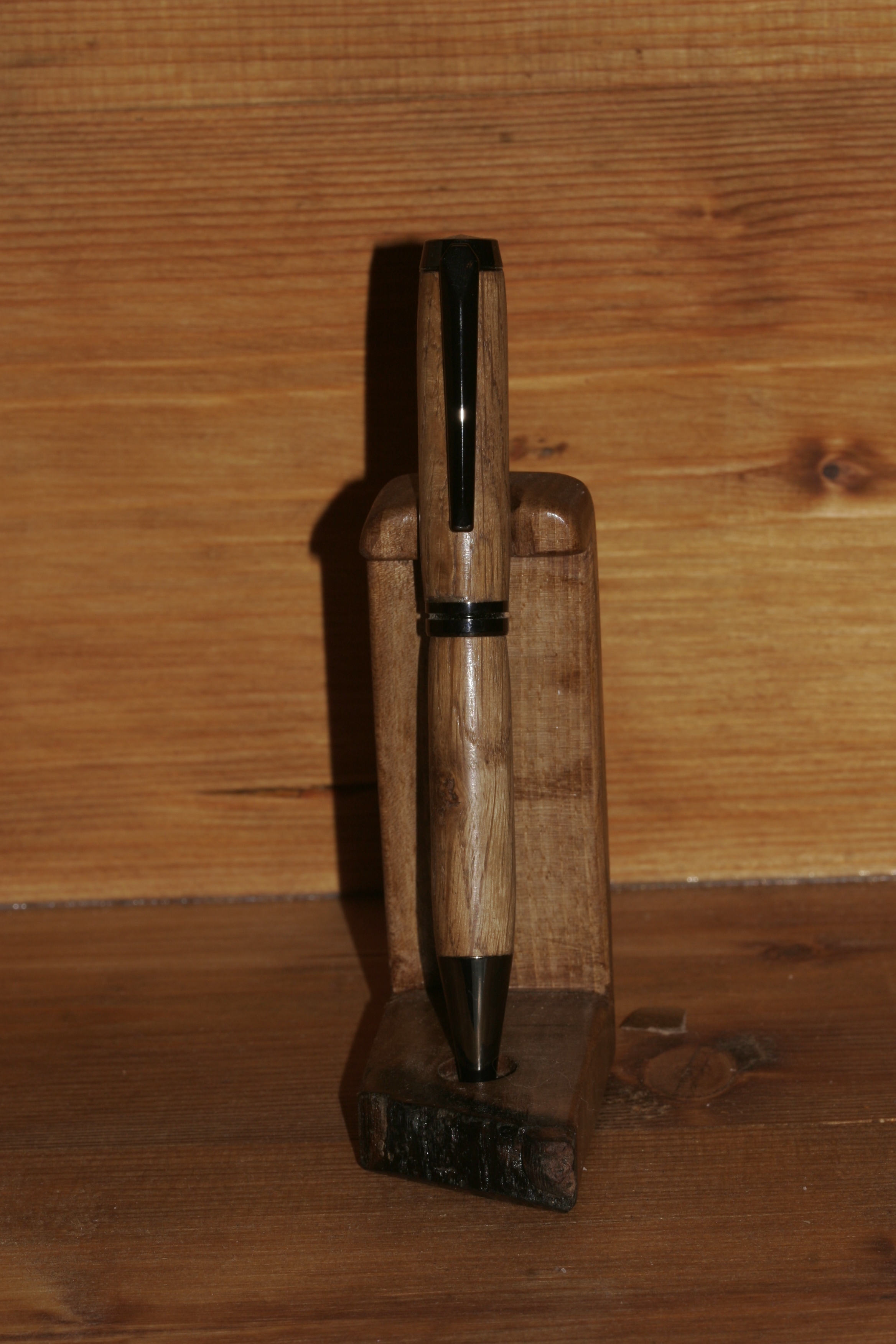 Handgedrechselter Kugelschreiber aus Eichenholz.